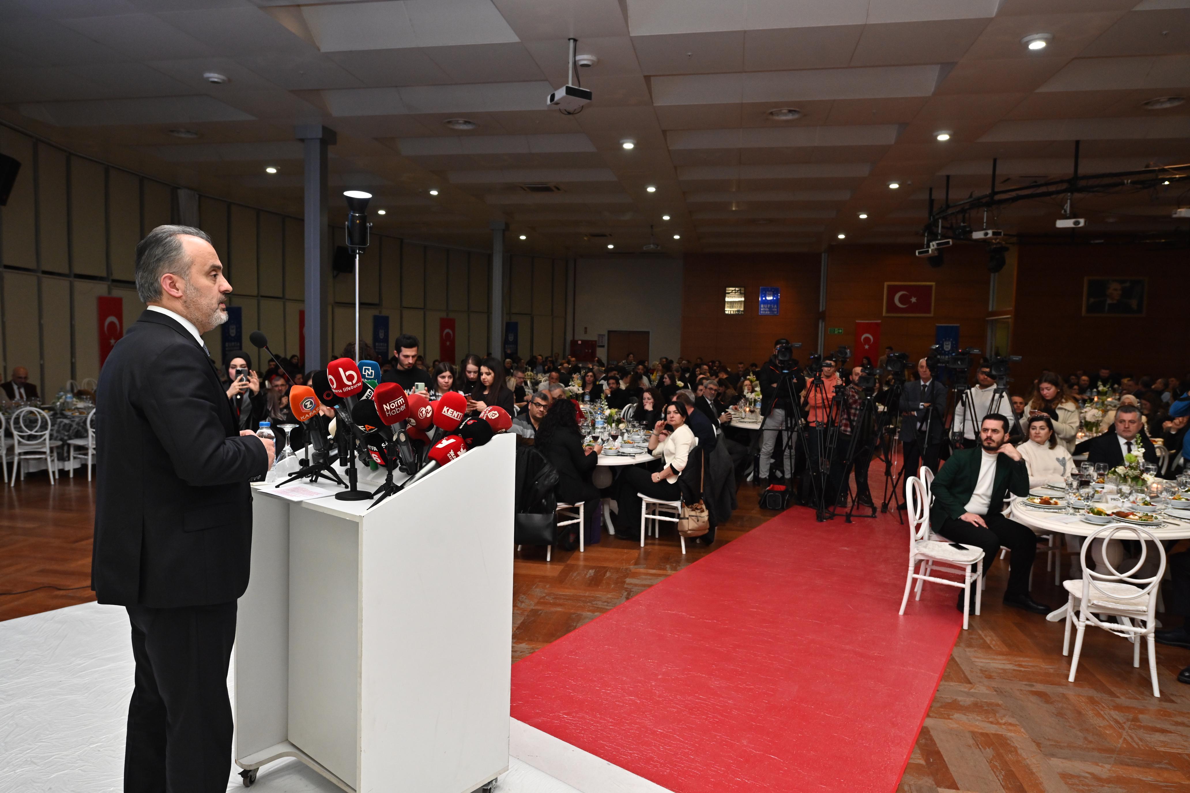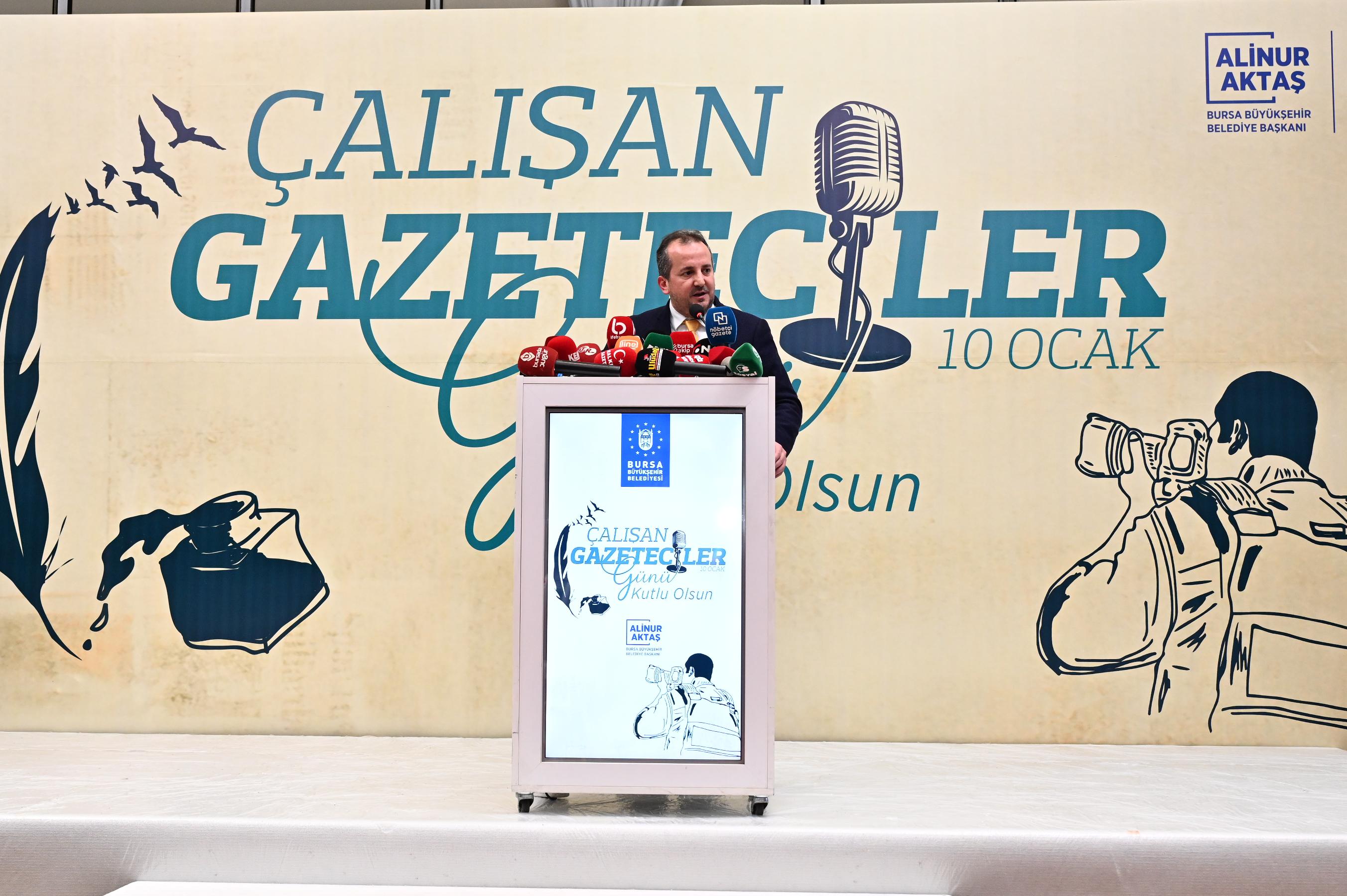 BURSA – Bursa Büyükşehir Belediye Başkanı Alinur Aktaş, 10 Ocak Çalışan Gazeteciler Günü nedeniyle düzenlenen programda basın mensuplarıyla bir araya geldi.