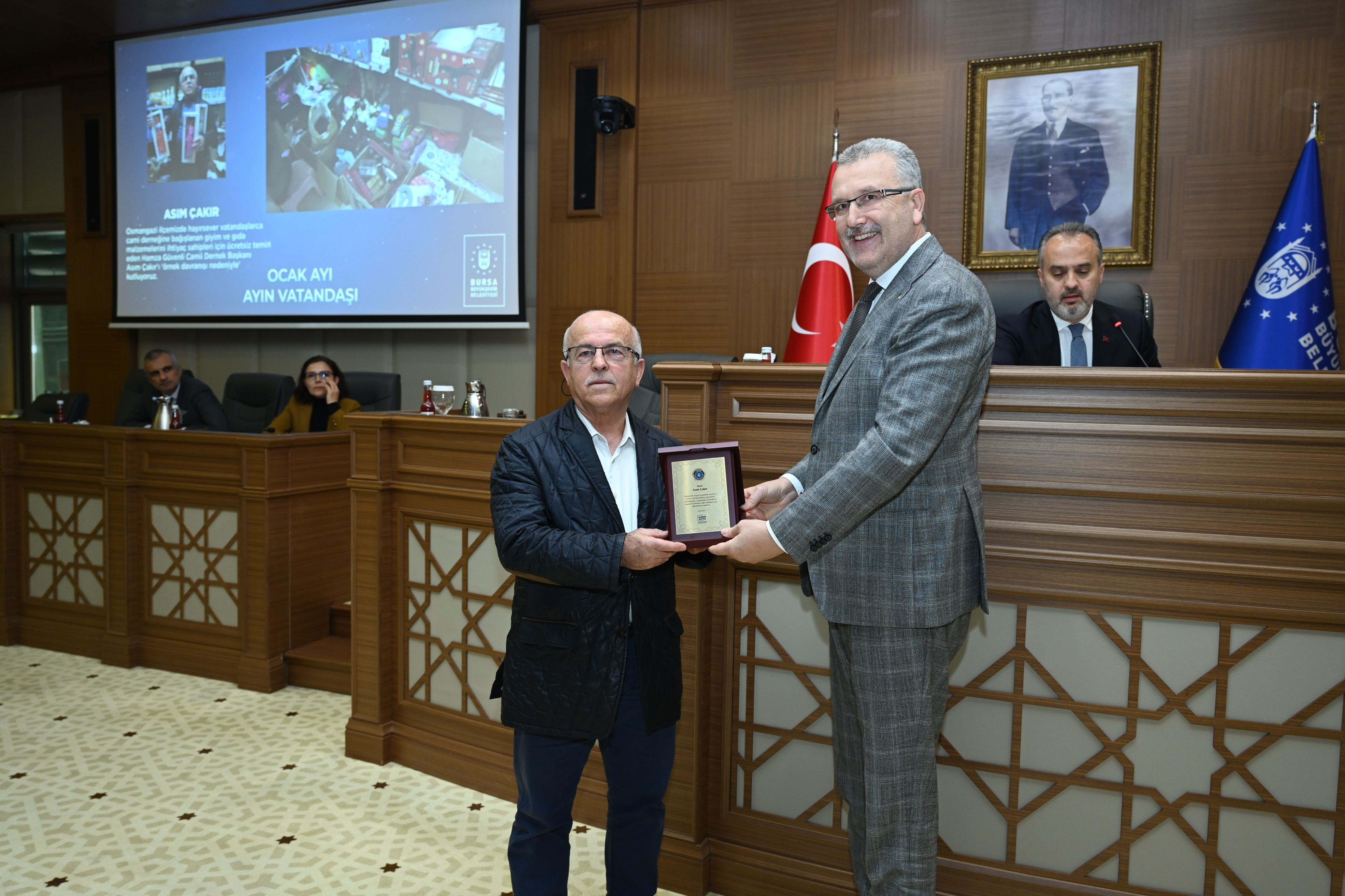 Meclis toplantısında, 2023 yılının ilk ayın vatandaşı uygulaması da gerçekleştirildi. 40 yıldır kendisini hayır işlerine adayan, caminin deposunu hayırseverlerin desteğiyle mağazaya çevirip ihtiyaç sahiplerine kucak açan Osmangazi Hamza Güvenli Camii Dernek Başkanı Asım Çakır, yılın ilk ayın vatandaşı oldu. Çakır’a plaket ve hediyelerini Karacabey Belediye Başkanı Ali Özkan verdi.