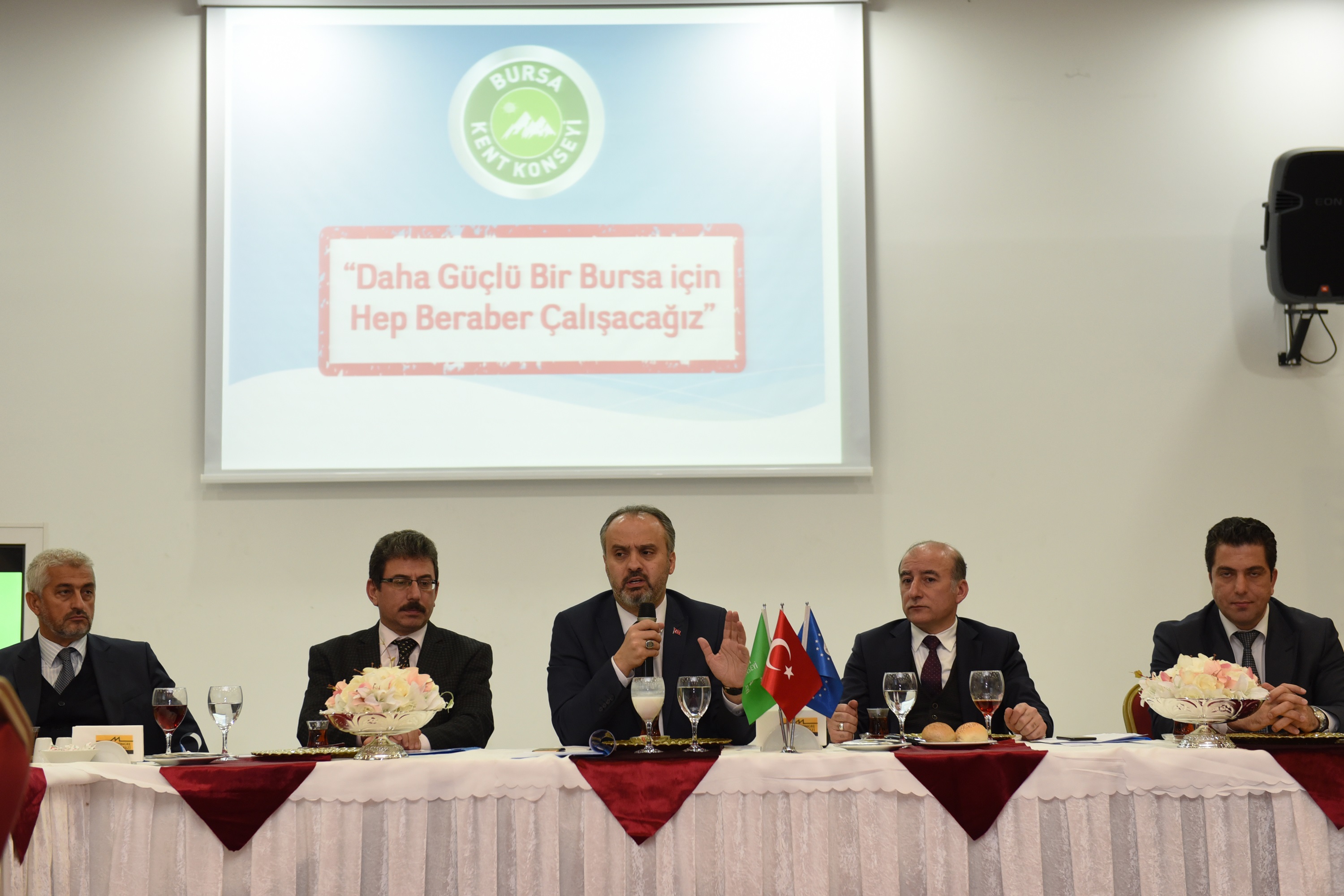 Bursa Kent Konseyi Yürütme Kurulu ile buluşmayı önemsediğini anlatan Başkan Aktaş, bazı işlerde gönüllü olmanın ve emek sarf etmenin önemli olduğunu, Kent Konseyi’nin de bu manada çalıştığını aktardı. Kent Konseyi’nin farklı düşüncelerin bir araya gelebildiği, medeni şekilde tartışabildiği ortamlar olduğunu belirten Aktaş, “Hepimiz Bursa’yı yaşıyoruz. Sürekli konuşulan konular var. Trafik ve ulaşım ise en üstte yer alıyor. Kentsel dönüşüm ve aksaklıklar da konuşuluyor. Üçüncü madde ise Yeşil Bursa’nın giderek yok olması konuşuluyor. Hep 40-50 sene önceki Bursa özleniyor. Kentsel dönüşüm 2-3 aydır durdu. Farklı bir konsepte geçiliyor. Cumhurbaşkanımız görevi vermesinden sonra ilk ifadesi, ‘Ya Allah aşkına şu Bursa’daki kentsel dönüşüm rezaletine son verin’ dedi. Belki Doğanbey’in çok konuşulmasından dolayı oluşmuş kötü algı var. Elbet şehirler sabahtan akşama oluşan yerler değildir. Şehirlerin de dili ve ömrü vardır. Bu tarz toplantılara ve istişarelere ihtiyacımız var” dedi.