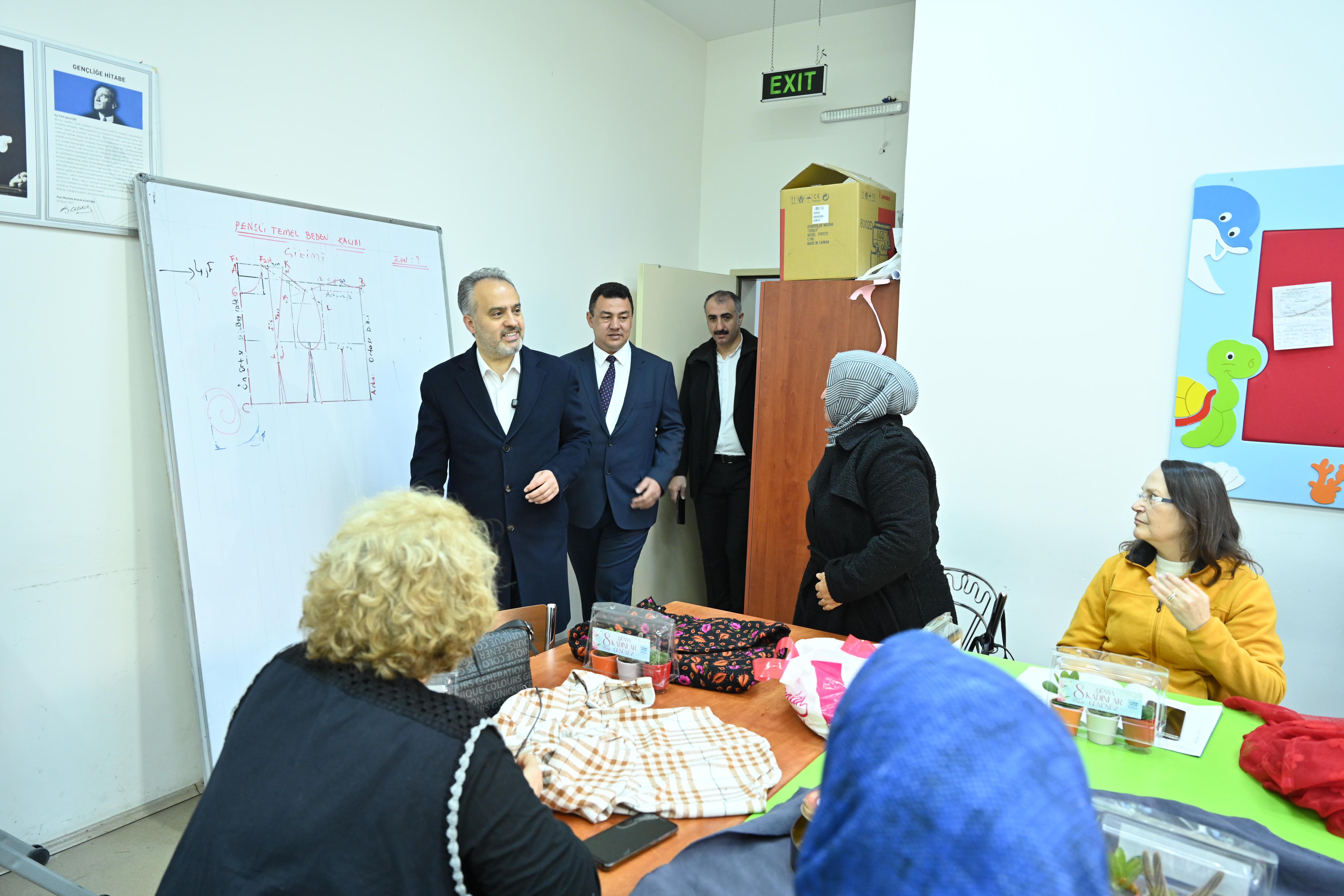 Halk Eğitim Merkezi'ni de gezen Başkan Aktaş ve beraberindekiler, eğitim gören kadınlarla sohbet ederek çalışmaları hakkında bilgi aldı.