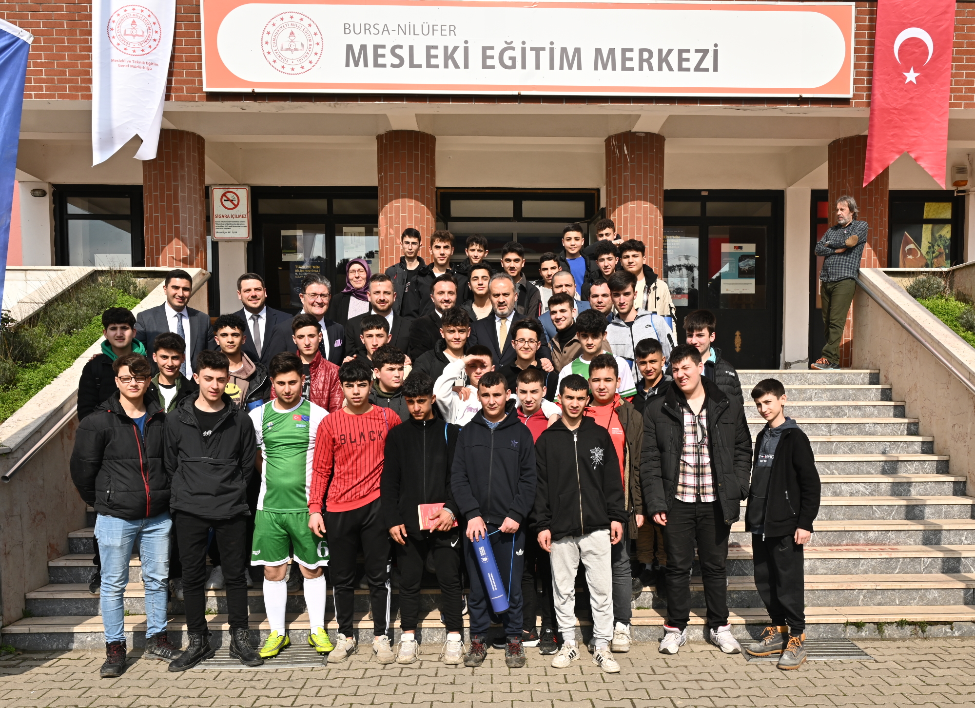 Yoğun programına rağmen sık sık eğitim kurumlarını gezip, öğrencilerle bir araya gelen Bursa Büyükşehir Belediye Başkanı Alinur Aktaş’ın son durağı Nilüfer Mesleki Eğitim Merkezi oldu. Nilüfer İlçe Milli Eğitim Müdürü Mustafa Muharrem Tüfekçi ile birlikte konferans salonunda öğrencilerle buluşan Başkan Aktaş, hayata dair tecrübelerini gençlerle paylaştı. Kendi öğrencilik yılları ve iş hayatından örnekler vererek öğrencilere nasihatlerde bulunan Başkan Aktaş, özellikle mesleki eğitimdeki gençlerin Türk sanayisi için çok önemli olduğunu hatırlattı. Türkiye’nin artık İHA’ları, SİHA’ları, yüksek teknolojiyi konuştuğunu dile getiren Başkan Aktaş, “Bizim el becerileri olan, pratik düşünebilen, işini aşkla yapan insanlara ihtiyacımız var. Unutmayın hiçbir başarı tesadüf değil. İmkansız olan hiçbir şey yok, yeter ki isteyin. Hedefinizi belirleyin ve vazgeçmeyin” dedi.