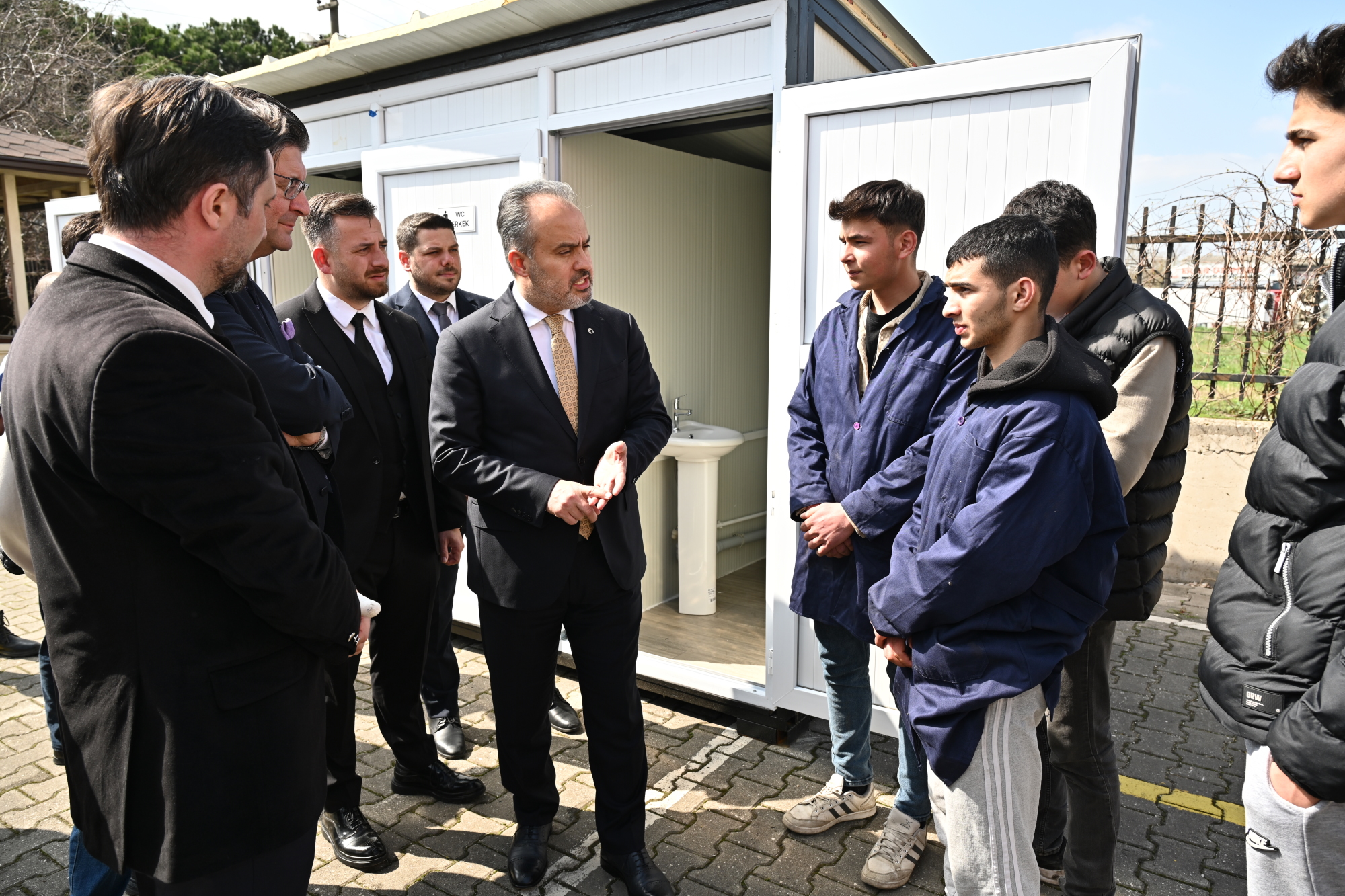 BURSA – Bursa Büyükşehir Belediye Başkanı Alinur Aktaş, Nilüfer Mesleki Eğitim Merkezi’nde eğitim gören gençlerle bir araya gelip, onlarla tecrübelerini paylaştı. Başkan Aktaş, deprem bölgesine gönderilmek üzere seyyar tuvalet ve duş kabini üreten gençlere duyarlılıkları nedeniyle teşekkür etti.