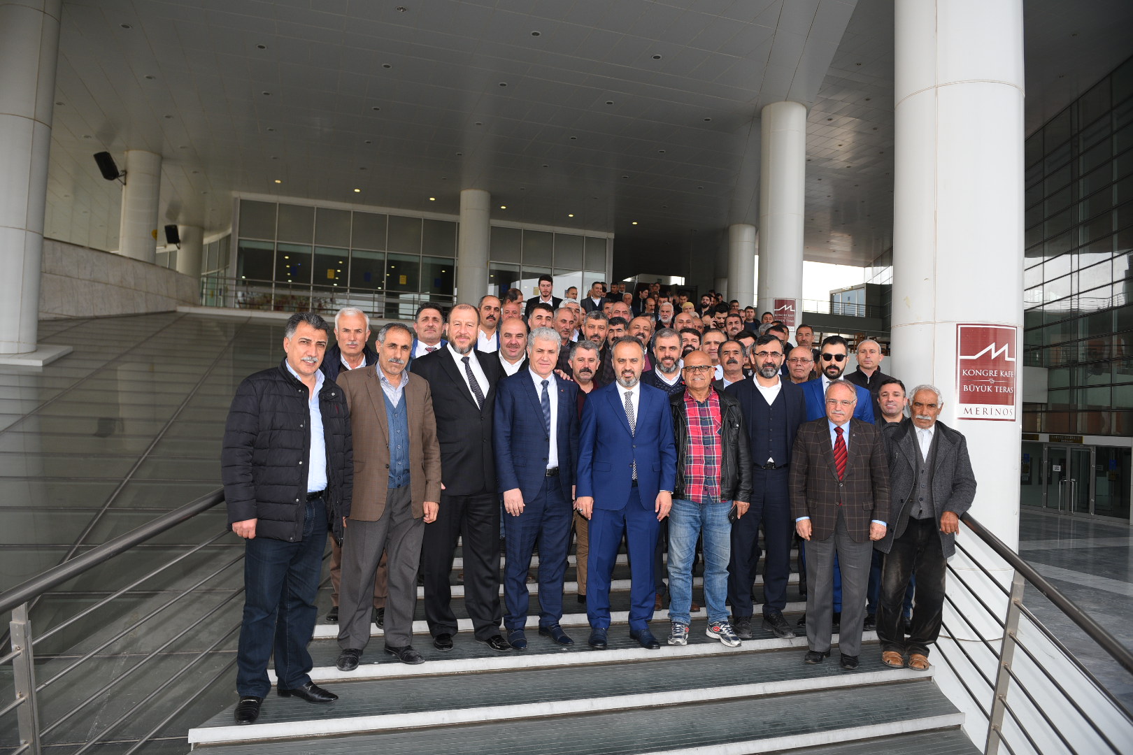 Bursa Büyükşehir Belediye Başkanı Alinur Aktaş, Bursa Özel Halk Otobüsçüleri Odası’na üye esnaflarla Atatürk Kongre Kültür Merkezi Muradiye Salonu’nda gerçekleştirilen toplantıda bir araya geldi. Bursa Esnaf ve Sanatkarlar Odaları Birliği (BESOB) Başkanı Arif Tak’ın da katıldığı programa, özel halk otobüsçüleri yoğun ilgi gösterdi.