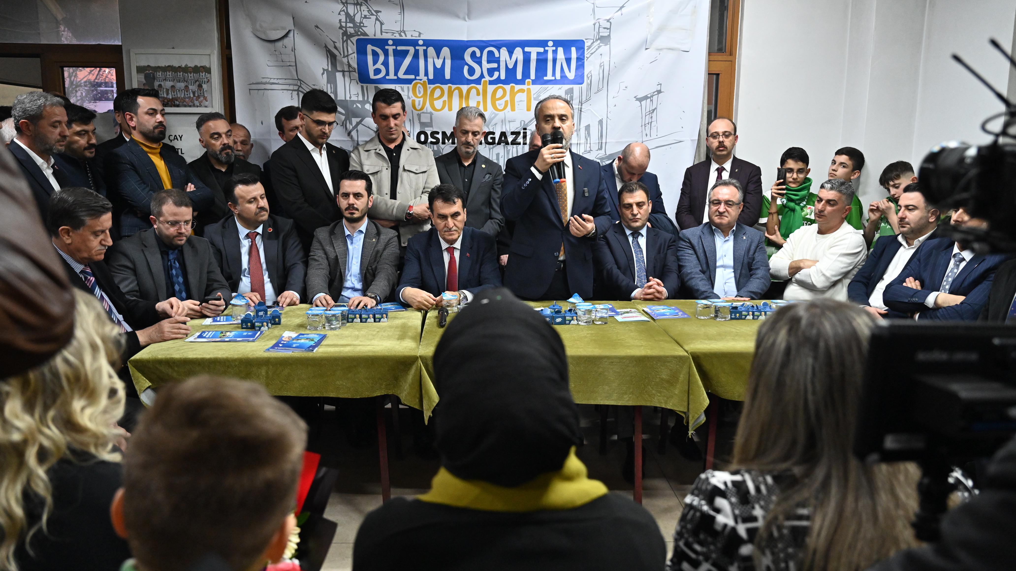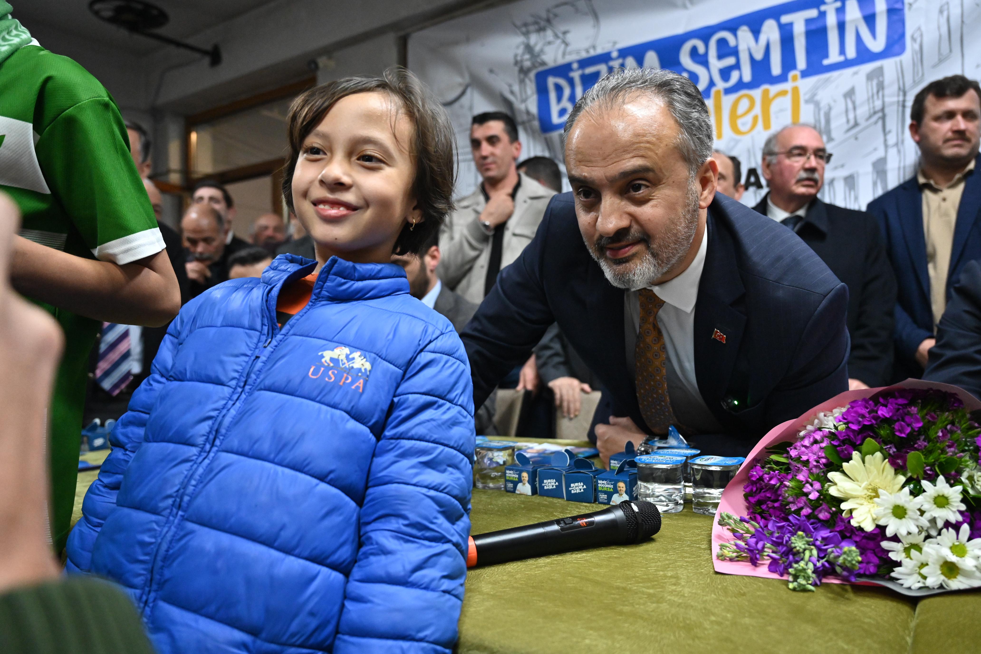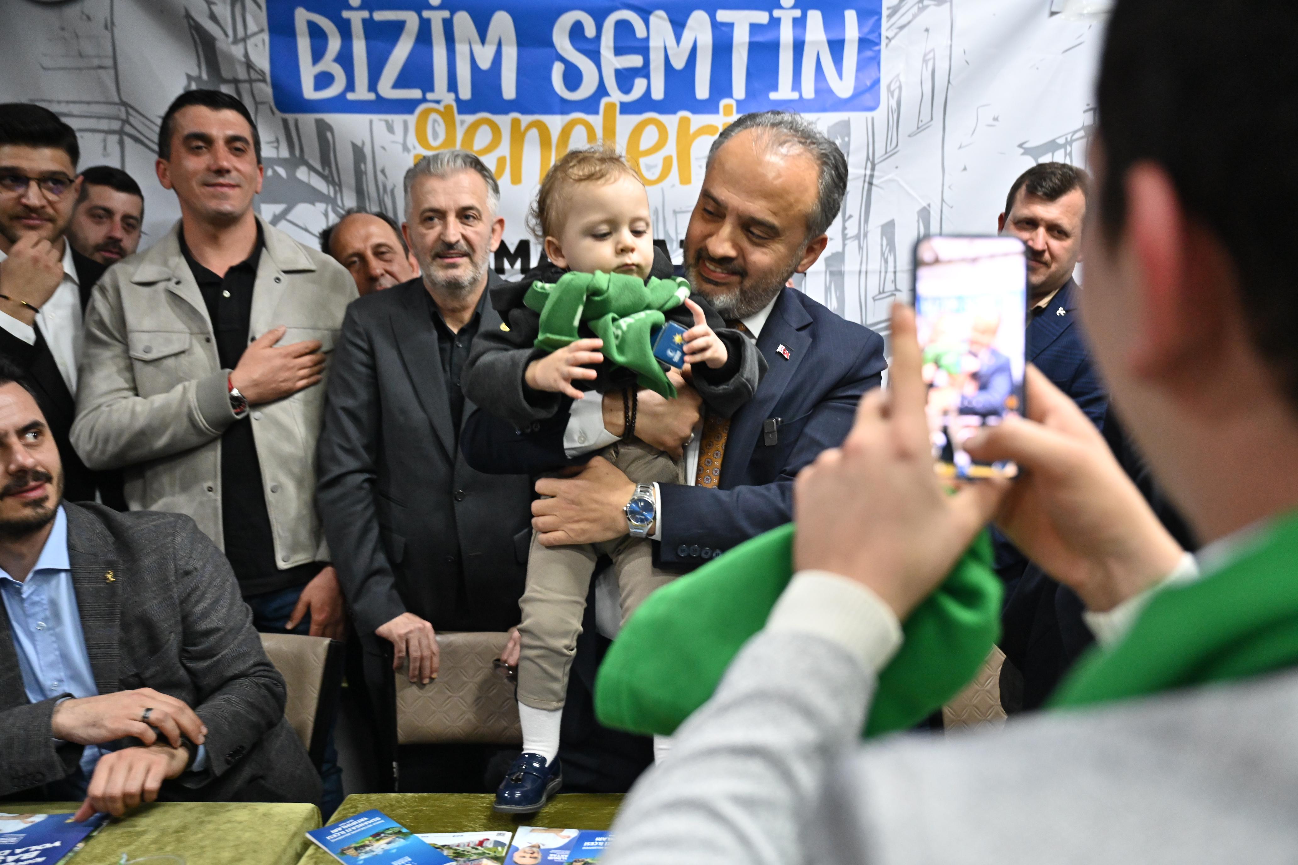 Bursa Büyükşehir Belediye Başkanı Alinur Aktaş, 31 Mart seçim sürecinin Türkiye’ye ve Bursa’ya hayırlar getirmesini diledi. Bu zamana kadar elde edilen kazanımların devamı için önemli bir aşamada olduklarını söyleyen Başkan Alinur Aktaş, Cumhur İttifakı belediyelerinin millete hizmet etme derdinde olduğunu belirtti. Her zaman bir genci daha hayata kazandırmayı, mahallelere yeni tesisler kazandırmayı düşündüklerini anlatan Başkan Aktaş, “Yeşildağ Spor Kulübümüzün sporcuları Soğanlı’da hazırlıklarını yapıyor. A takım orada devam edebilir ama kulübümüze gelir olması açısından bir halı saha ihtiyacı olduğu bizlere iletildi. Merinos’taki basketbol sahasını bozup halı saha yapamayız. Basketbolu sevenler var, spor sadece futbol değil. Okçuluk, tekvando salonları gibi birçok spor tesisi yaptık. Atıcılar başta olmak üzere sahaları eskiyen tesislerin zeminini Bursa Büyükşehir Belediyesi olarak yeniledik. Küplüpınar Mahallesi’nde de en kısa zamanda halı saha için çalışmalara başlayacağız. 32 tane ana kucağımız var, sayılarını 100’e tamamlayacağız. En kısa zamanda Küplüpınar Mahallesi civarında bir ana kucağı binasını açıp mahalle halkının hizmetine sunacağız. Bu mahallelerde kentsel dönüşüme ihtiyaç var. Gaziakdemir, Soğanlı, Arabayatağı, Ulus, Mevlana, Değirmenönü, Karapınar, 75. Yıl, Yiğitler, İstanbul Yolu, Beşyol ve Akpınar’da kentsel dönüşümleri sürdürüyoruz. Yıkıyoruz, bir taraftan da yapıyoruz. Bizim Bursa sevdamız var. Bizim aşkımız var. Bizim heyecanımız var. Aynı çalışmaları el birliği içerisinde buralarda da gerçekleştireceğiz. Samimiyiz, tecrübemiz, heyecan ve gayretimiz var. Rabbim birlik ve beraberliğimizi bozmasın” dedi.