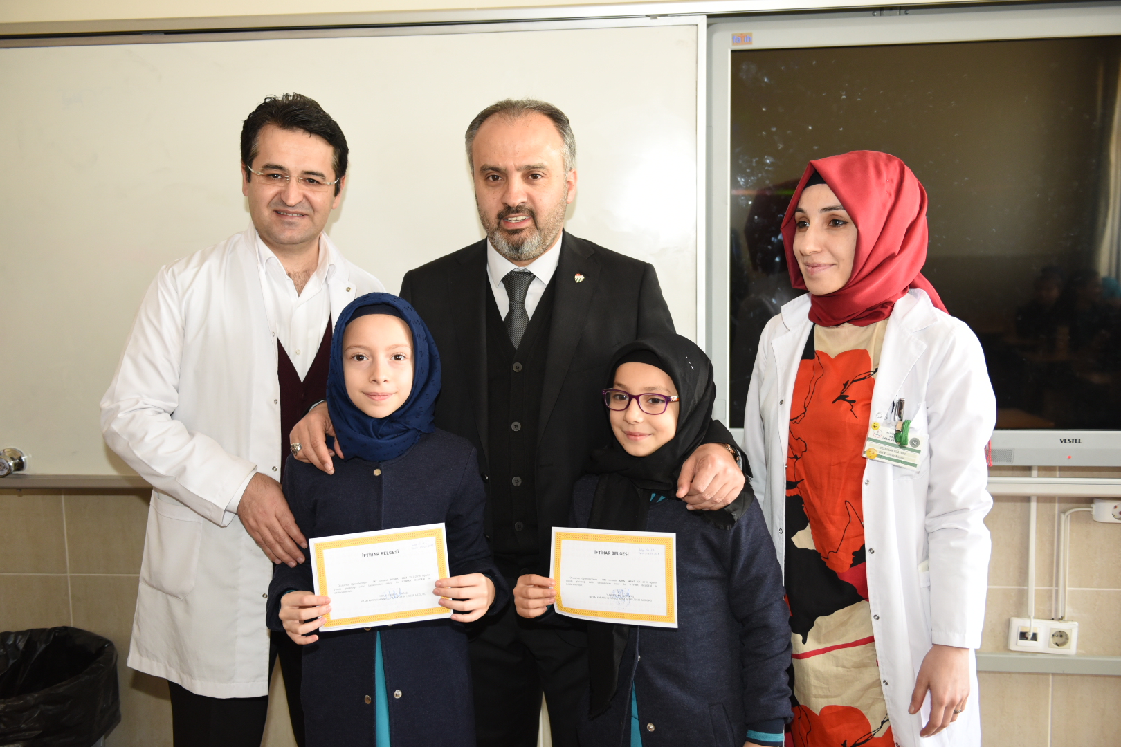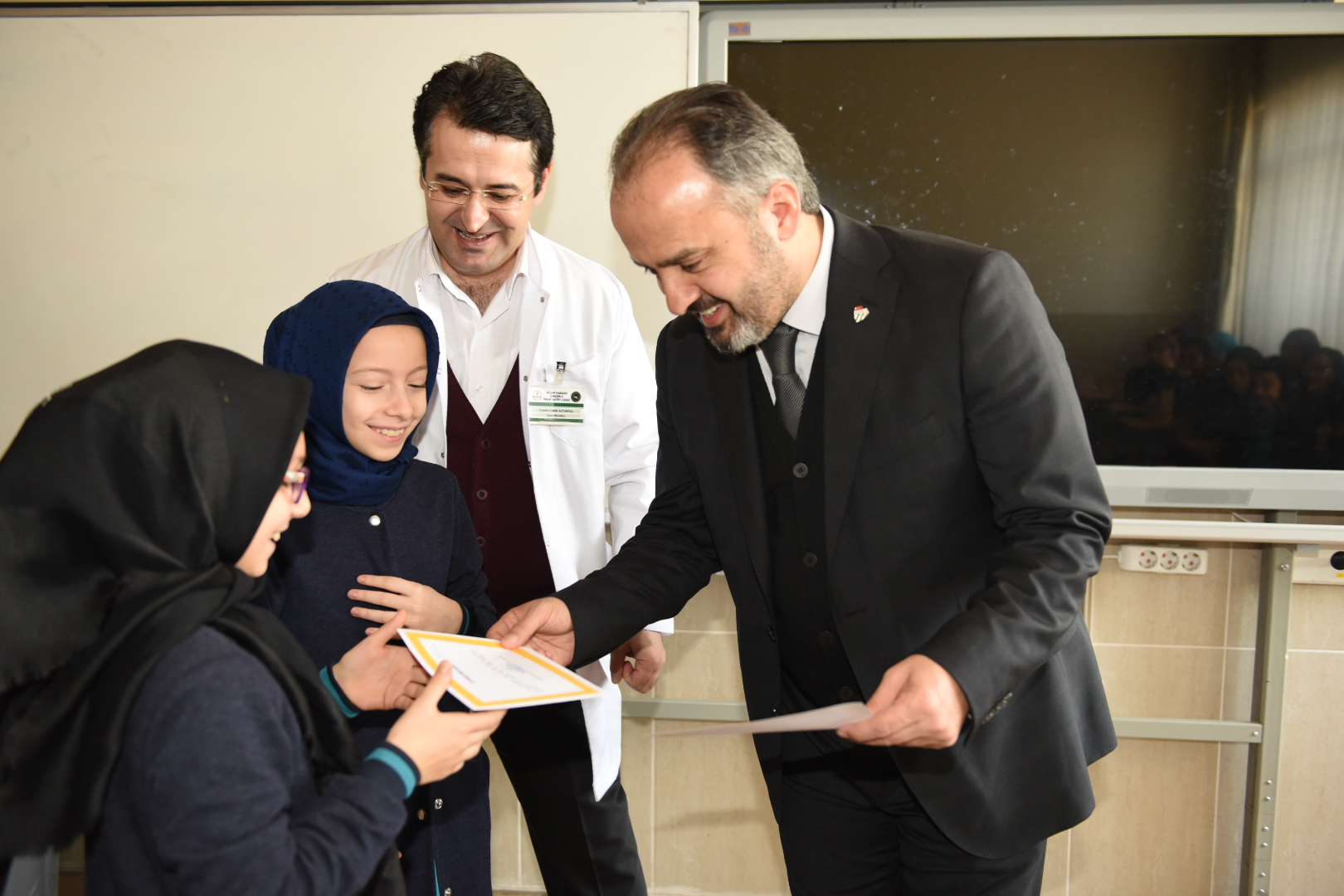 Başkan Aktaş, Nizam Karasu Anadolu İmam Hatip Lisesi’ndeki programın ardından Atıcılar Mahallesi’nde yer alan Davut Çalışkan İlkokulu’na gitti. Bursa Valisi İzzettin Küçük’le birlikte buradaki karne dağıtım törenine katılan Başkan Aktaş, minik öğrenciler aldıkları başarılı sonuçlar nedeniyle tebrik etti.