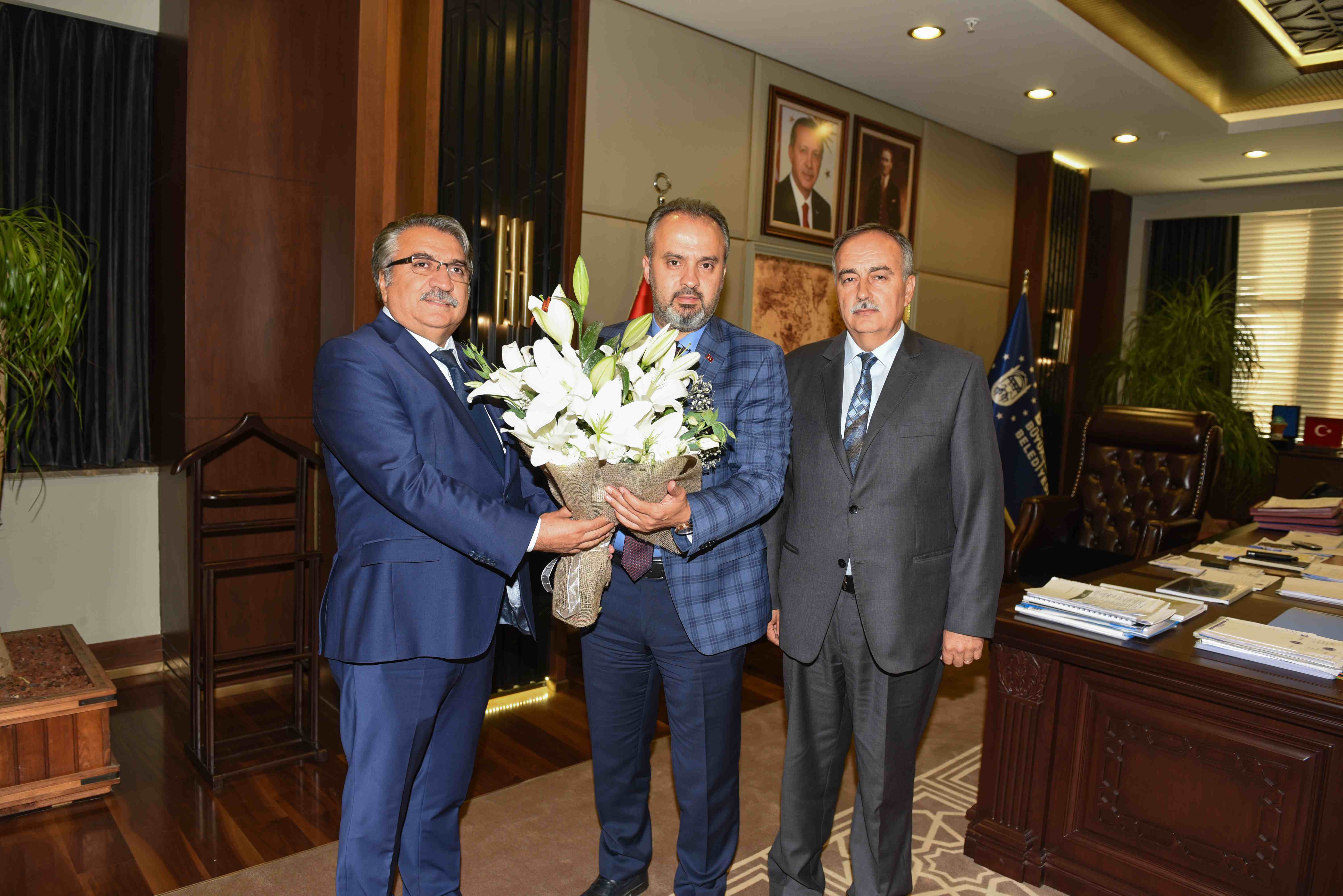 Büyükşehir Belediyesi Zabıta Daire Başkanı Enver Karakoç, Başkan Aktaş’a zabıta teşkilatına desteklerinden dolayı teşekkür ederek, çiçek takdim etti.
