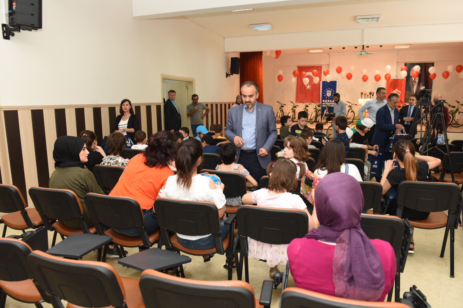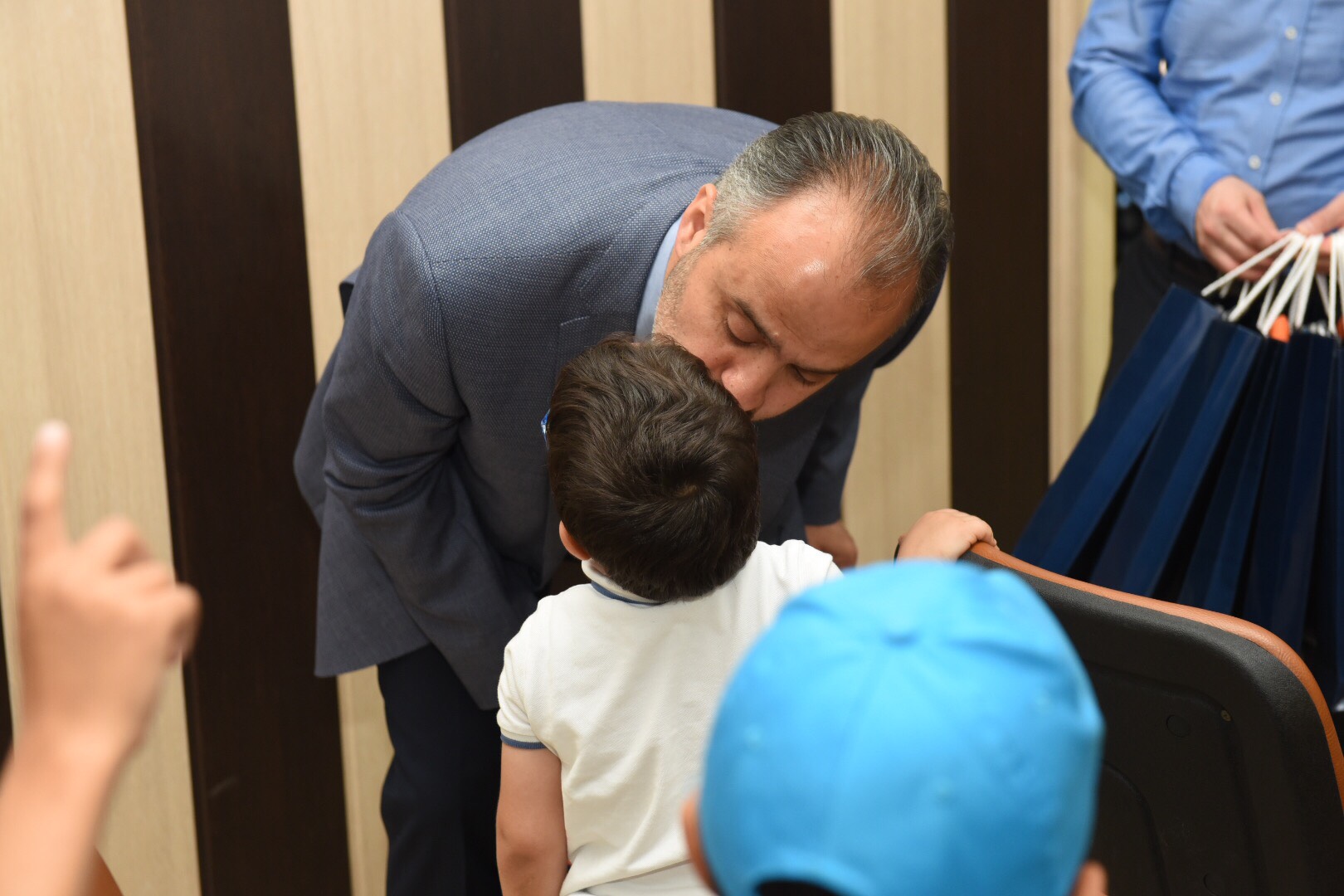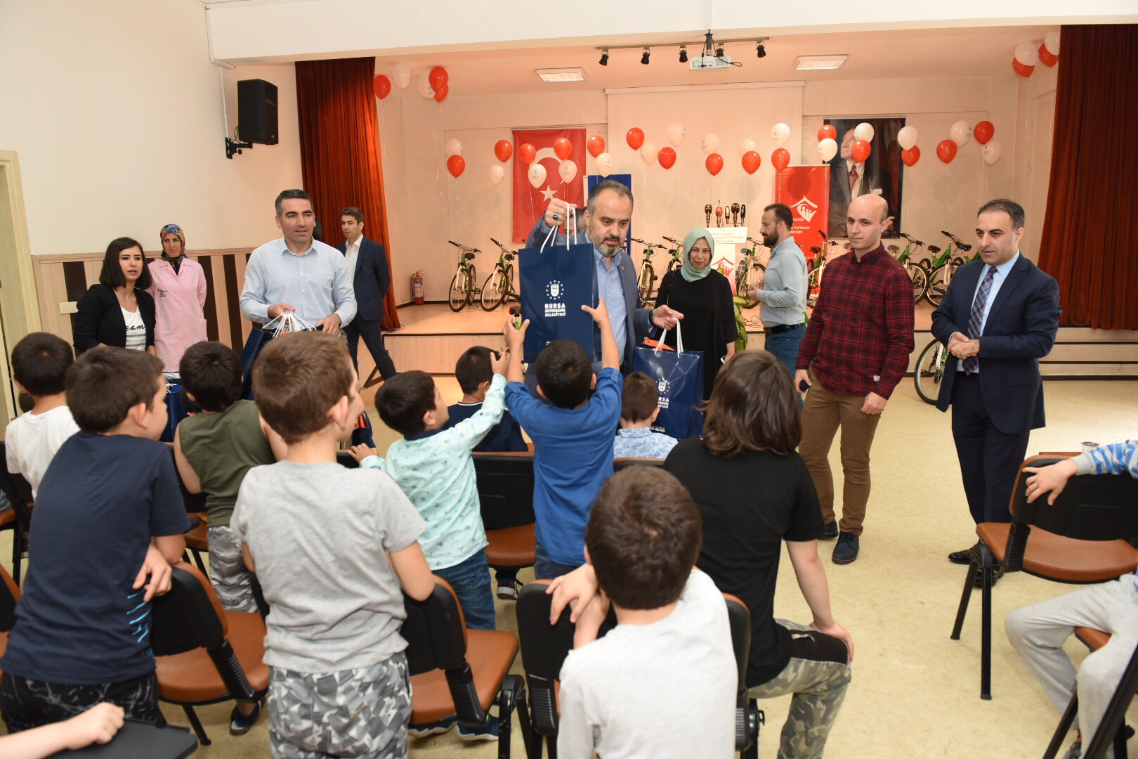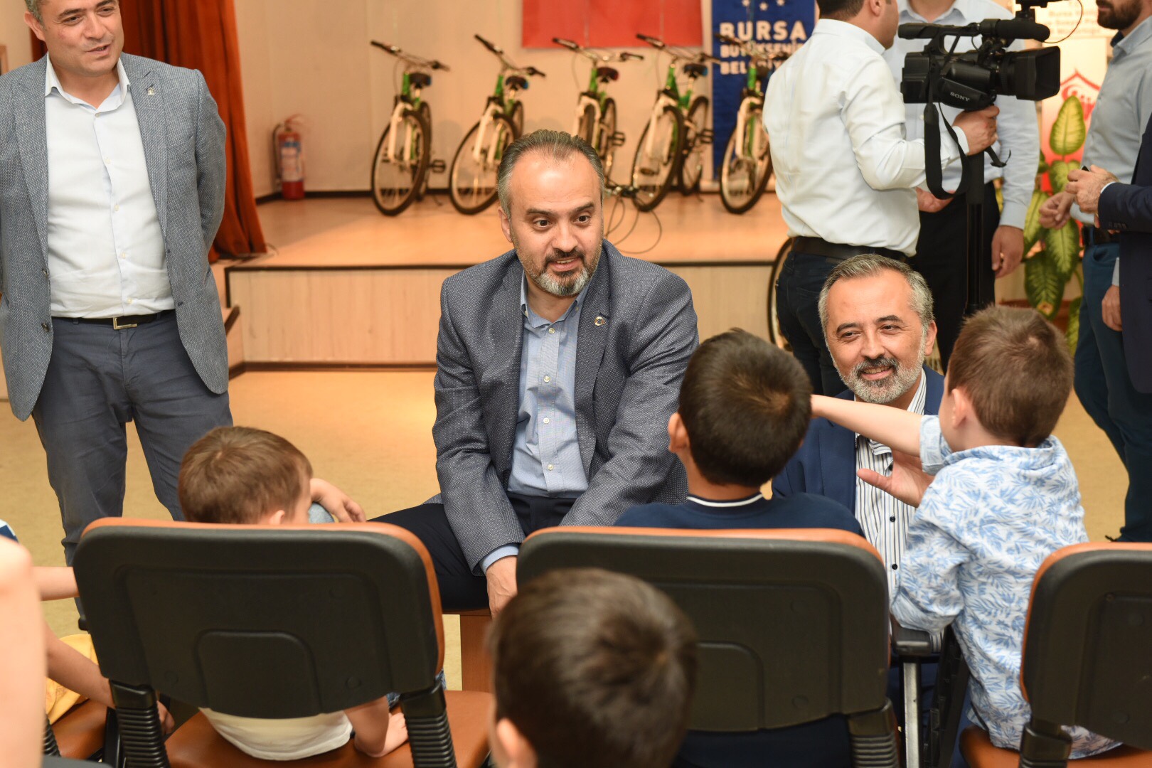 BURSA - Babalar Günü nedeniyle Aile ve Sosyal Politikalar İl Müdürlüğü'ne bağlı Çocuk Sitesi’ni ziyaret eden ve burada 100’ü aşkın çocukla bir araya gelen Büyükşehir Belediye Başkanı Alinur Aktaş, samimi bir sohbetin ardından miniklere çeşitli hediyeler dağıttı.