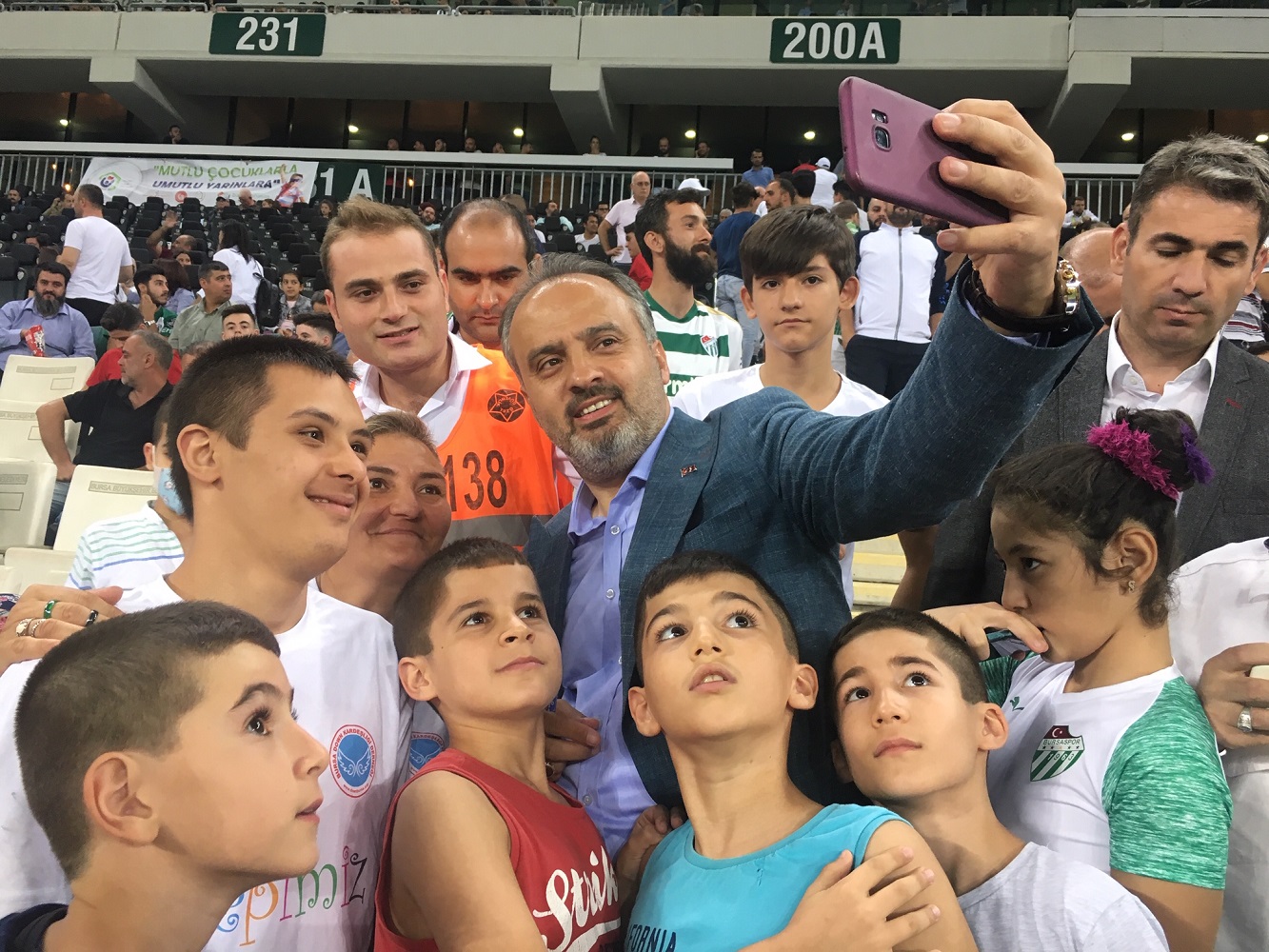 Başkan Aktaş, karşılaşma öncesinde her iki takım oyuncularının da ellerini tek tek sıktı. Maça LÖSEV, Türkiye Down Sendromlular Derneği, Otizm Vakfı, ENSEV Fiziksel Engelli Çocuklar Sağlık ve Eğitim Vakfı, Korunmaya Muhtaç Çocuklar Vakfı, Bursa Yetimder, Bursa Mutlu Yuva Mutlu Yaşam Derneği, Bursa Özel Eğitim, Bursa Çocuk Gelişimi ve Eğitimcileri Derneği'nden özel misafirler de katıldı.