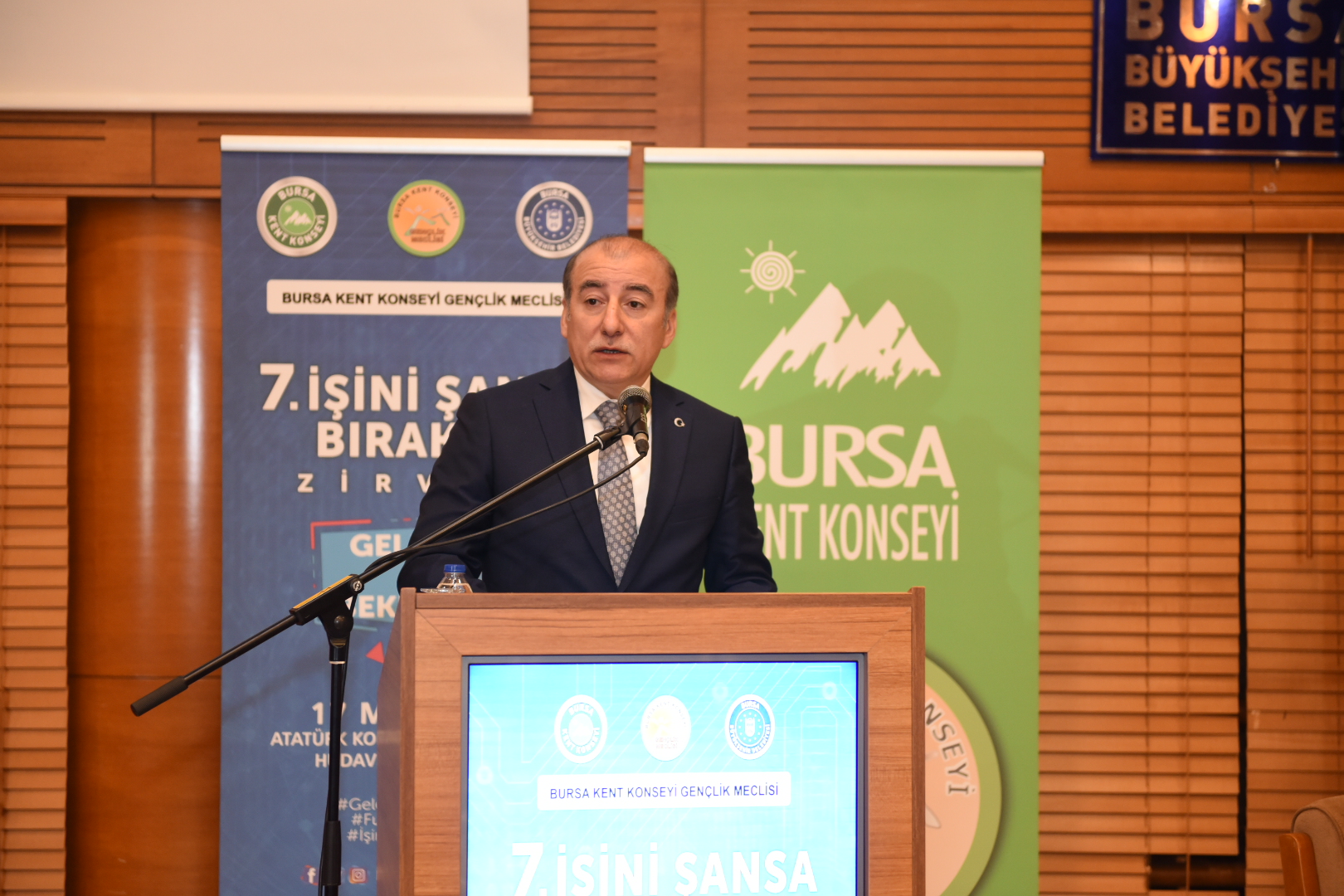Bursa Kent Konseyi Gençlik Meclisi tarafından ‘girişimcilik ve sürdürülebilirlik’ temasıyla düzenlenen ‘7. İşini Şansa Bırakma’ isimli zirve, Merinos Atatürk Kongre ve Kültür Merkezi’nde yapıldı. Hüdavendigar salonundaki zirveye katılan Büyükşehir Belediye Başkanı Alinur Aktaş ile duayen işadamları ve konusunda uzman isimler, tecrübelerini gençlerle paylaştı.