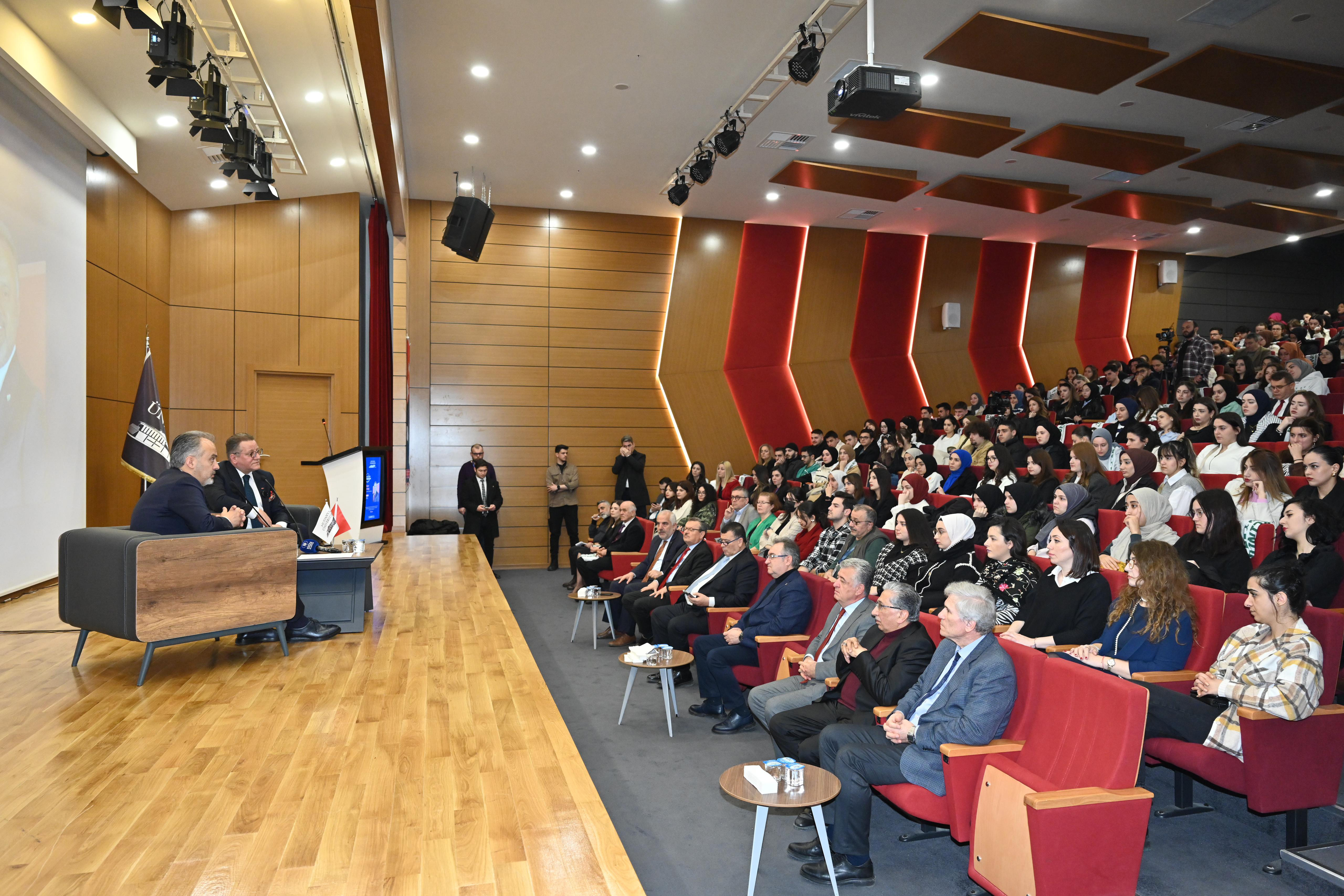Başkan Aktaş, daha sonra üniversiteli gençlerin sorularını cevapladı. Program sonunda Mütevelli Heyeti Başkanı Gıyasettin Bingöl ve Mütevelli Heyeti üyesi Ahmet Saim Kılavuz tarafından Başkan Alinur Aktaş’a günün anısına plaket verdi.