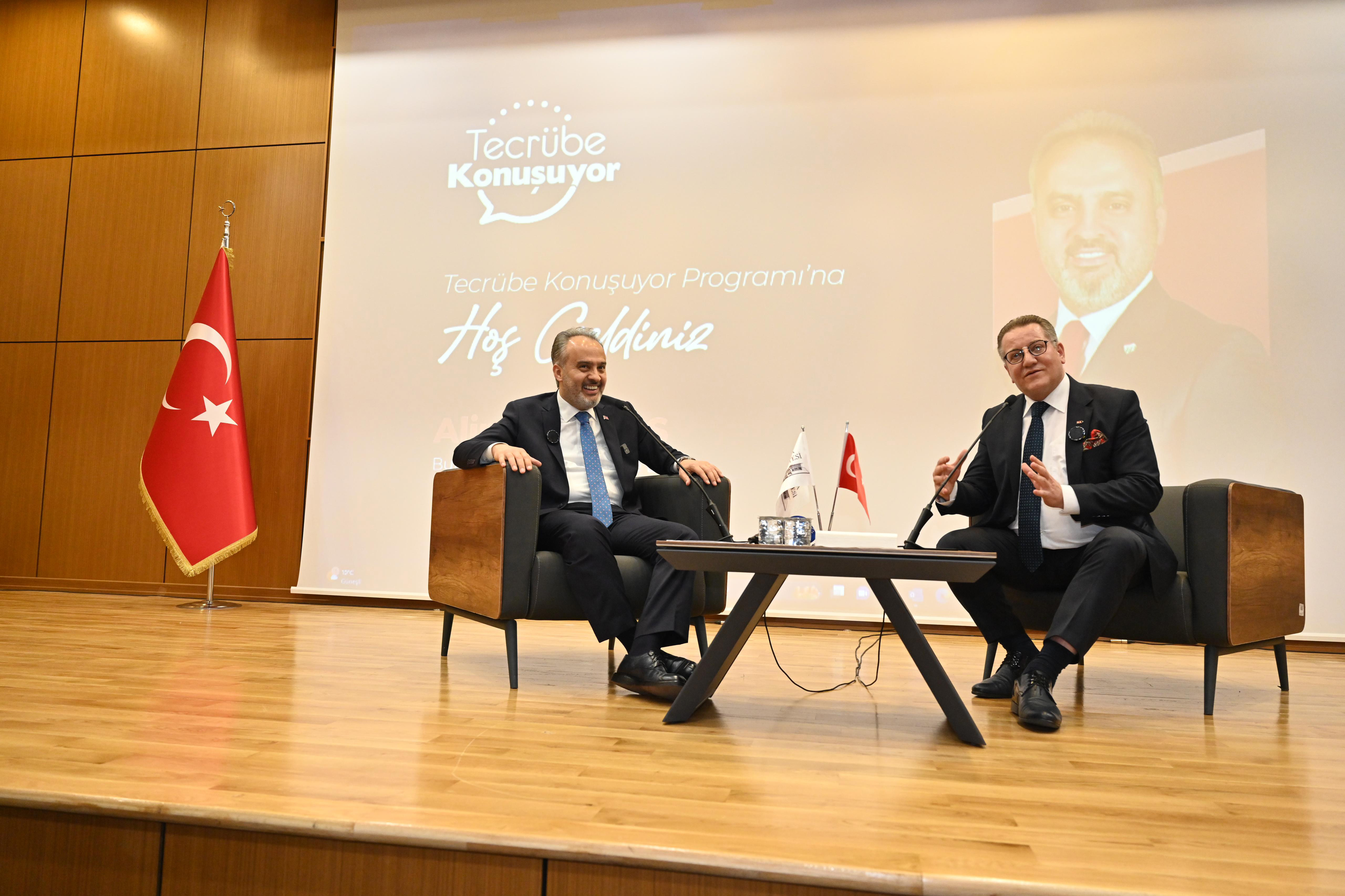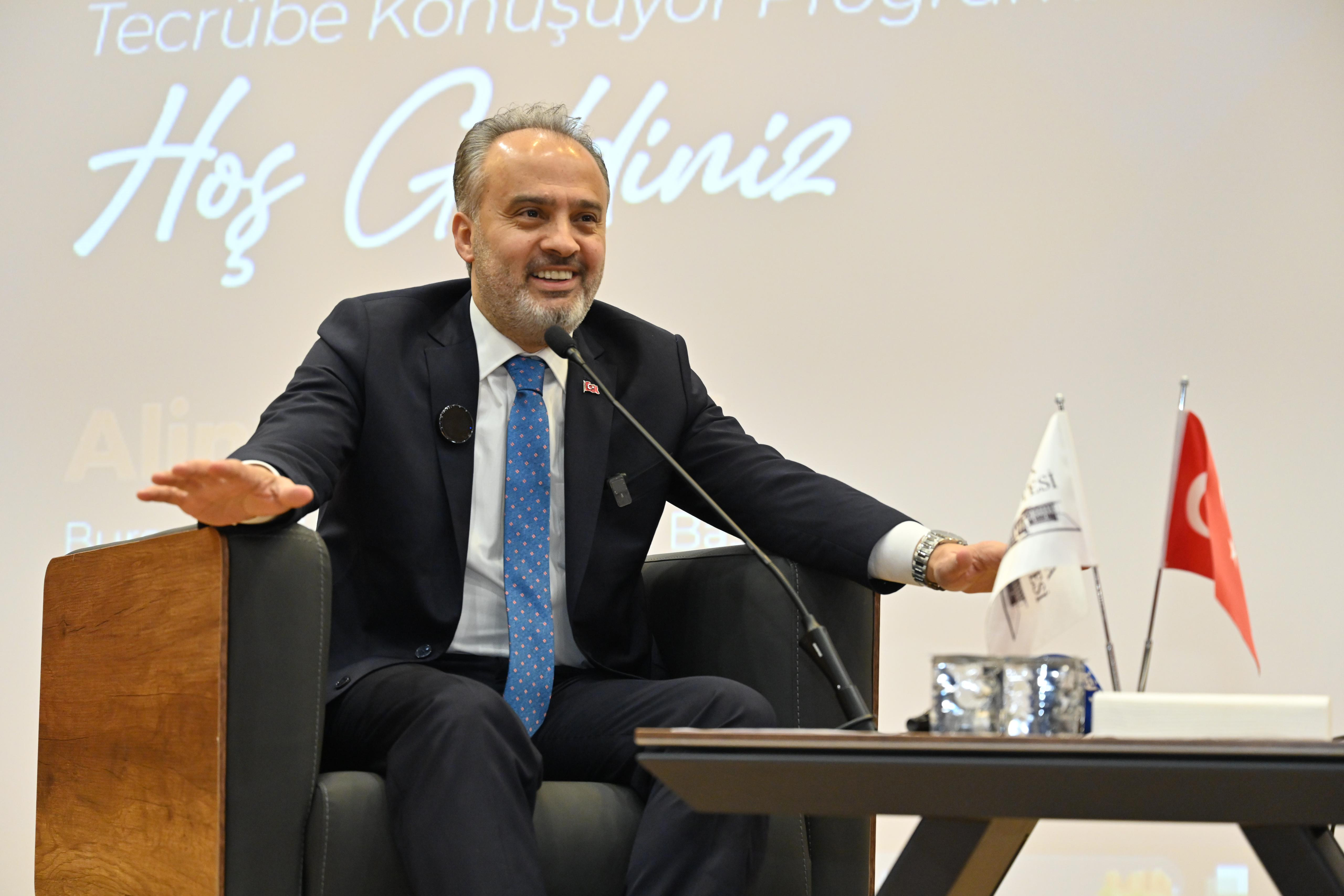 BURSA – Bursa Büyükşehir Belediye Başkanı Alinur Aktaş, Mudanya Üniversitesi’nde eğitim gören öğrencilerle bir araya gelerek tecrübe paylaşımında bulundu. Kendilerine sunulan imkanları sonuna kadar kullanmalarını isteyen Büyükşehir Belediye Başkanı Alinur Aktaş, “İş hayatının ilk yıllarında internet ve ofis ortamı kullanmak isteyen ve henüz kiralayamayanlar için ‘Genç Ofis’ler oluşturacağız” dedi.