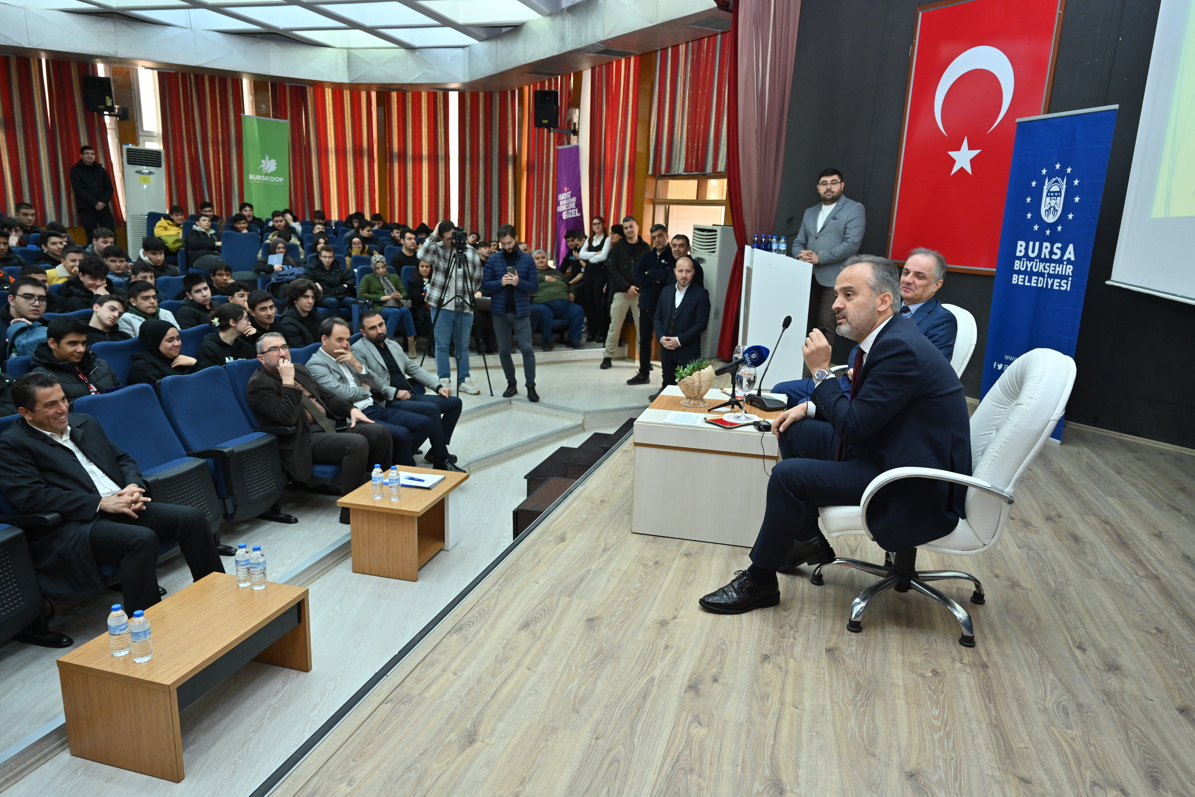 BURSA – Bursa Büyükşehir Belediye Başkanı Alinur Aktaş, Ali Osman Sönmez Mesleki Teknik Anadolu Lisesi öğrencileriyle bir araya gelerek tecrübelerini ve tavsiyelerini gençlerle paylaştı. Başkan Aktaş, “Kendinize güvenirseniz yapamayacağınız hiç bir şey yok” dedi.