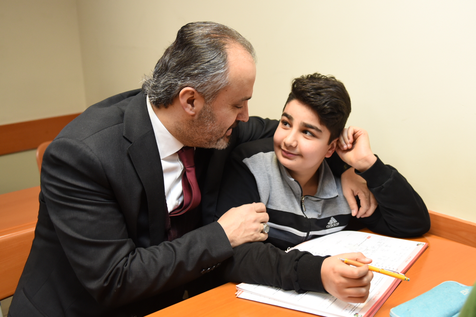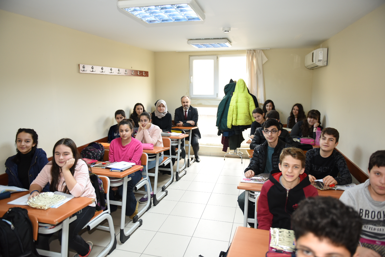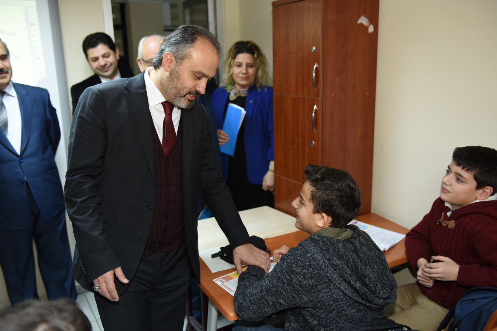Büyükşehir Belediye Başkanı Alinur Aktaş, Bursa Büyükşehir Belediyesi Sanat ve Meslek Eğitim Kursları (BUSMEK) Sosyal Eğitim Merkezi’nde 2017-2018 eğitim yılında 8. sınıf öğrencilerine örgün eğitime destek amacıyla başlatılan kurslara katılan gençlerle bir araya geldi. Keyifle sohbet ettiği gençlere, gelecek hayalleri ile ilgili sorular soran ve hayata dair önerilerde bulunan Başkan Aktaş, gençlerin iyi, ahlaklı ve bilgili bireyler olarak yetişmelerinin önemine dikkati çekti.