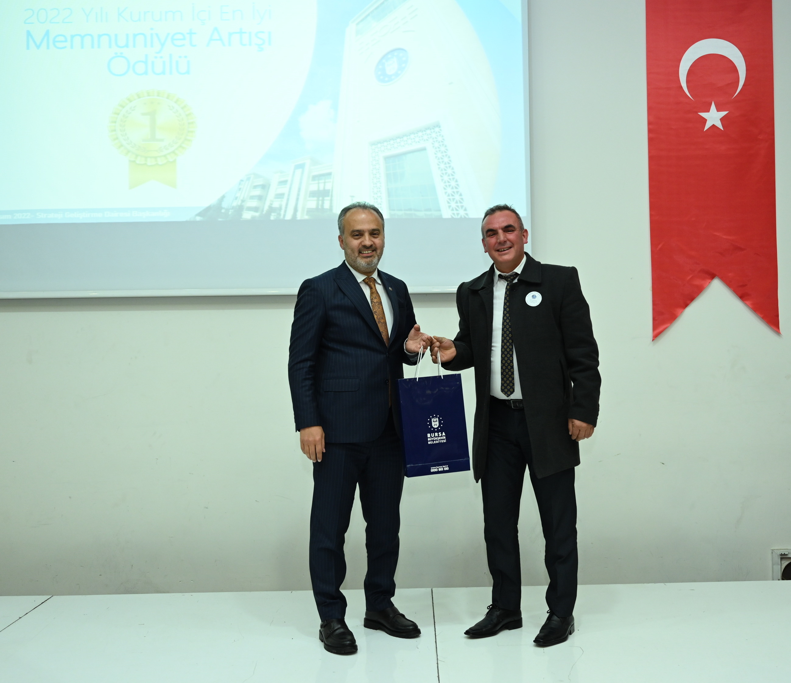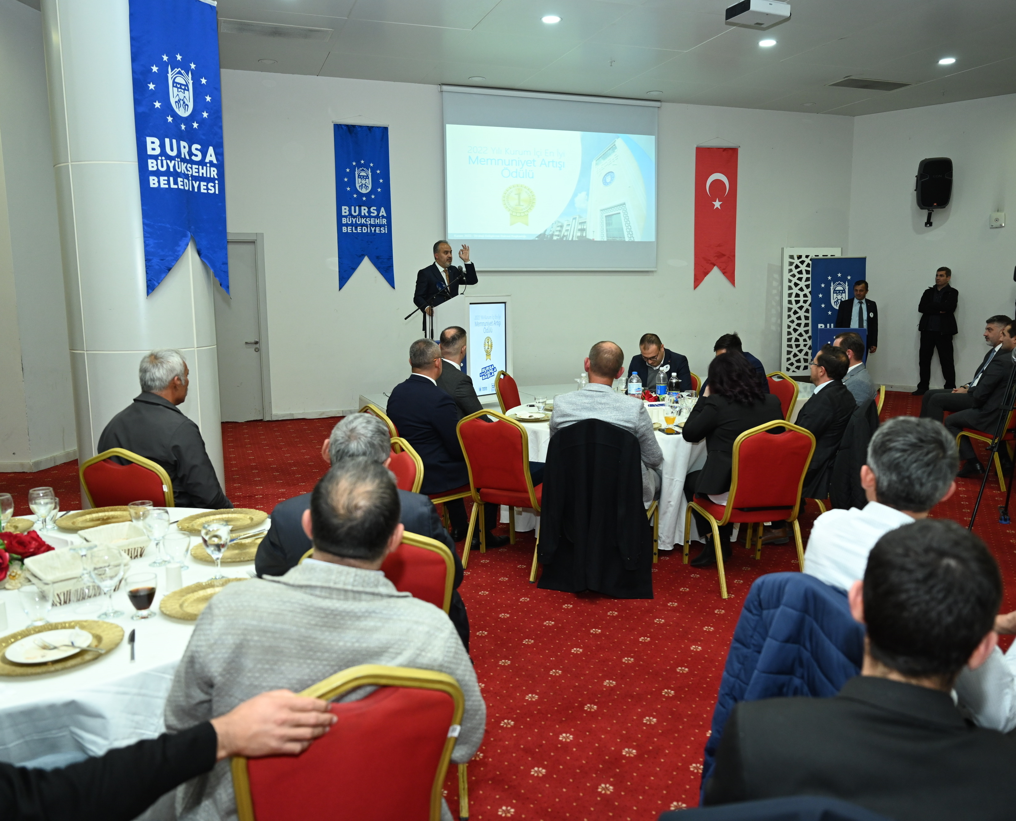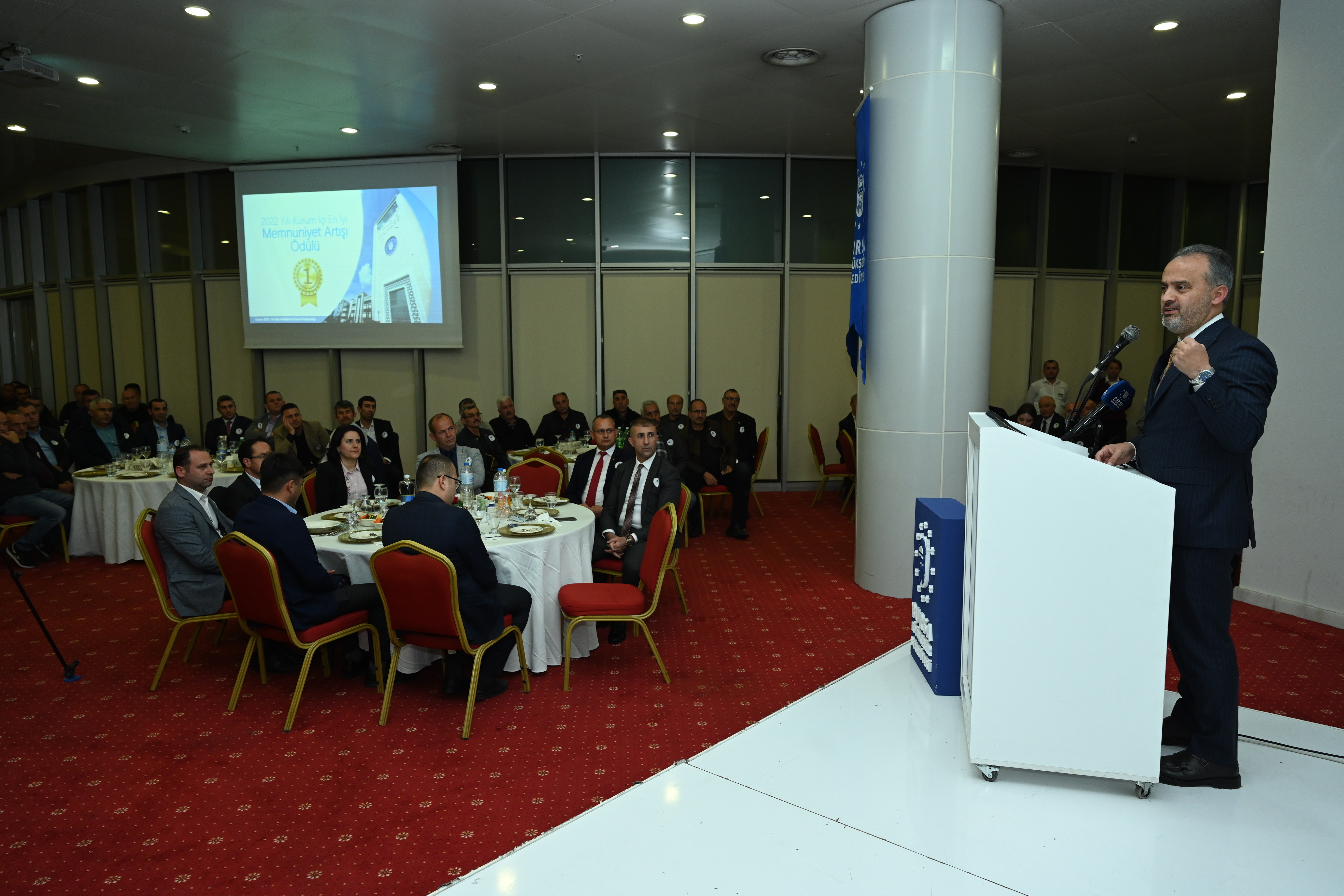 BURSA – Bursa Büyükşehir Belediye Başkanı Alinur Aktaş, kurum içi lojistik destek sağlayan Makine İşletme Şube Müdürlüğü personeliyle bir araya geldi. Büyükşehir Belediyesi bünyesinde gerçekleştirilen memnuniyet anketinde yüzde 95 oranına ulaşan birim personeli, Başkan Alinur Aktaş tarafından ödüllendirildi.