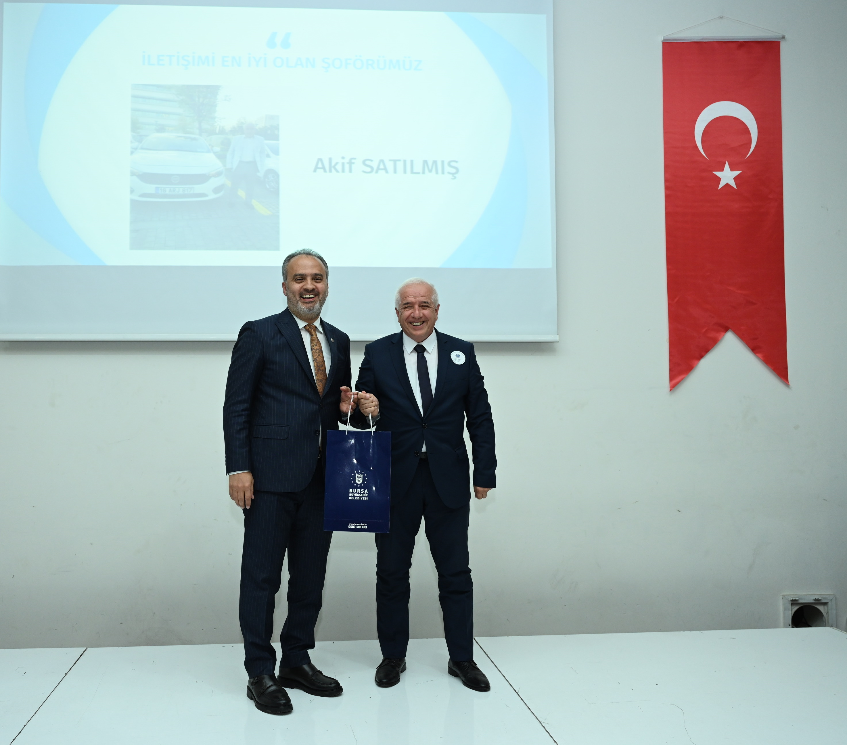 Bursa Büyükşehir Belediyesi’nin 17 ilçe ve 1058 mahallede hizmet ettiğini söyleyen Başkan Alinur Aktaş, insanların doğumlarından ölümlerine kadar her an yanlarında olduklarını ve onların hayatlarına dokunduklarını ifade etti. Ödül alan tüm birim üyelerini tebrik eden Başkan Aktaş, “Bursa’yı her zaman bir önceki günden daha yaşanabilir hale getirmek için mücadele ediyoruz. Ortaya koyduğumuz hedeflere ne kadar ulaştığımızı, vatandaşımızı ne kadar memnun ettiğimizi sürekli ölçüyoruz. Bunun yanında kurum içinde birimlerimizin ürettiği hizmetlerden diğer birimlerin ne kadar memnun olduğunu, ne kadar kaliteli olduğunu ölçüyoruz. Yaptığınız işin ne kadar meşakkatli olduğunu biliyoruz. Tüm personelimizi şehrimizin her köşesine güvenle taşıyan sizlersiniz. Yaptığınız işi sadece direksiyon sallamak, bir yerden başka yere personel-eşya taşımak olarak görmeyin. Bu kadim şehrin en ücra köylerine, kasabalarına belediyemizin hizmetlerinin götürülmesini sağlayan da sizlersiniz” dedi.