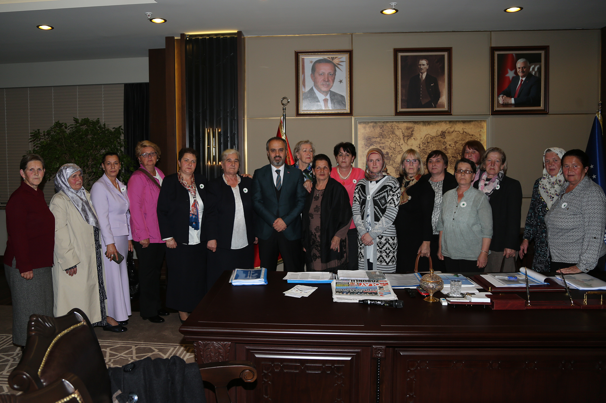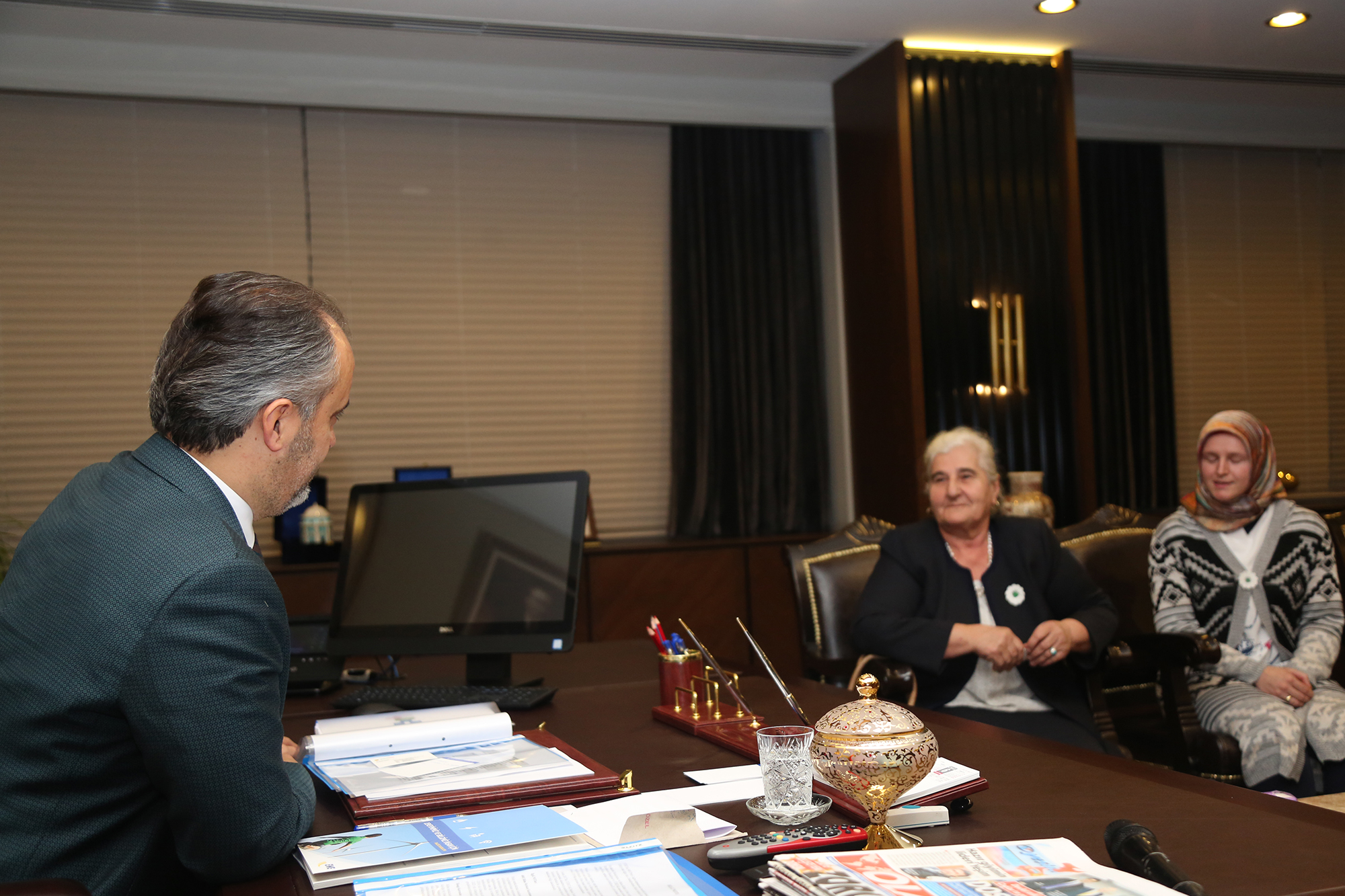 Bursa Büyükşehir Belediye Başkanı Alinur Aktaş, Srebrenica Anneleri Derneği üyelerini, Büyükşehir Belediyesi Hizmet Binası’ndaki makamında ağırladı.