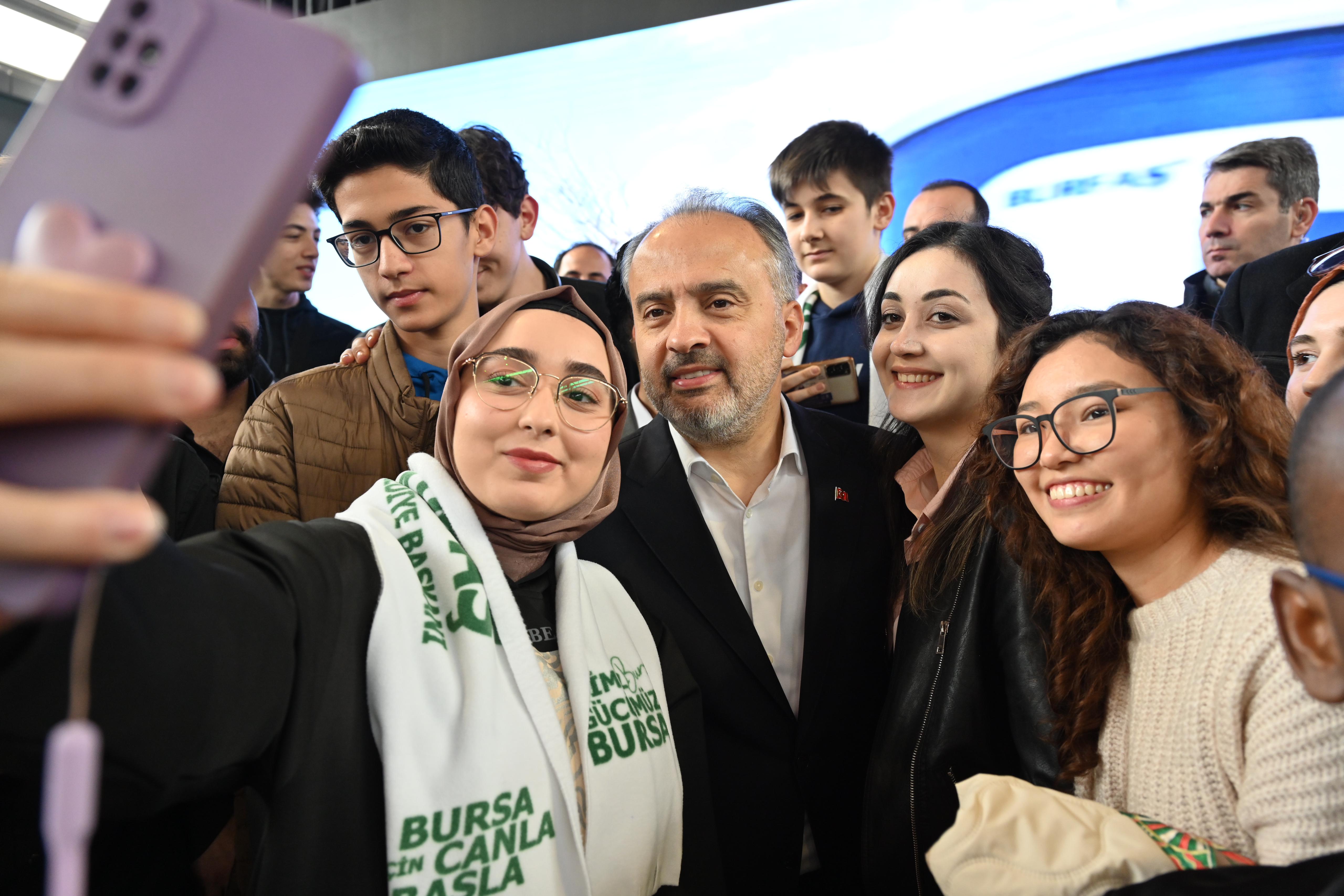 Bursa Teknik Üniversitesi’nin de şehrin doğusunda olduğunu hatırlatarak yıldırım ilçesine kültür merkezi kazandıracaklarını açıklayan Başkan Aktaş, “Bursa olarak gerçekten öğrenci dostu şehir sıfatını hak ediyoruz. Türkiye’de 5 büyük şehir arasında ulaşım, su ve ekmek uygulaması Bursa’da. 200 liralık kart aldığınızda aylık 160 biniş yapıyorsunuz. Ben göreve geldiğimde 115 liraydı bu kart. Asgari ücret 1400 liraydı, şimdi 17 bin lira. 12 kat arttı. Akaryakıt 10 kat, elektrik 8 kat arttı. Ona rağmen bizim ulaşım fiyatımız iki kat bile artmadı. Elbette yeterli değil. 9 kilometrelik T2 hattını tamamladık. 10 kilometrelik Emek-Şehir Hastanesi, Üniversite-Görükle-Kurtuluş hattımız devam ediyor. Özellikle üniversiteden sonraki hat öğrencilerimizi ilgilendiriyor. Önümüzdeki yılsonuna doğru onu bitirmiş olacağız. Yeni dönemde şehrin kuzeyinden güneyine Demirtaş-Çalı arasında bir hat başlatıyoruz. Yeni dönemde 500 tane elektrikli otobüslerimiz olacak. Yeni otoparklarla da şehir trafiğini rahatlatacağız” diye konuştu.