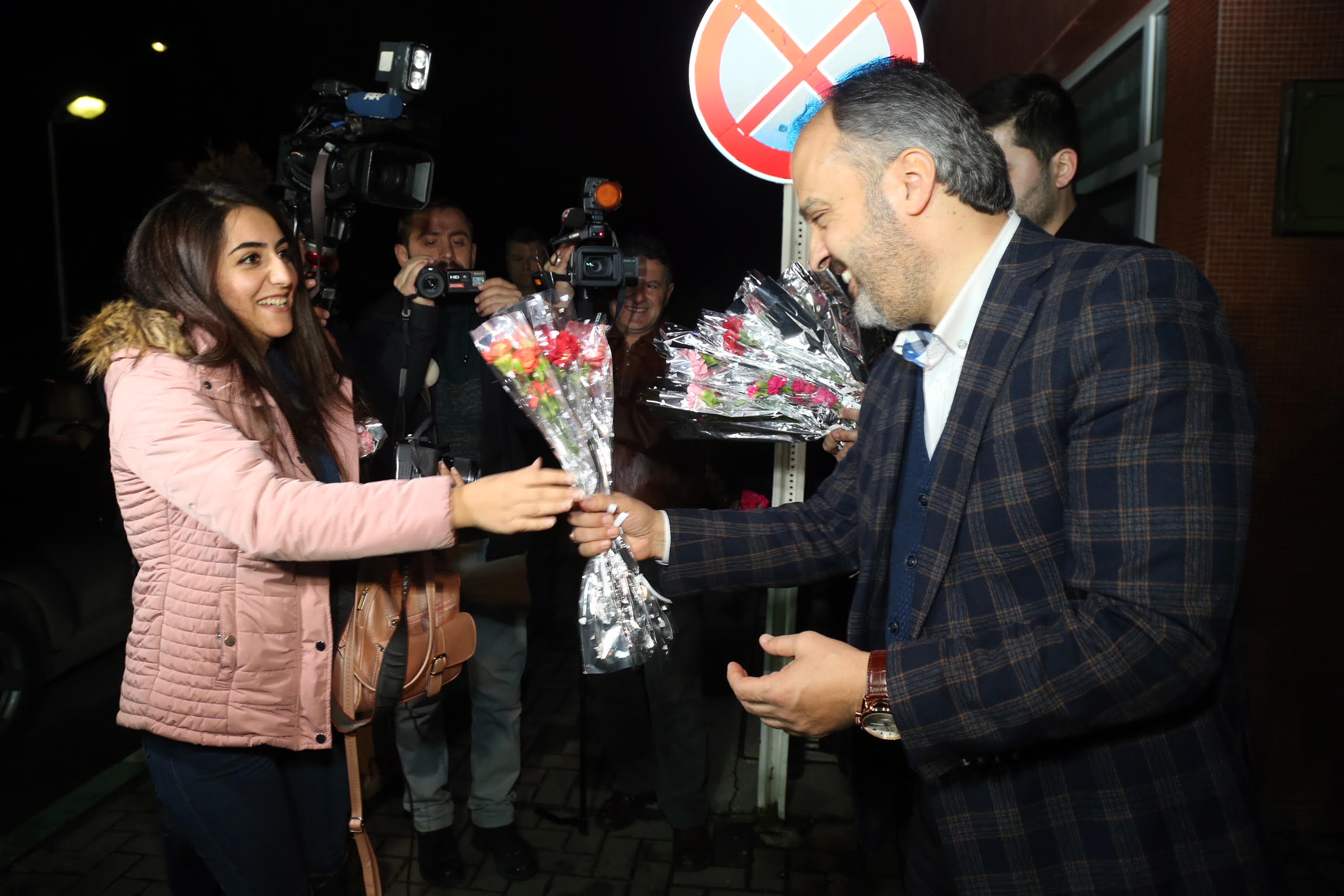 Yeni yılı görev başında karşılayan basın mensuplarına da çiçek veren Başkan Aktaş, “Heyecanlı, mutlu, hareketli bir gün yaşadık, insanlarda bir telaşe var. Bir takvim bitiyor, yeni bir takvim başlıyor. İnsanları mutlu görmek bizi de mutlu ediyor. 2018 yılının ülkemiz ve tüm insanlık için hayırlara vesile olmasını diliyorum. Sağlıklı, huzurlu, barış içerisinde bir yıl olsun. Ülkemizin hedefleri var, bu hedeflere ulaşılan bir yıl olmasını diliyorum” diye konuştu.
