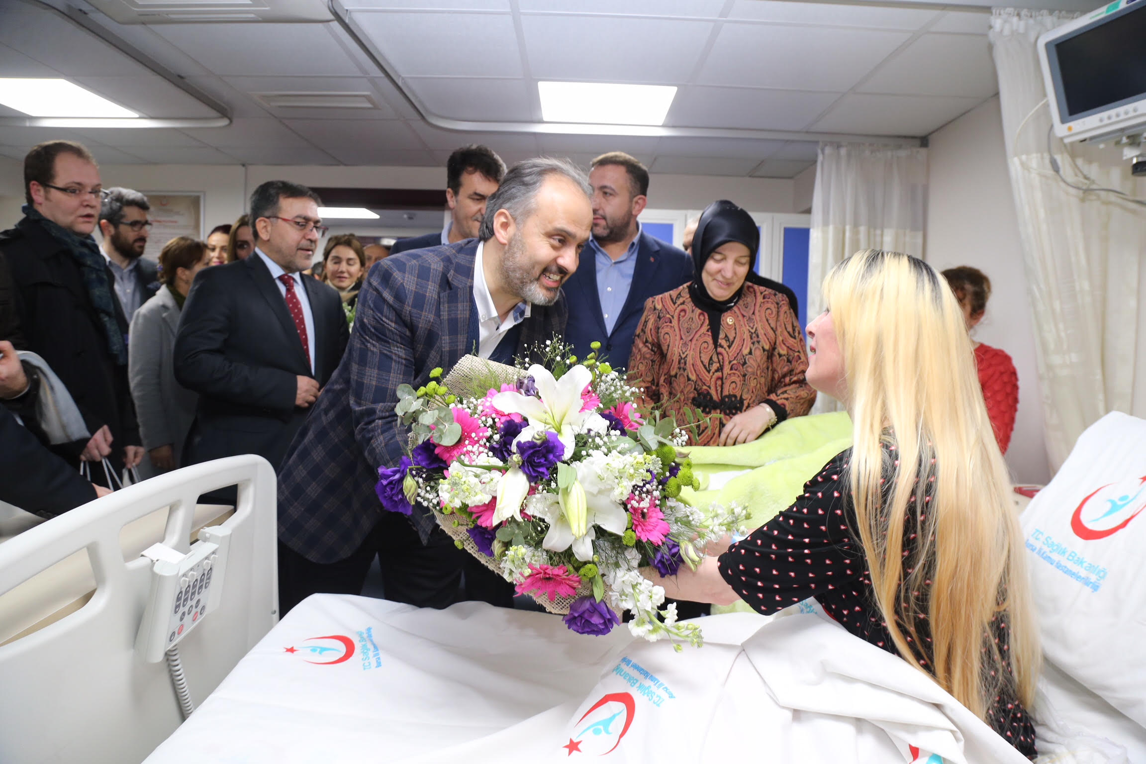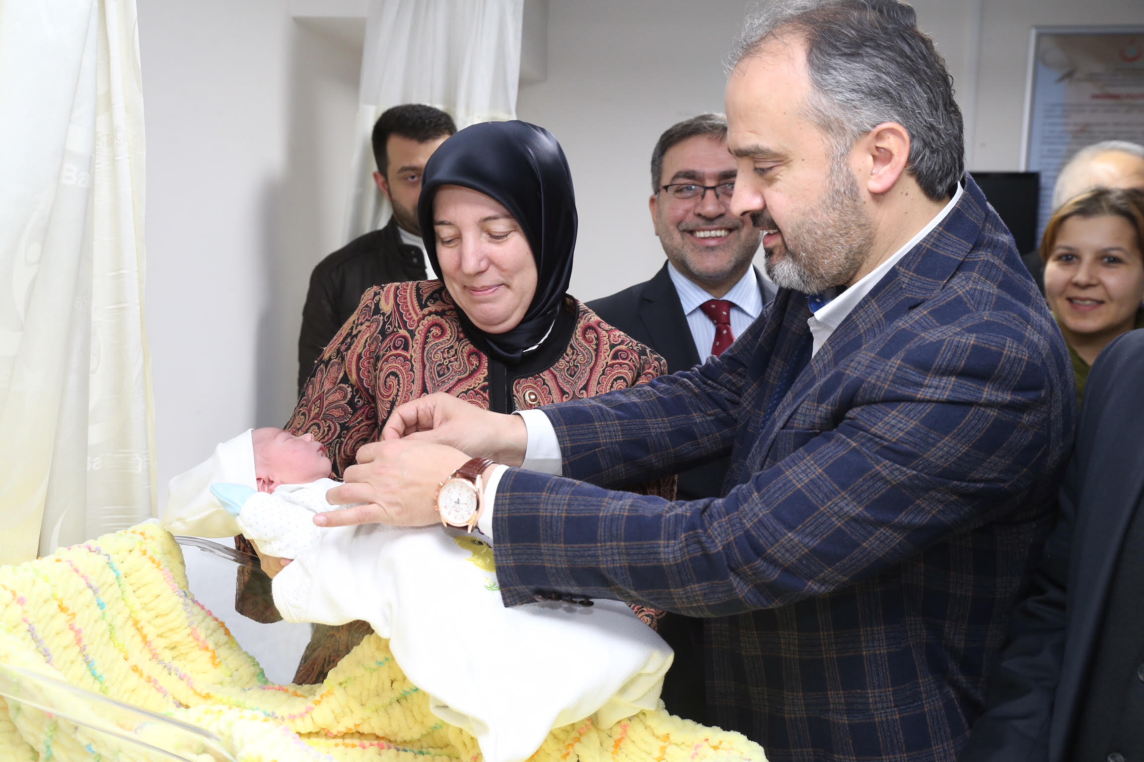 Bursa’da yeni yıl akşamı görev yapan Setbaşı Taksi Durağı’nda esnafla sohbet eden Başkan Aktaş, daha sonra Çekirge Polis Merkezi, Çekirge Devlet Hastanesi ve Zübeyde Hanım Doğumevi’ni ziyaret etti. Başkan Aktaş, Zübeyde Hanım Doğumevi’nde; Nurten – Mesut Agaç çiftinin 2017 yılının son saatlerinde doğan Muhammed Gökay adlı bebeği ile Hülya – Bayram Karakaş çiftinin 2018 yılının ilk dakikalarında dünyaya gelen Eymen adlı bebeğine altın hediye ederek, sağlıklı ömürler diledi.