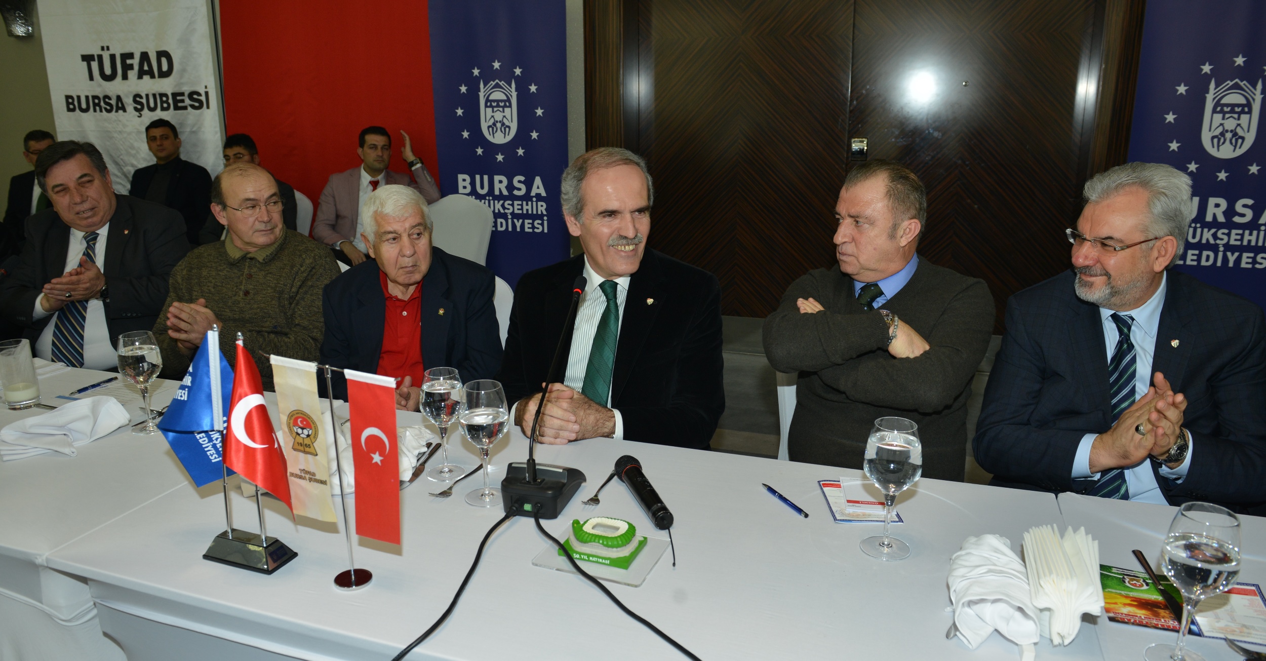 Bursa’da Büyükşehir Belediyesi’nin spora yatırımlarından örnekler veren Başkan Altepe, Türkiye Futbol Direktörü Fatih Terim’in bilgi ve deneyimlerini Bursalılarla paylaşmasının önemine vurgu yaptı. Başkan Altepe, kentin spor tutkusunu da örnekleyerek, “Türk sporuna hizmet vermekten onur duyuyoruz. ‘Spor kenti Bursa’yı hedefliyoruz. Bu nedenle Büyükşehir Belediyesi olarak Bursaspor’a ve amatör spor kulüplerine destek veriyor ve yanlarında olduğumuzu hissettiriyoruz” diye konuştu.