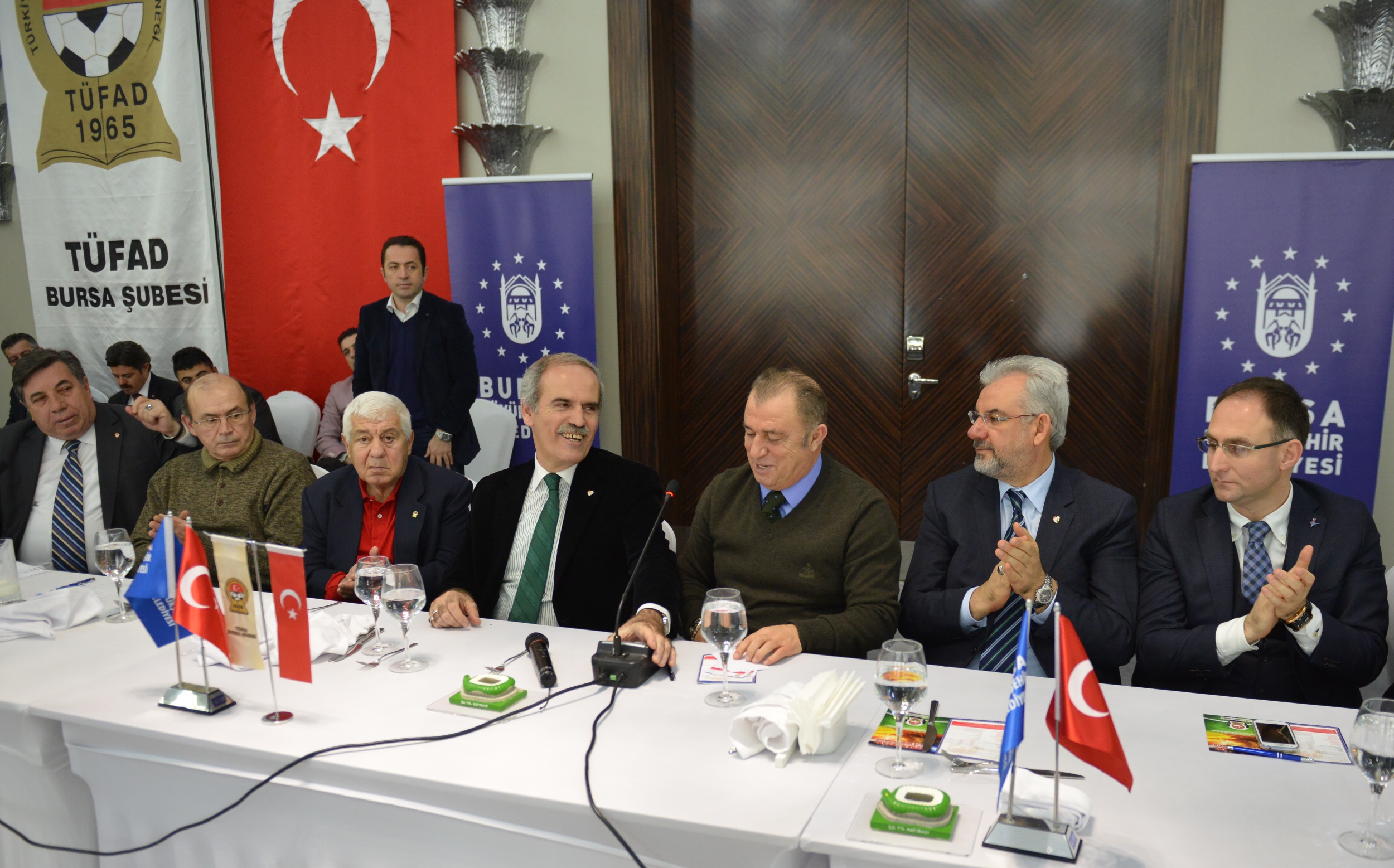 Büyükşehir Belediye Başkanı Recep Altepe, Türkiye Futbol Antrenörleri Derneği Bursa Şubesi (TÜFAD) tarafından düzenlenen ve Türkiye Futbol Direktörü Fatih Terim’in bilgi ve deneyimlerini Bursalı antrenörlerle paylaştığı seminere katıldı. Crowne Plaza’da gerçekleştirilen programda konuşan Başkan Altepe, Bursa’nın marka değerinin her alanda olduğu gibi spor alanında konuşulması gerektiğini söyledi.