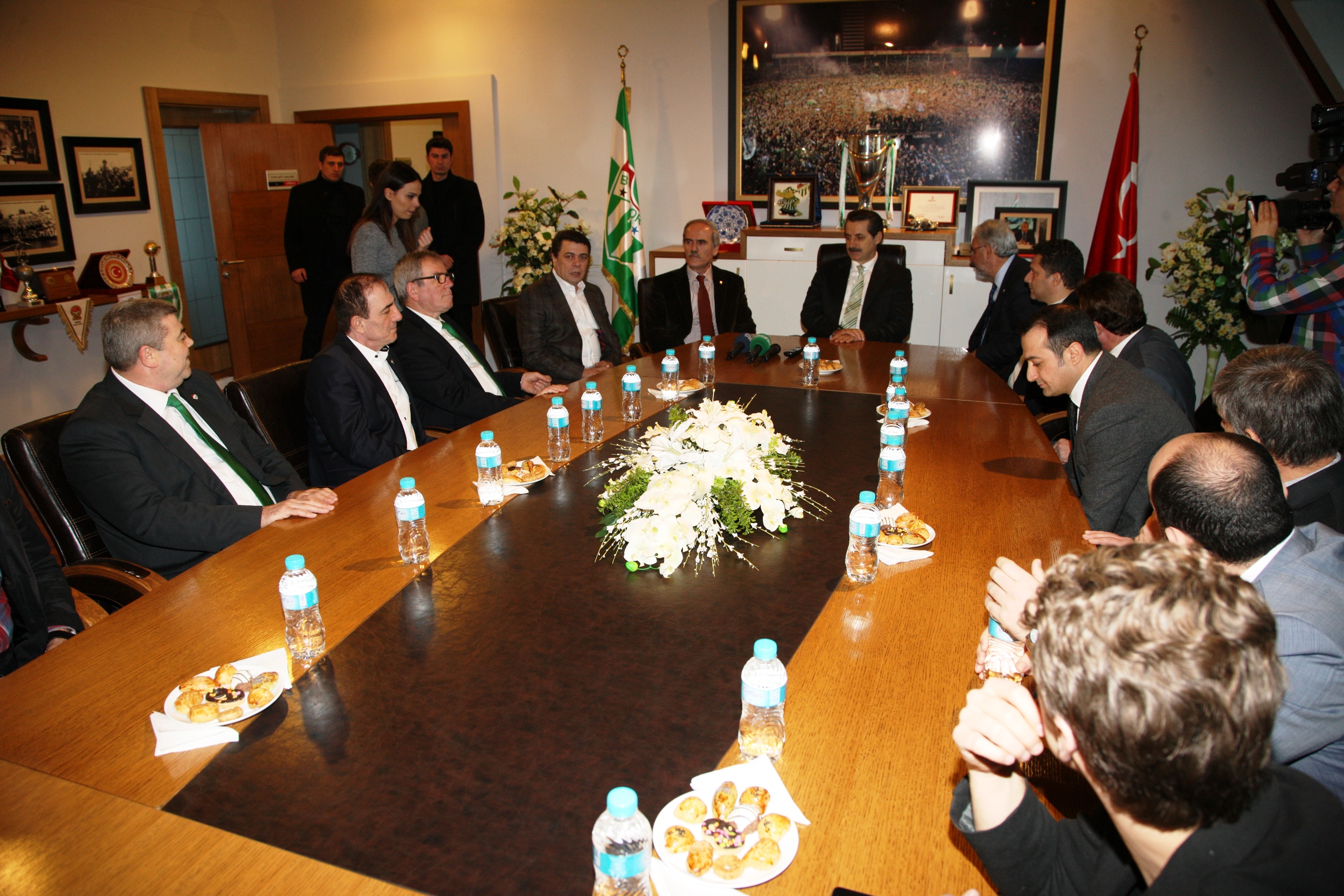 Bursa Büyükşehir Belediye Başkanı Recep Altepe, Çalışma ve Sosyal Güvenlik Bakanı Faruk Çelik ile birlikte, Gençlerbirliği maçı öncesinde Bursaspor’u Özlüce’de ziyaret etti. Bursa’da Gençlerbirliği’ni ağırlayan ve galibiyet için evinde mücadele eden Bursaspor’un her zaman destekçisi olan Bakan Çelik ile Başkan Altepe, takıma maç öncesinde de moral verdi.