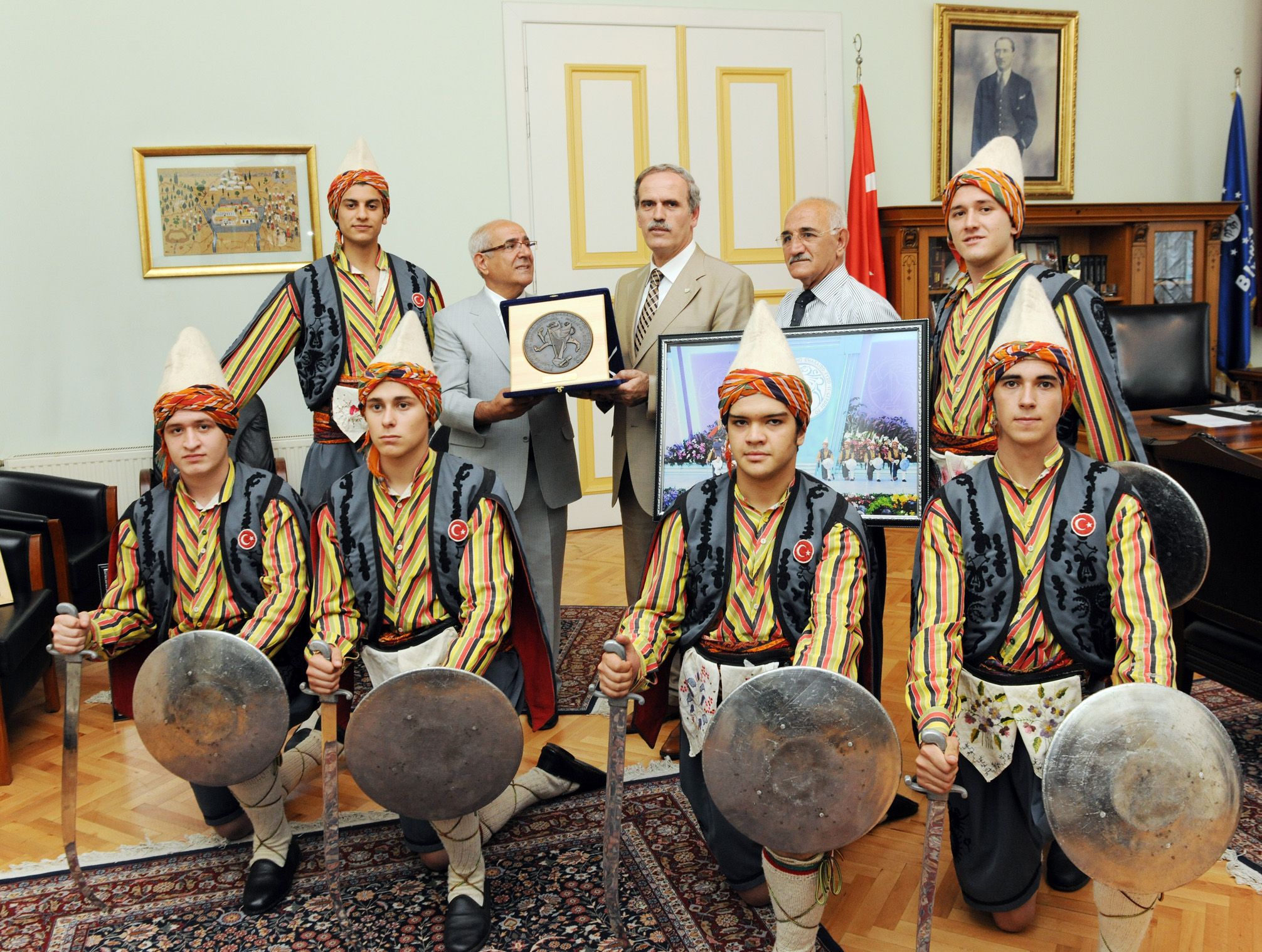 Büyükşehir Belediyesi’nin tahsis ettiği Kılıç Kalkan Evi’nde çalışmalarını yürüten Bursa Kılıç- Kalkan Halk Oyunları Derneği Başkanı Metin Dikerel ve Dünya birincisi olan ekip, birincilik coşkusunu paylaşmak amacıyla Büyükşehir Belediye Başkanı Recep Altepe’yi ziyaret etti. Llangollen´de kazanılan birinciliğin çok büyük bir anlam taşıdığını ifade eden Dikerel, "Bizlerin yıllardır rüyalarını süsleyen, onun hayaliyle yaşadığımız, ağabeylerimizin 1960 yılında tam 52 sene önce dünya birinciliği kazandığı Llangollen/İngiltere´de yapılacak yarışmada birincilik bayrağını taşımaktı. Yarışmada 40 civarında ülke vardı, bizim birinciliğimiz açıklandığında yer yerinden oynadı, havalara uçtuk. 52 yıl sonra bu birinciliği tekrar kazanarak şehrimize armağan etmenin mutluluğu içindeyiz” dedi.