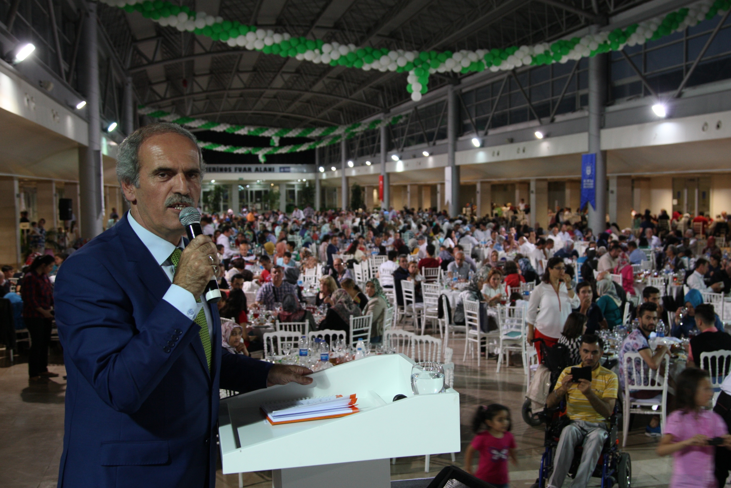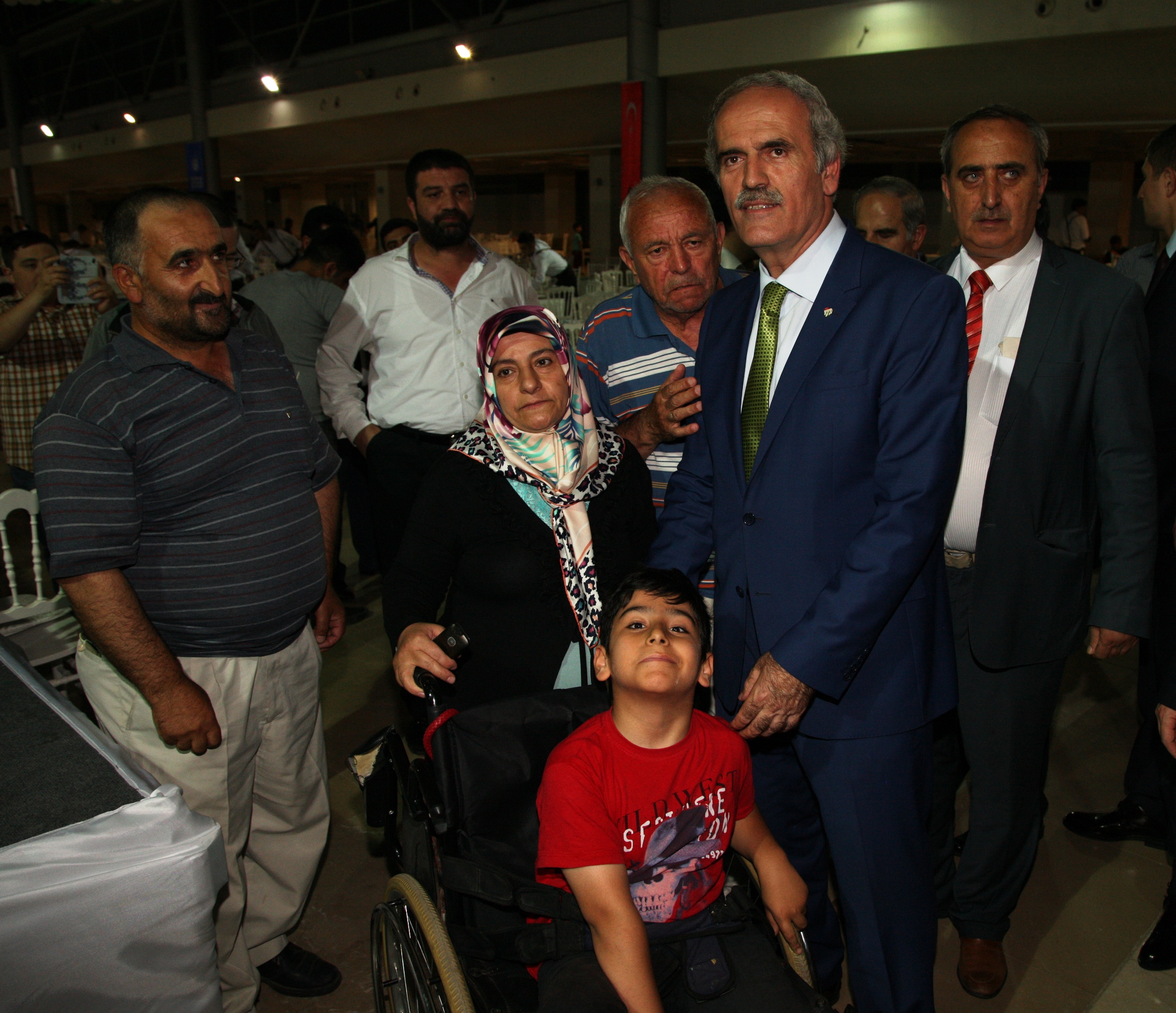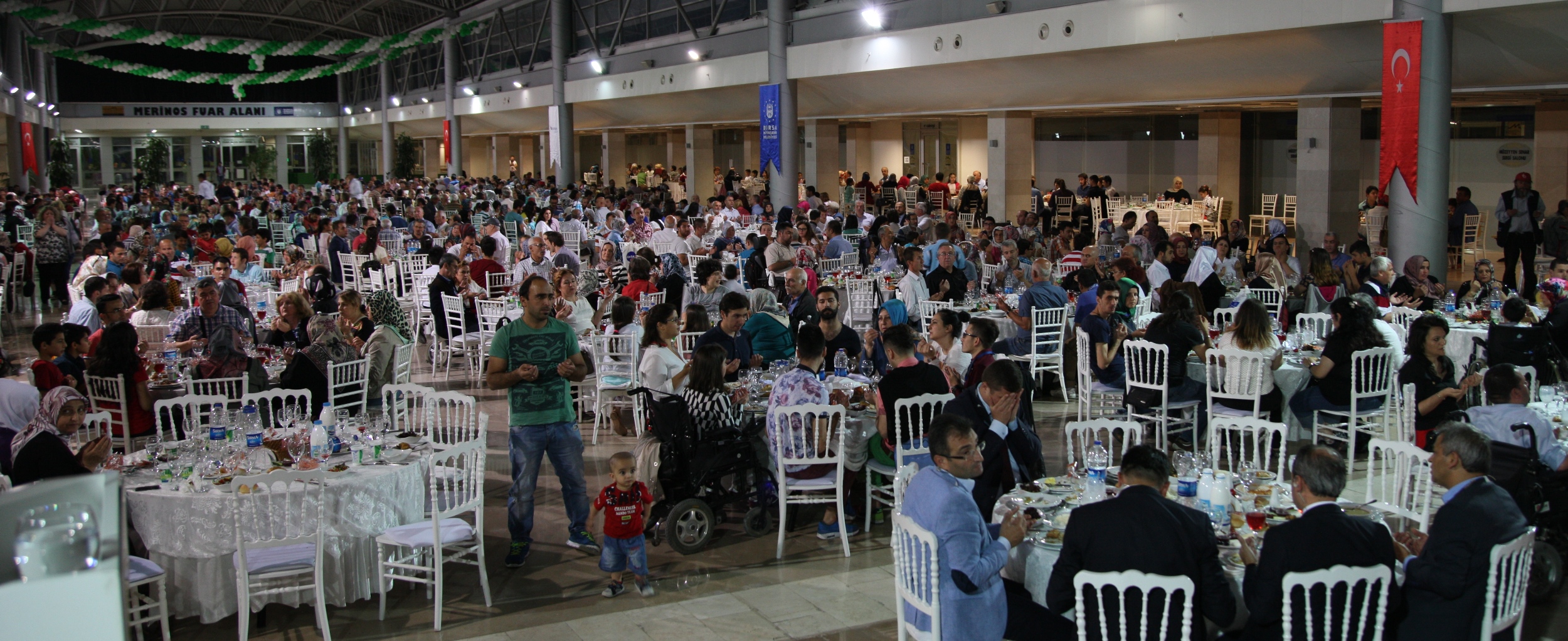 Büyükşehir Belediyesi tarafından düzenlenen ve Bursa’da yaşayan engelli vatandaşlar ve ailelerini anlamlı bir organizasyonda buluşturan iftar, Atatürk Kongre Kültür Merkezi (Merinos AKKM) fuayesinde gerçekleştirildi. Geleneksel olarak düzenlenen iftar, bu yıl 4. kez gerçekleştirildi. Yaklaşık 1500 kişinin katıldığı iftarda, birlik ve beraberliğin en güzel örneği yaşandı. Duygusal anlara sahne olan iftara aileleriyle birlikte katılan engelli vatandaşlar, Ramazan’ın huzurunu doyasıya yaşadı.