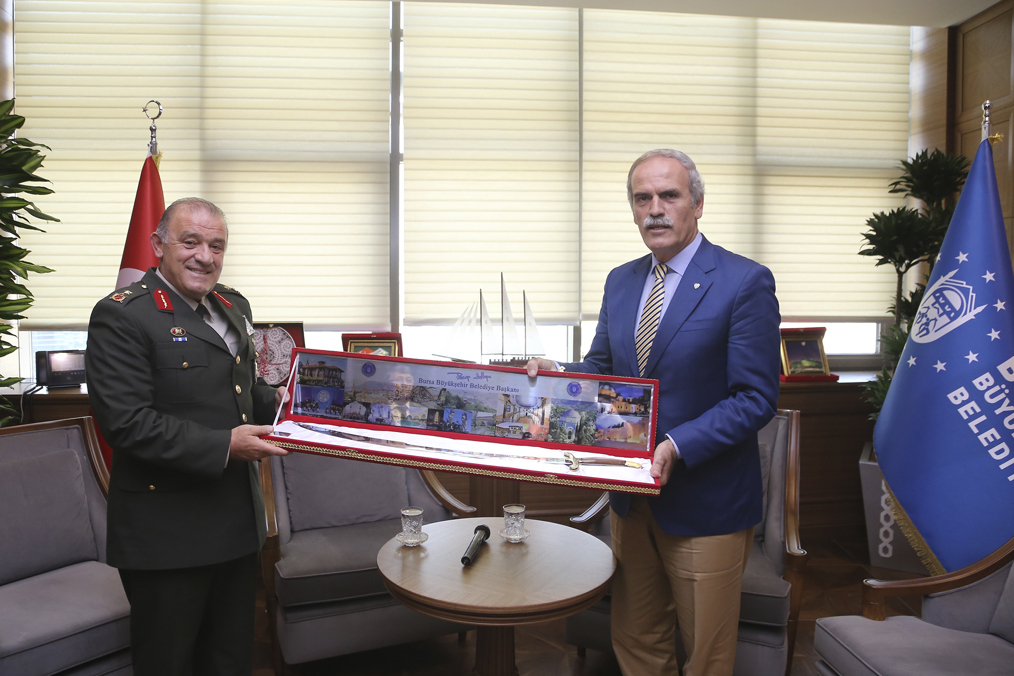 - BÜYÜKŞEHİR BELEDİYE BAŞKANI RECEP ALTEPE, İÇİŞLERİ BAKANLIĞI KARARNAMESİYLE BURSA’YA GARNİZON KOMUTANI OLARAK ATANAN TUĞGENERAL AHMET HACIOĞLU’NU AĞIRLADI.