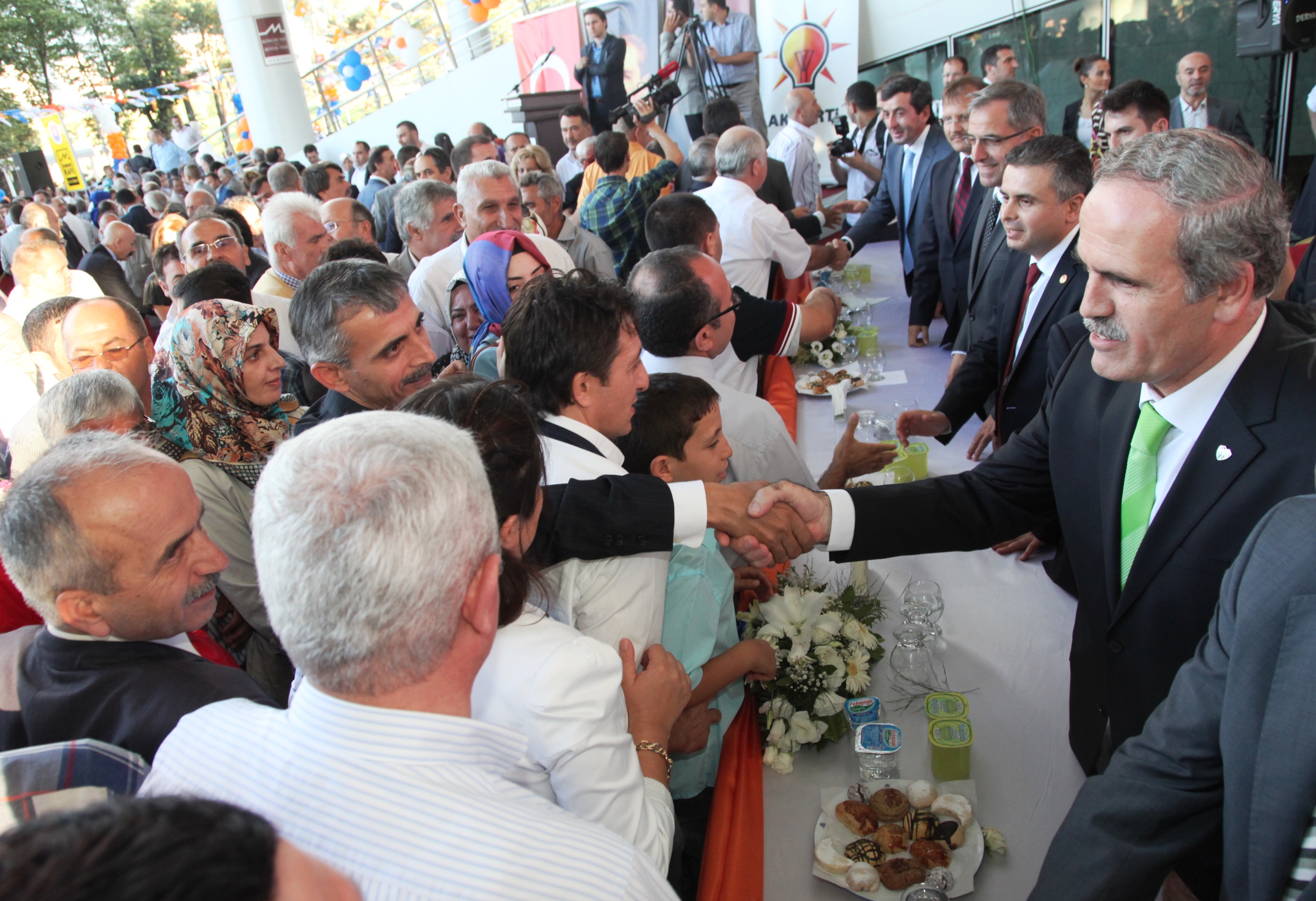AK Parti İl Başkanı Sedat Yalçın ise bayramların kardeşliğin, dayanışmanın, paylaşmanın ve sevginin zirveye ulaştığı zamanlar olduğunu söyledi. AK Parti teşkilatı olarak milletvekilleriyle birlikte Ramazan ayı boyunca sokak iftarlarına katılıp, halkın sorunlarını dinlediklerini hatırlattı, yapılacak çalışmalarından bahsetti. Bayramlaşma törenine, milletvekilleri, ilçe belediye başkanları ve partililer yoğun ilgi gösterdi.