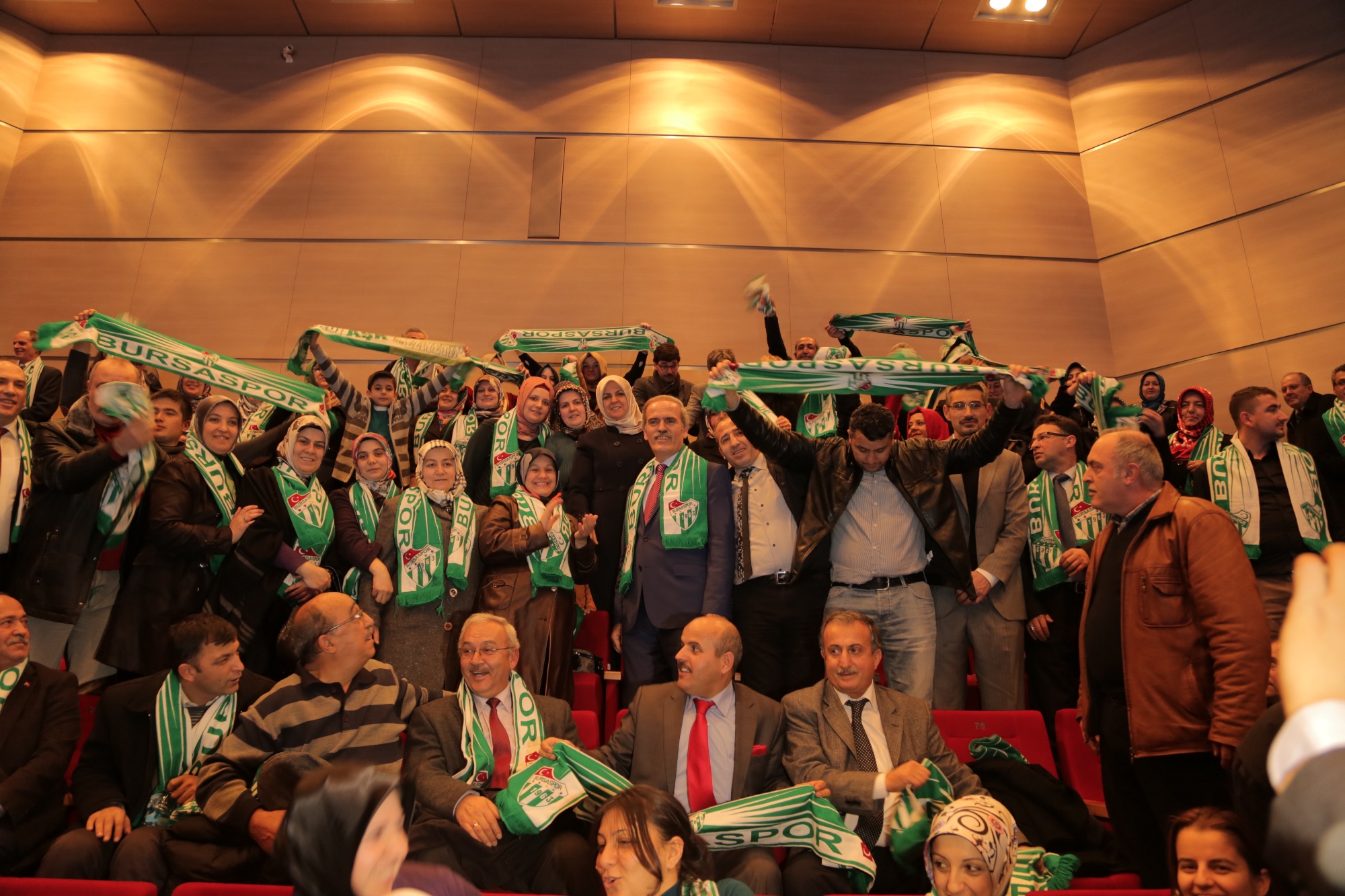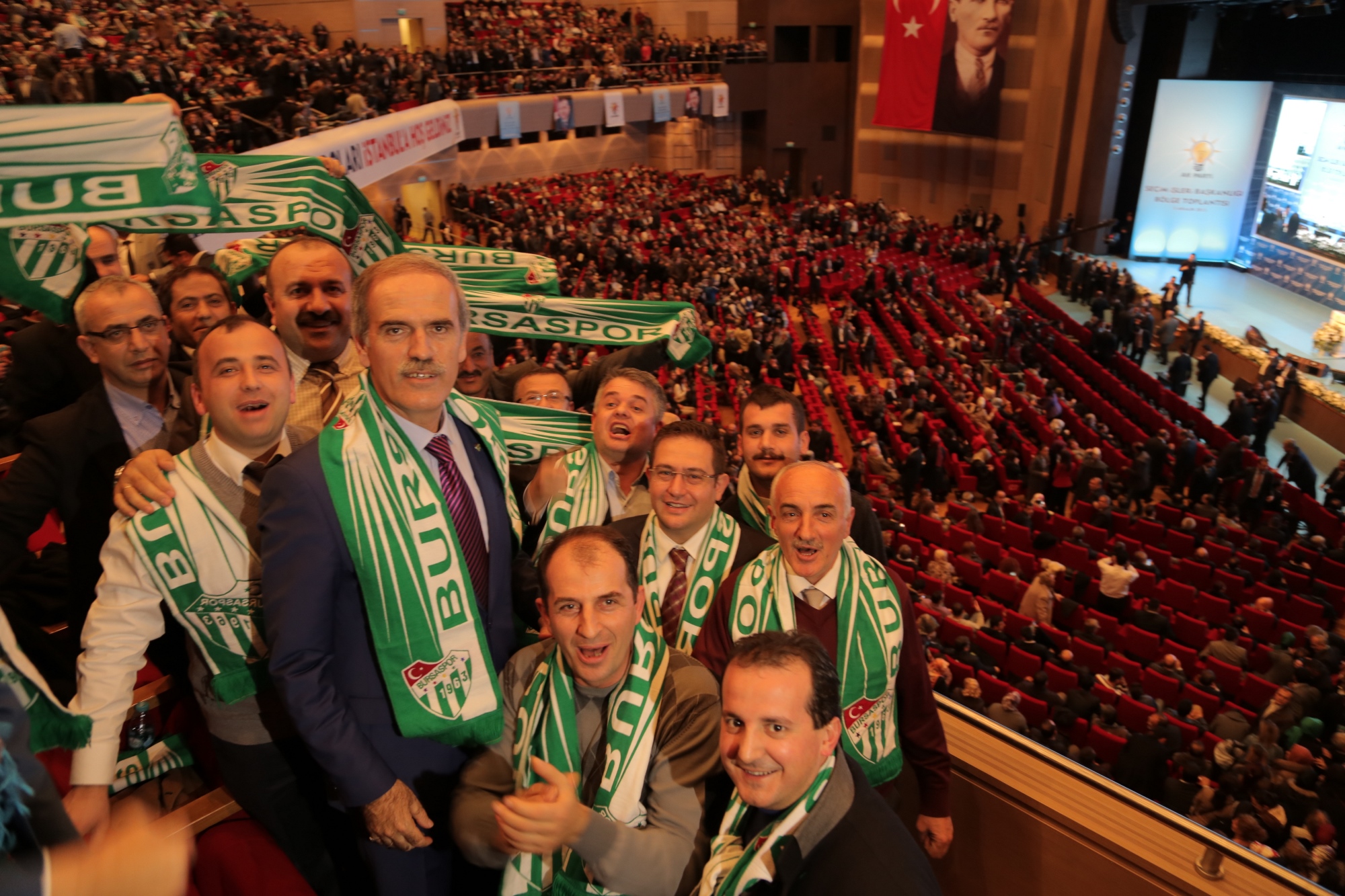 Başbakan Recep Tayyip Erdoğan, İstanbul Haliç Kongre Merkezi’nde düzenlendiği toplantı ile 21 belediye başkan adayını kamuoyuna tanıttı. Toplantıyı izlemek için Bursa’dan gelerek yeşil beyazlı bayraklarla salonu dolduran partililerin sloganları arasında ekrana yansıyan Bursa görüntülerinin ardından konuşan Başbakan Erdoğan, “Eğitim, sağlık, adalet, emniyet, toplu konutta yaptıklarımızı gördünüz. Bunun yanında raylı sistemler konusunda Büyükşehir Belediyemizin de attığı önemli adımlar var. Bursa aynı şekilde gelişiyor. Uludağ’da, Bursa merkezinde atılan atımlar var. Bursa gelişiyor, güzelleşiyor. İnşallah bundan sonraki süreçte inşallah şehir stadı da kısa zamanda bitecek. Şehir merkezindeki stadı kaldıracağız. Yapılan modern ve yeni statta inşallah uluslararası müsabakalar yapılır hale gelecek. Ulaşımda bütün gördükleriniz bizim dönemimize ait. Çok daha güçlü Bursa için parkları, bahçeleri ile kongre merkezleri ile yapılanlar hep bu döneme ait. Yerel genel olarak el ele bunları yaptık. Bursa’da başarılı bir belediyecilik görüyoruz ve adayımız Büyükşehir Belediye Başkanımız Recep Altepe” diye konuştu.
