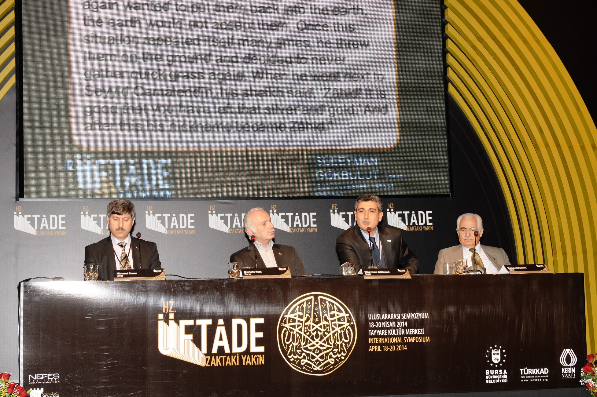 ‘Uzaktaki Yakin’ başlıklı Uluslararası Hz. Üftade Sempozyumu Bursa Büyükşehir Belediyesi, TÜRKKAD ve Kerim Vakfı tarafından ortaklaşa düzenleniyor. Bu sene ilk kez gerçekleştirilen sempozyum 8 oturumdan oluşuyor. Başkanlığını Prof.Dr. Mustafa Kara’nın yaptığı birinci oturumda Yard.Doç.Dr. Süleyman Gökbulut ve Prof.Dr. Mehmet Demirci, başkanlığını Prof.Dr. Süleyman Uludağ’ın yaptığı ikinci oturumda Yard.Doç.Dr. Sema Özdemir, Doç.Dr. Semih Ceyhan ve Dr. Mustafa Bahadıroğlu, başkanlığını Doç.Dr. Muhammed Rustom’un yaptığı üçüncü oturumda Doç.Dr. Mustafa Çakmaklıoğlu, Doç.Dr. Ekrem Demirli ve Prof.Dr. James Morris, başkanlığını Cemalnur Sargut’un yaptığı dördüncü oturumda Prof.Dr. Carl Ernst, Mustafa Özdamar ve Prof.Dr. Mustafa Kara, başkanlığını Prof.Dr. Mehmet Demirci’nin yaptığı beşinci oturumda Yard.Doç.Dr. Cangüzel Zülfikar, Stephen Hirtenstein ve Hakan Alvan, başkanlığını Prof.Dr. Bilal Kemikli’nin yaptığı altıncı oturumda Muhammed Bedirhan, Feyza Güler ve Dr. Hatice Dilek Güldütuna, başkanlığını Prof.Dr. Himmet Konur’un yaptığı yedinci oturumda Yard.Doç.Dr. Nedim Tan, Dr. Ercan Alkan ve Dr. Nazif Öztürk, başkanlığını Doç.Dr. Semih Ceyhan’ın yaptığı son oturumda ise Doç.Dr. Muhammed Rustom, Doç.Dr. Osman Nuri Küçük ve Cemalnur Sargut konuşmacı olarak yer alıyor. Halka açık olarak gerçekleştirilen sempozyum, 20 Nisan 2014 Pazar günü sona erecek.
