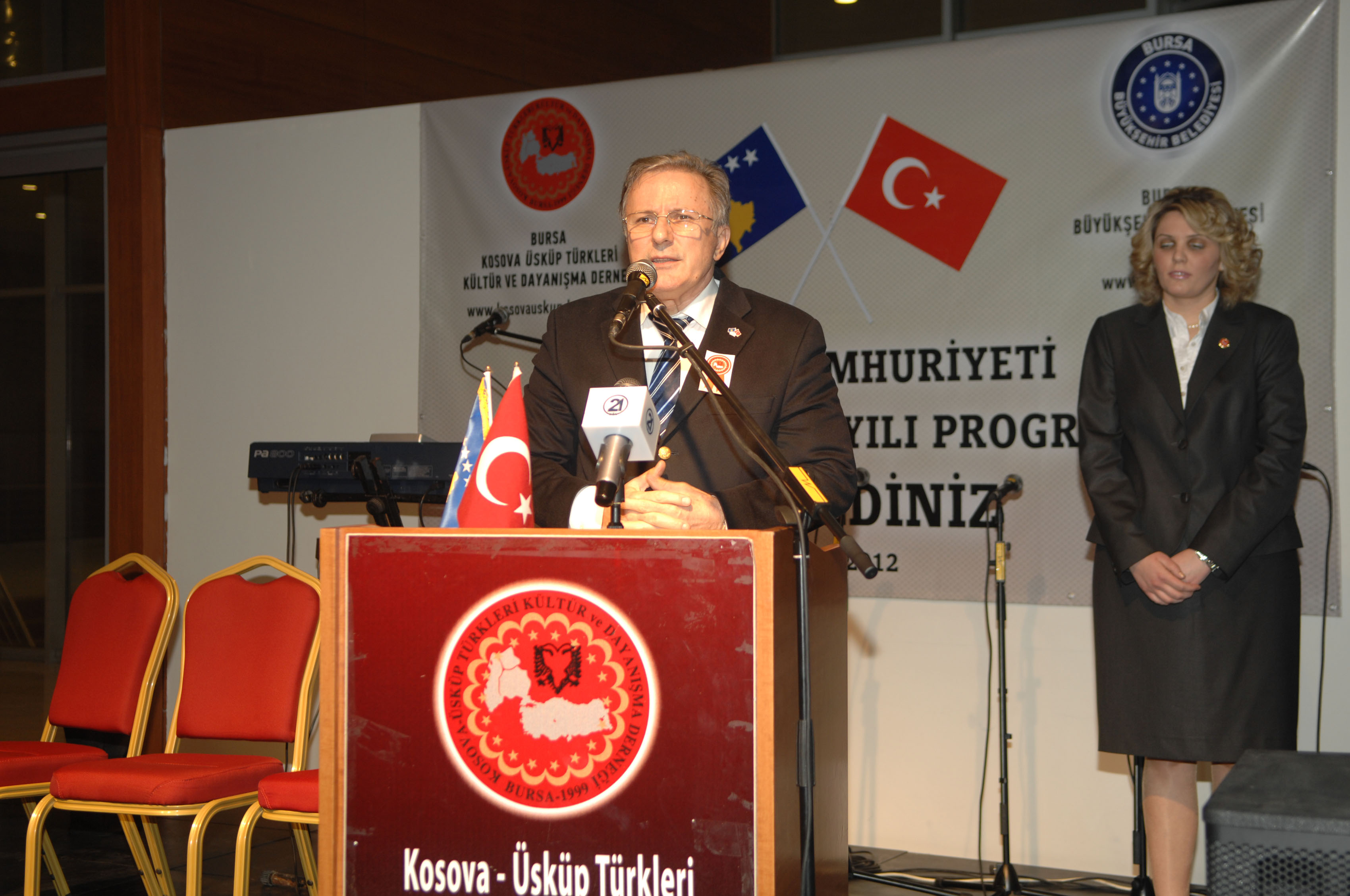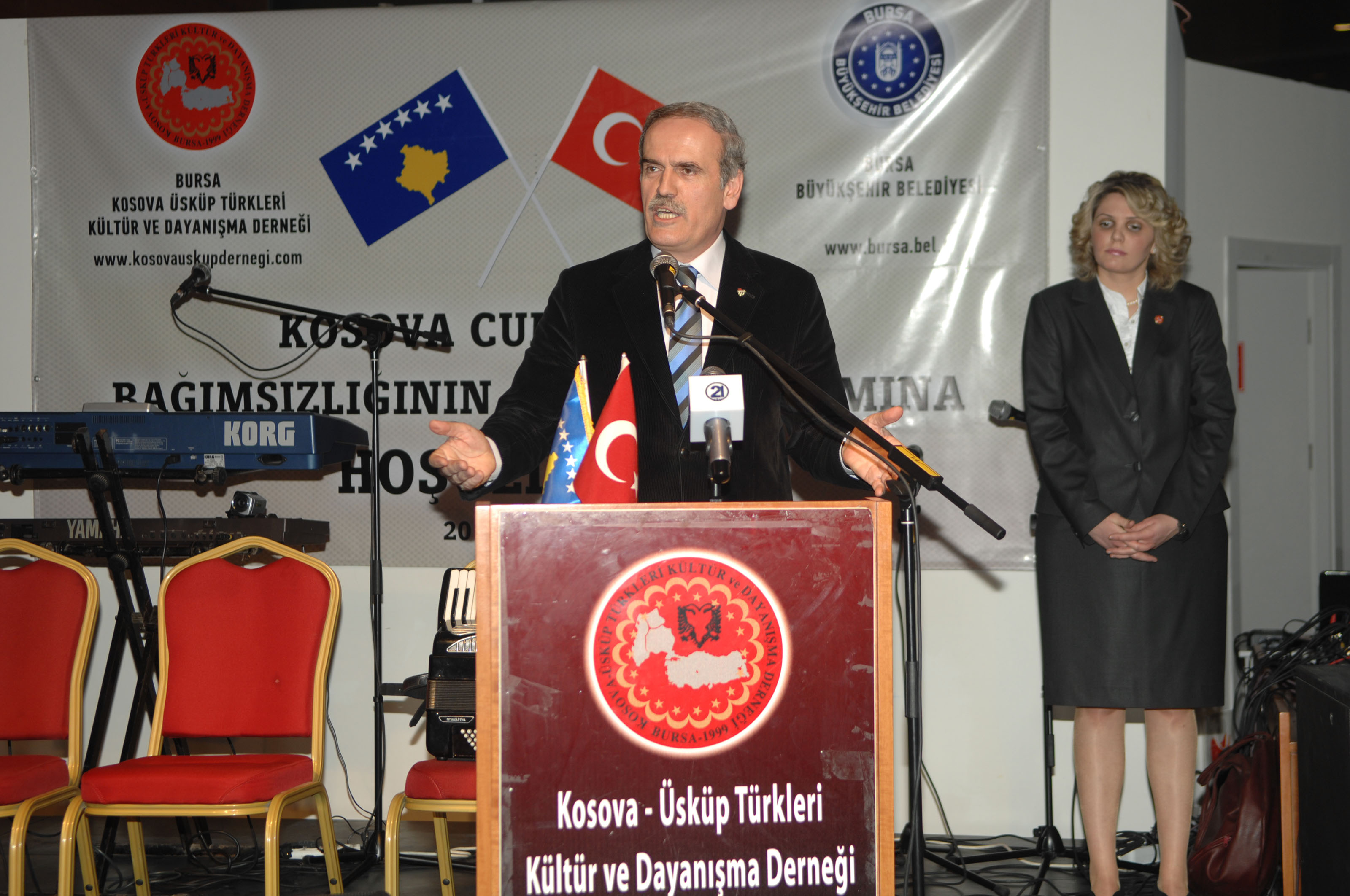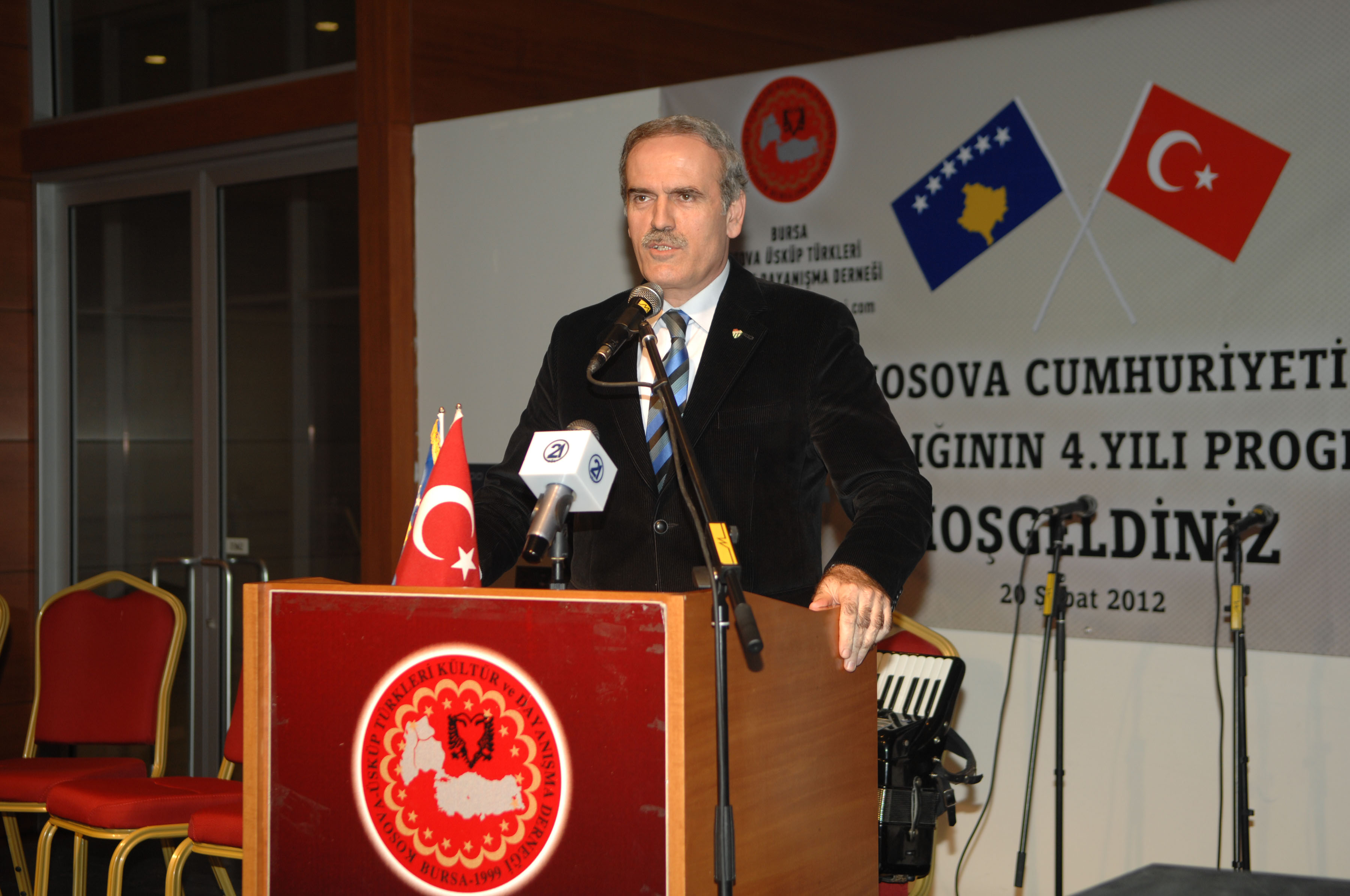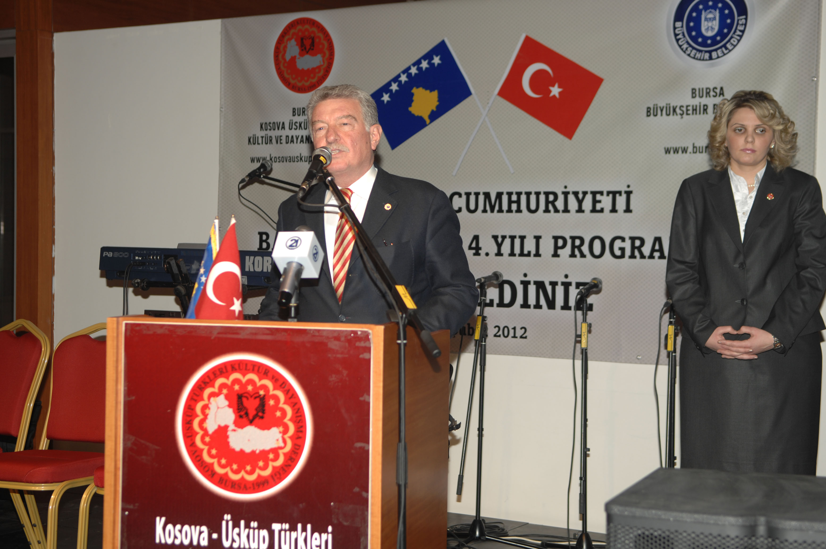 Kosova Üsküp Türkleri Kültür ve Dayanışma Derneği tarafından Büyükşehir Belediyesi’nin destekleriyle düzenlenen Kosova Cumhuriyeti’nin 4. Kuruluş Yıldönümü Kutlama Gecesi’, Atatürk Kongre Kültür Merkezi (Merinos AKKM) Yıldırım Bayezid Salonu’nda gerçekleştirildi. Geceye, Bursa Büyükşehir Belediye Başkanı Recep Altepe, Kosova Cumhuriyeti Ankara Büyükelçisi Bekim Sejdiu, Karadağ Cumhuriyeti Ankara Büyükelçisi Ramo Braliç, Kosova Cumhuriyeti Müftü Yardımcısı Eyüp Ramadanin, Bursa milletvekilleri, ilçe belediye başkanları, Kosova belediye başkanları, partilerin ve sivil toplum kuruluşlarının temsilcileri ve çok sayıda davetli katıldı.