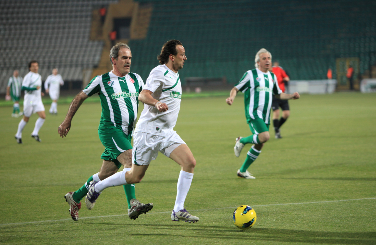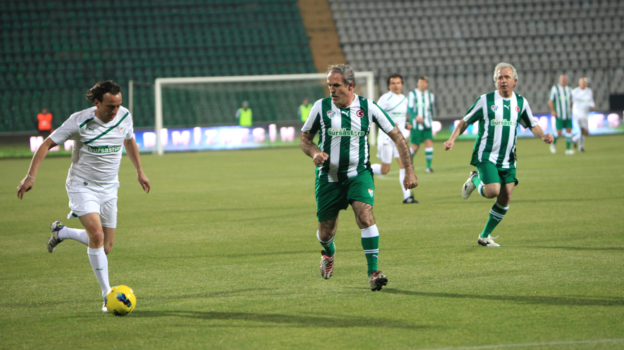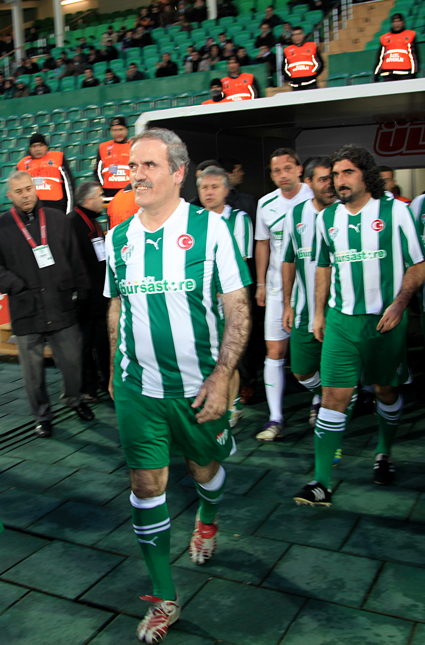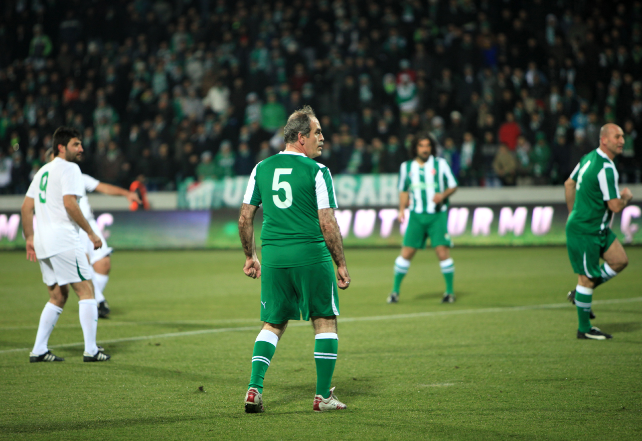 BURSA - Bursaspor´da forma giyen eski futbolcular ile Büyükşehir Belediye Başkanı Recep Altepe ve teknik direktör Ertuğrul Sağlam´ın oluşturduğu şöhretler takımı, geçtiğimiz yıl hayatını kaybeden Bursaspor´un eski futbolcusu ve teknik direktörü ´İmparator´ lakaplı Nejat Biyediç sahaya çıktı.