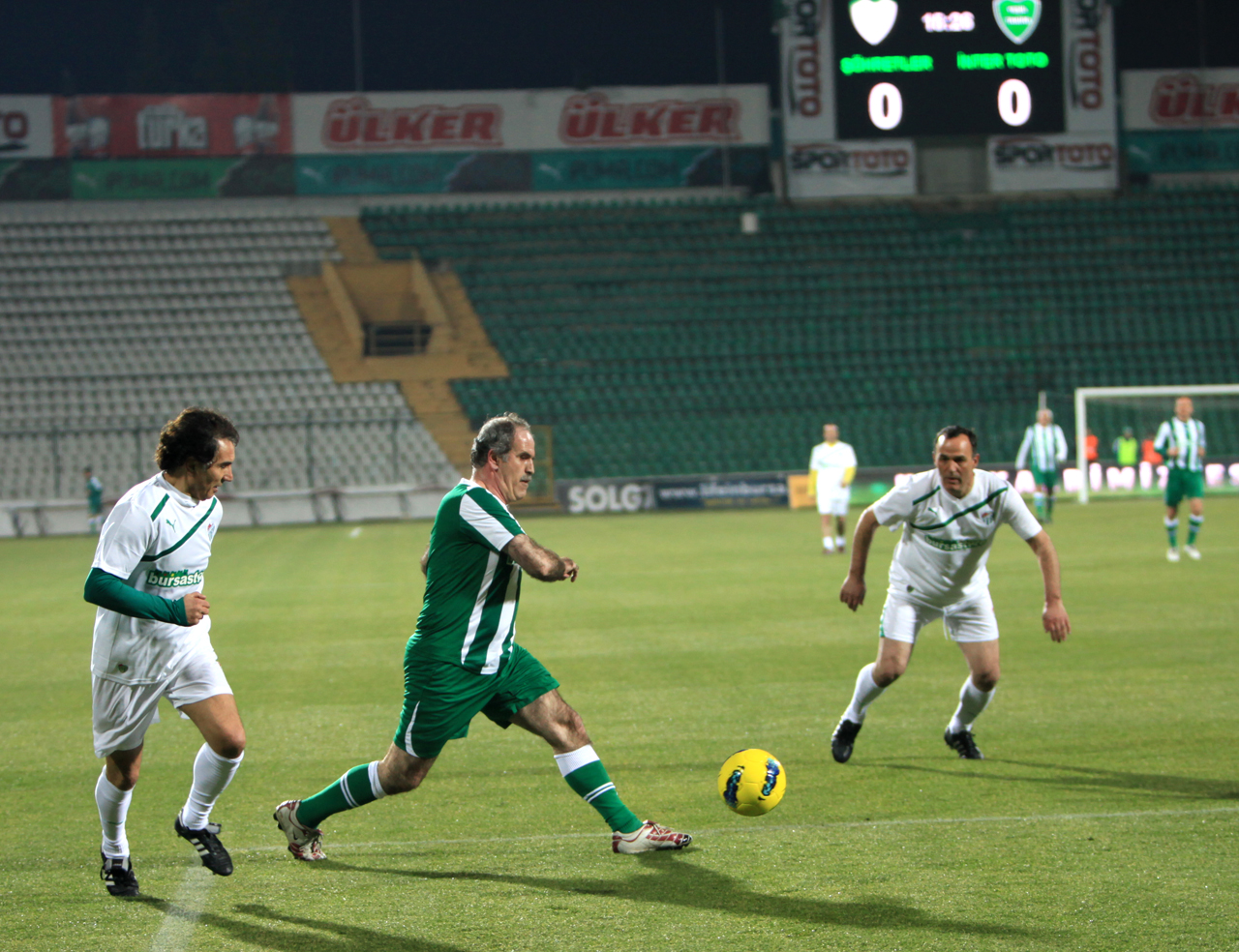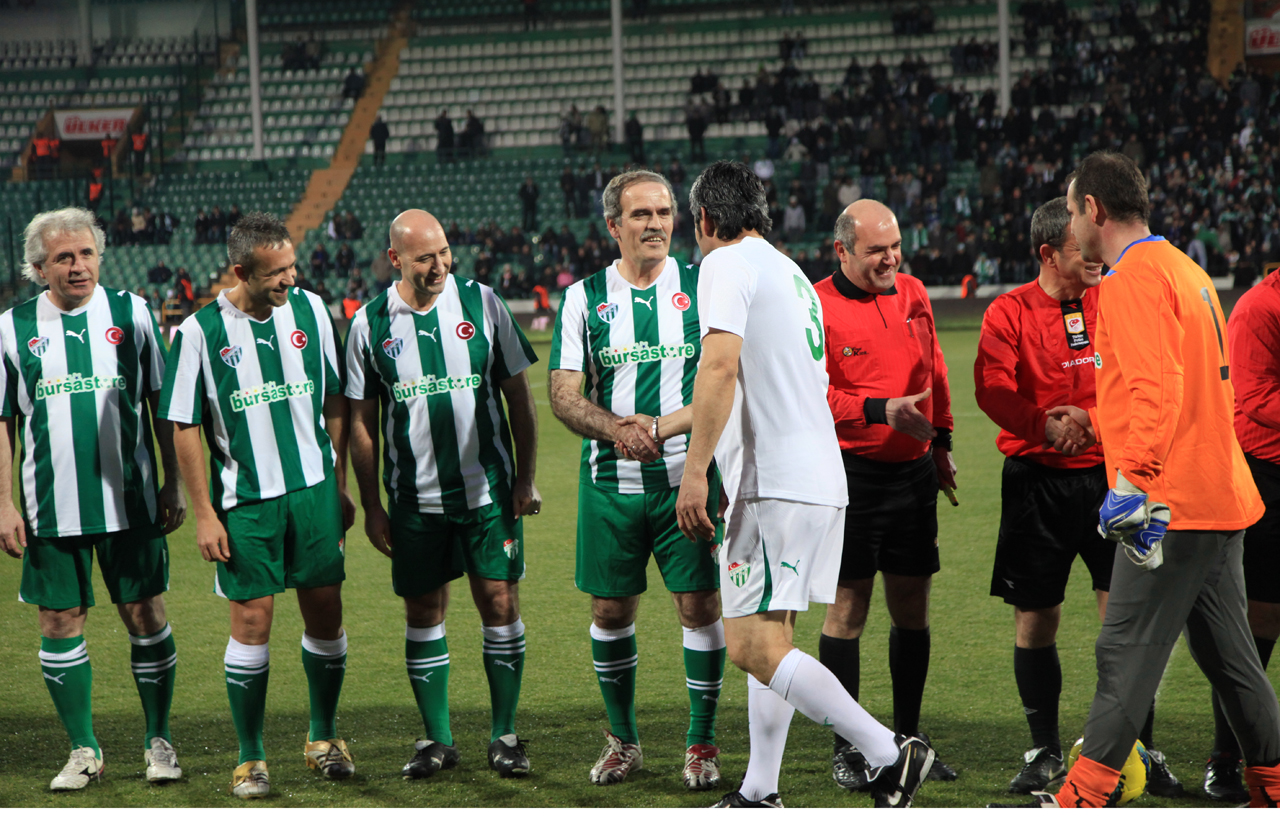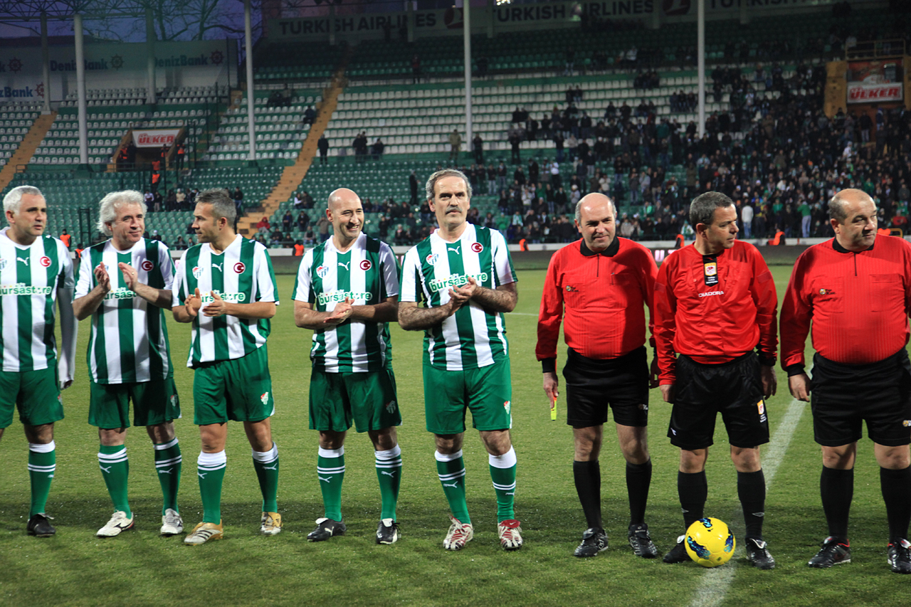 Bursaspor´un eski futbolcuları Okan Yılmaz, Mutlu Topçu, Mehmet Tezcan, Ahmet Suphi, Erkan Öncel, Ender Altan, Şenol Karagöl, Mirza Varesanovic, Adnan Örnek, Faruk Korkmaz, Mustafa Göndem, Ercüment Şahin, Cemal Vardar, Selim Özer, Ümit Şengül, Recep Çetin, Mehmet Çetin, Çetin Kahraman, Ersel Altıparmak, Serkan Rençber, Deniz Kolgu, Mümin Kaşmer, Şenol Ulusavaş, Hakan Cenkçiler, Ünal Sarı ve Ersel Uzgur izleyenlere geçmiş günleri hatırlattı. Maça gelen yaklaşık 5 bin kişilik Bursaspor taraftarı, şöhretlerin maçını ilgiyle izledi. Renkli görüntülere sahne olan karşılaşmayı, Ercüment´in attığı kafa golü ve Ertuğrul Sağlam´ın ceza sahası dışından attığı golle İnter Toto Şöhretleri 2-0 kazandı.