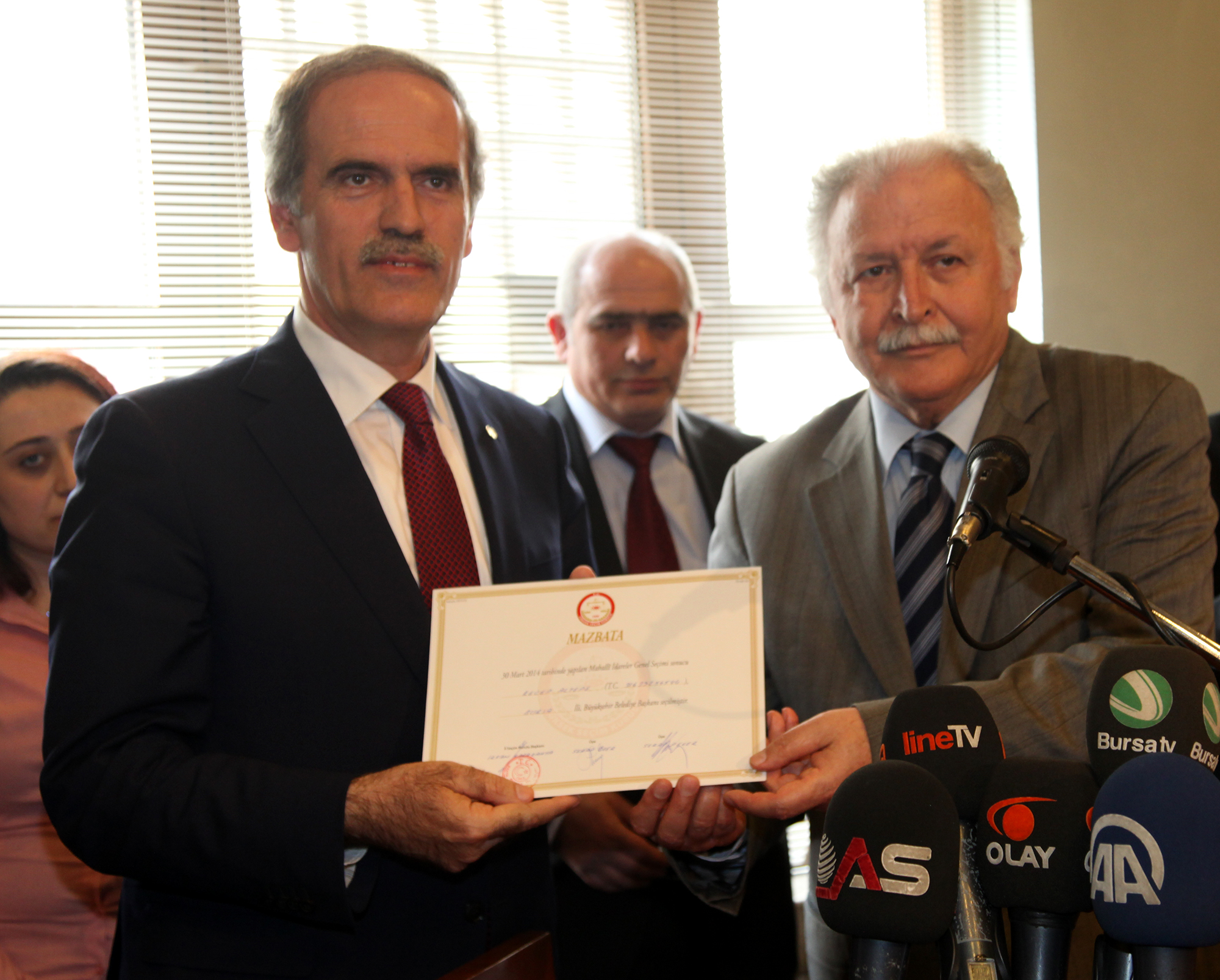 Bursa’da Büyükşehir Belediye Başkanlığı koltuğuna iki dönem üst üste oturmayı başaran ilk isim olarak tarihe geçen Başkan Recep Altepe, ikinci dönem için mazbatasını İl Seçim Kurulu’ndan aldı. Mazbatasını aldıktan sonra Heykel’deki tarihi binaya gelen Başkan Altepe, burada coşkulu bir kalabalık tarafından karşılandı. Yeni hizmet döneminin başlaması nedeniyle düzenlenen törende Başkan Altepe’ye, Bursa Milletvekili İsmet Su, AK Parti İl Başkanı Cemalettin Torun, Bursa’nın ilk Büyükşehir Belediye Başkanı Ekrem Barışık ile ilçe belediye başkanları da eşlik etti.