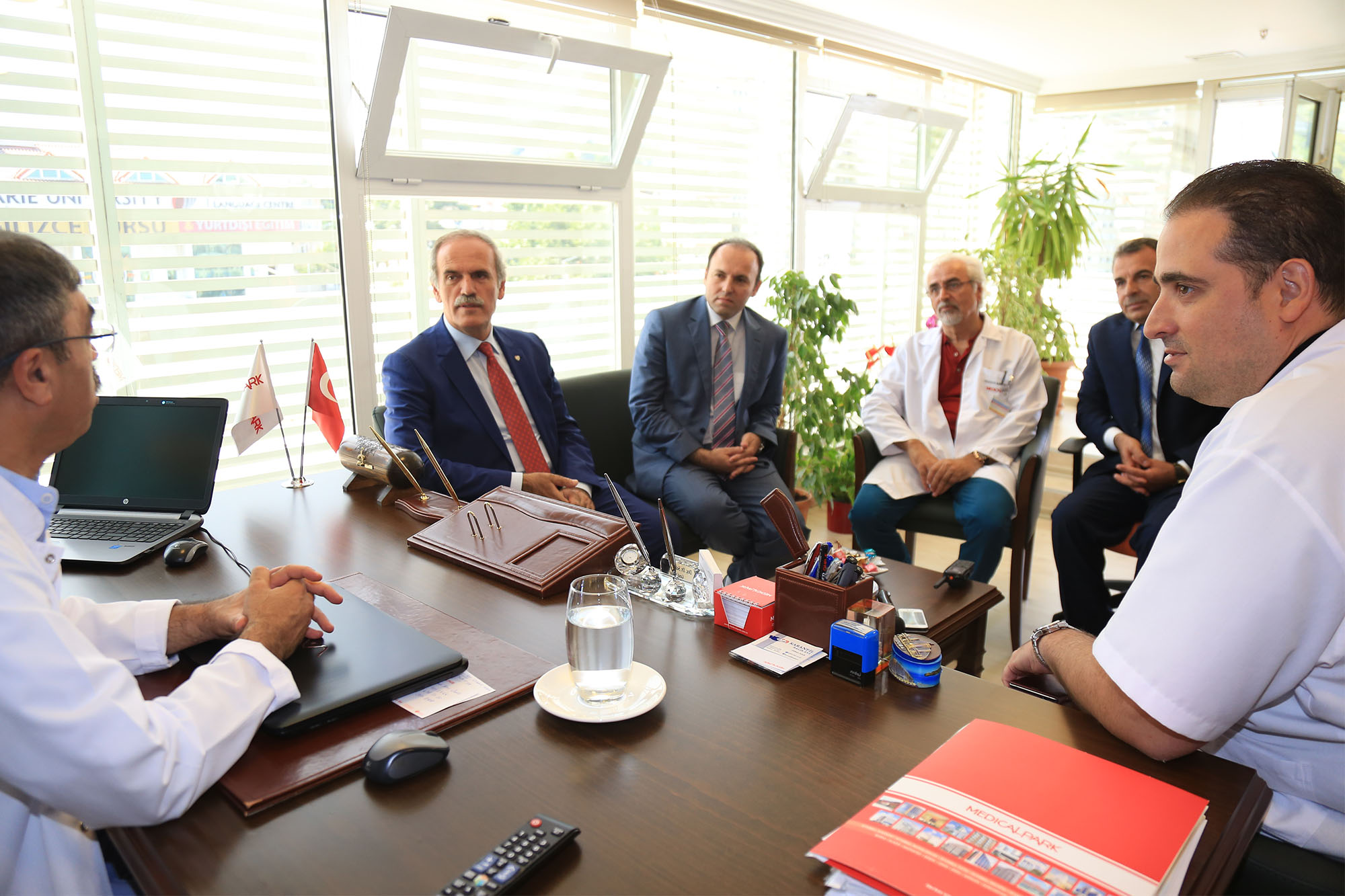 Büyükşehir Belediye Başkanı Recep Altepe, bir seyyar satıcı tarafından görevi başında bıçaklanarak ağır yaralanan Büyükşehir Belediyesi Zabıta Daire Başkanlığı personeli zabıta memuru Hüseyin Altın’ı hastanede ziyaret etti.