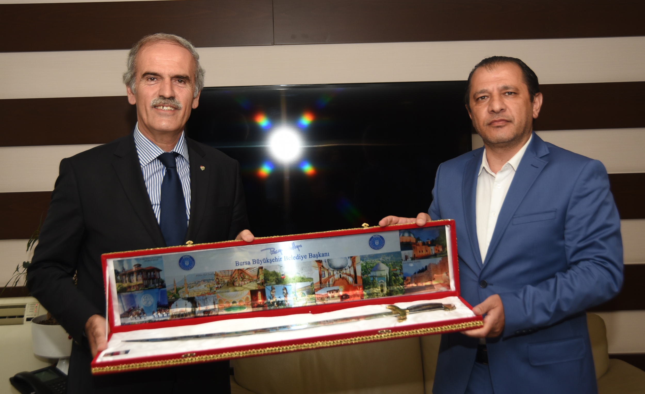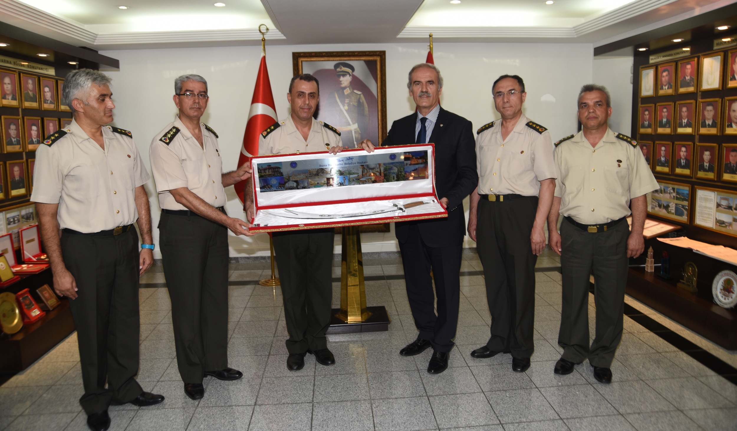 Başkan Altepe, Tümgeneral Seyfullah Saldık’a el yapımı kılıç hediye etti. Tümgeneral Saldık da teşekkür ettiği açıklamasında, “Bu anlamlı hediyeyi çok saygıdeğer Bursa halkımıza en kalbi şükranlarımızı sunarak onurla kabul ediyorum. Halkımızın emrindeyiz, halkımızın her zaman hizmetindeyiz” dedi.