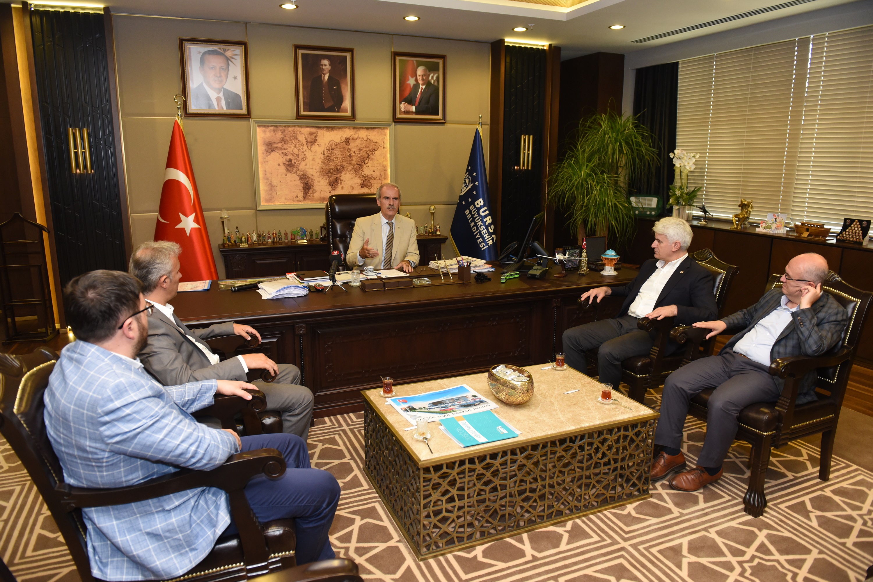 - BÜYÜKŞEHİR BELEDİYE BAŞKANI RECEP ALTEPE, AK PARTİ BURSA MİLLETVEKİLİ HÜSEYİN ŞAHİN VE MODEF BAŞKANI YAVUZ UĞURDAĞ’I AĞIRLAYARAK, İNEGÖL’DE 50 BİN METREKARE ALANA KURULACAK MODERN FUAR MERKEZİYLE İLGİLİ BİLGİ ALDI.