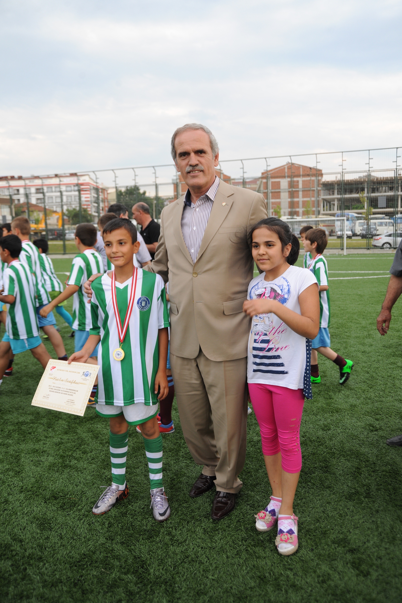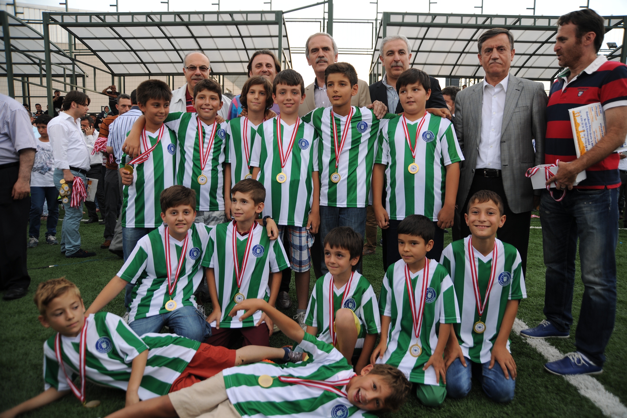 Büyükşehir Belediye Başkanı Recep Altepe, BASKF Başkanı Cemal Vardar ve Büyükşehir Belediyesi Genel Sekreteri Seyfettin Avşar, U-11 Ligi’nde mücadele eden miniklere tek tek madalyalarını taktı.