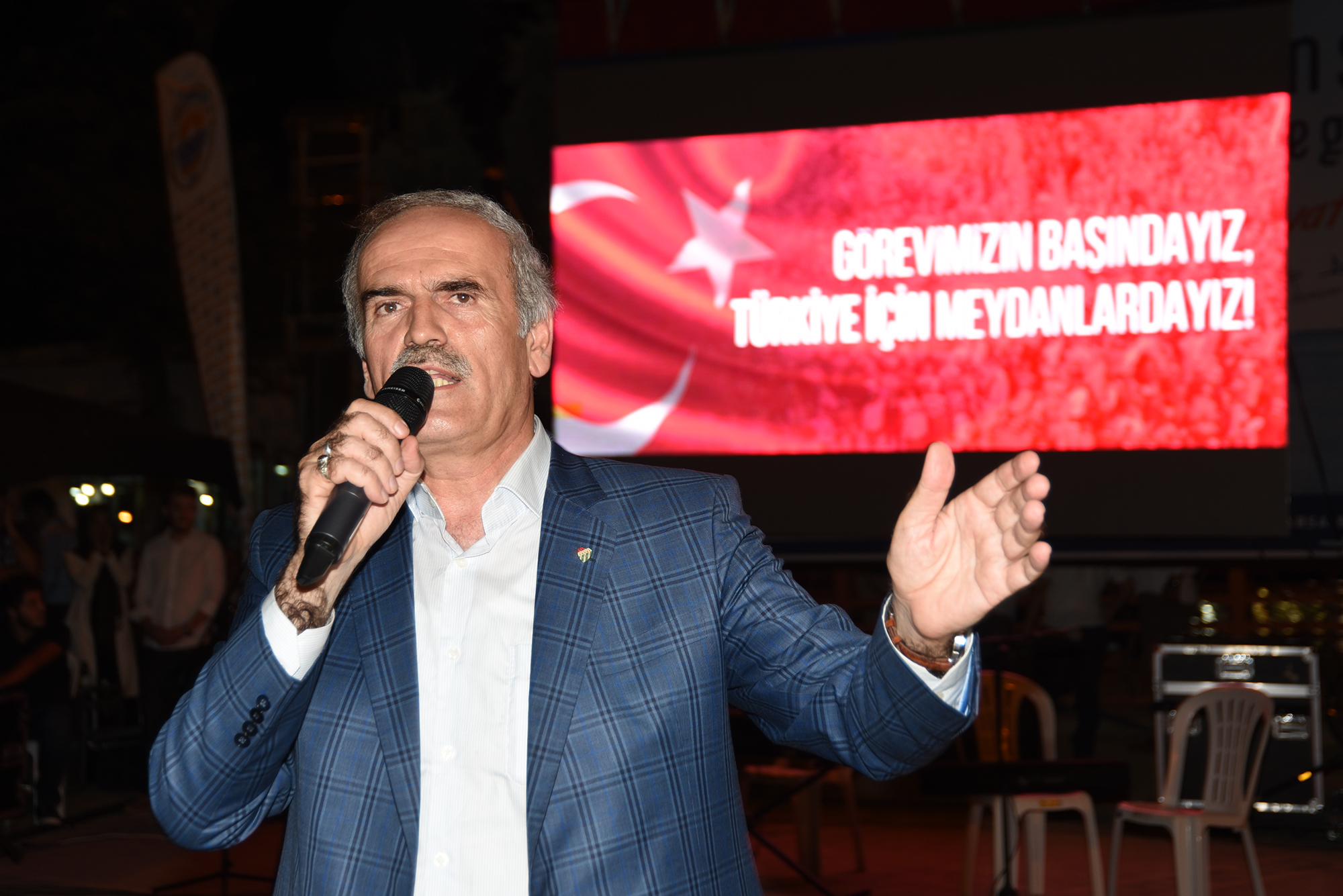 Cumhurbaşkanı Recep Tayyip Erdoğan’ın çağrısı üzerine tüm Türkiye’nin 15 Temmuz’dan beri meydanlara sahip çıktığını hatırlatan Başkan Altepe, “15 Temmuz darbe girişiminden sonra yani Türkiye Cumhuriyeti devletine, hükümetine, ülkemize yapılan bu darbe girişiminin ardından cumhurbaşkanımızın emriyle meydanlara çıkmıştık. Bu aksam da 21’inci geceyi tamamladık. İnşallah Pazar günü burada tüm ülkede yapılan mitinglerle birlikte Bursa’da da halkımızın katılımıyla güzel bir mitingde toplanacağız. Halkımızla birlikte darbecilere karşı, bağımsız Türkiye’nin savunucuları olarak mitingimizi gerçekleştirmiş olacağız. Tüm Bursalıları Pazar günü 17.00’da başlayacak mitingimiz için Demokrasi Meydanı’na davet ediyoruz” dedi.