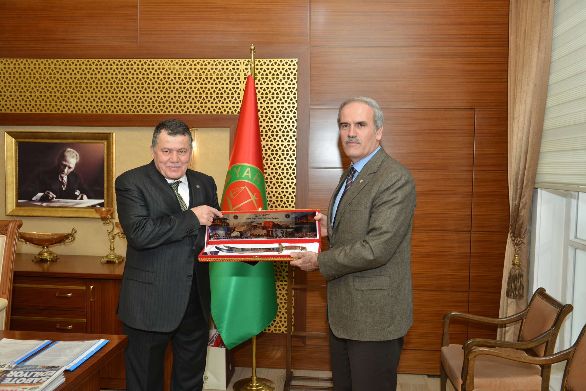 Büyükşehir Belediye Başkanı Recep Altepe, İl başkanları toplantısı için gittiği Ankara’da bir dizi temaslarda bulundu. Başkan Altepe, beraberindeki Genel Sekreter Yardımcısı Bayram Vardar ve Danışman Osman Orhan ile birlikte ilk olarak Yargıtay Büyük Genel Kurulu’nca Yargıtay Birinci Başkanlığı’na seçilen İsmail Rüştü Cirit’i makamında ziyaret etti. Başkan Altepe, yeni görevinde başarılar dilediği Cirit’e, Ulucami’nin fotoğrafının bulunduğu bir tablo ile el yapımı Bursa bıçağı hediye etti.