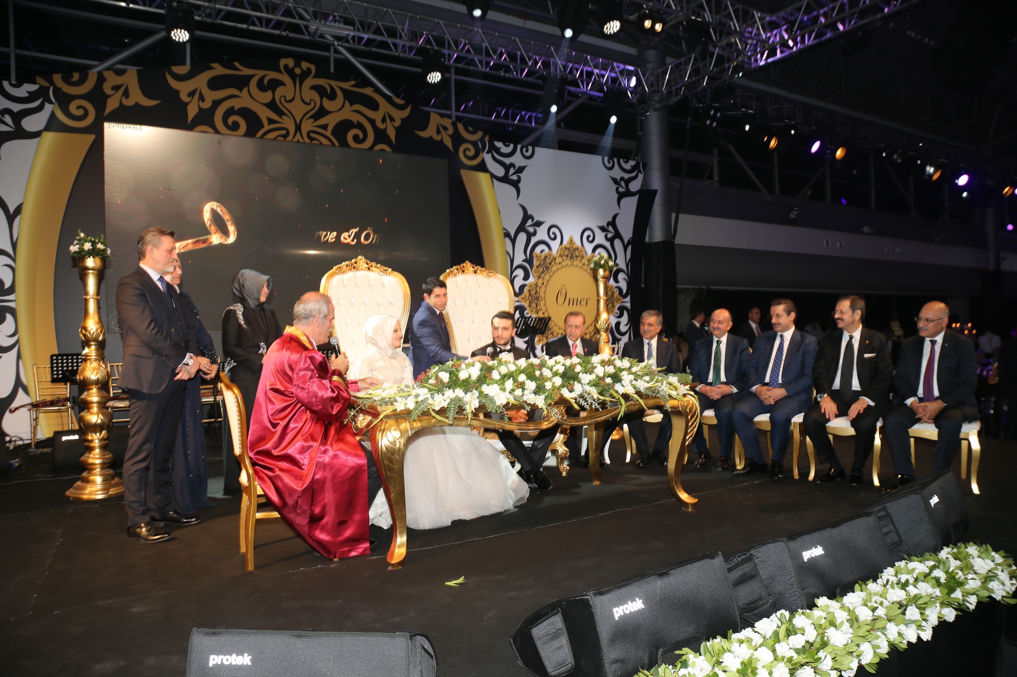 Merinos Atatürk Kongre ve Kültür Merkezi’nde (Merinos AKKM) gerçekleşen törende, çiftin nikahlarını Büyükşehir Belediye Başkanı Recep Altepe kıydı. Çiftin şahitliklerini ise Cumhurbaşkanı Recep Tayyip Erdoğan, 11. Cumhurbaşkanı Abdullah Gül, Tarım ve Hayvancılık Bakanı Faruk Çelik, Çalışma ve Sosyal Güvenlik Bakanı Dr. Mehmet Müezzinoğlu, Türkiye Odalar ve Borsalar Birliği (TOBB) Başkanı Rıfat Hisarcıklıoğlu ve Türkiye İhracatçılar Meclisi (TİM) Başkanı Mehmet Büyükekşi yaptı.