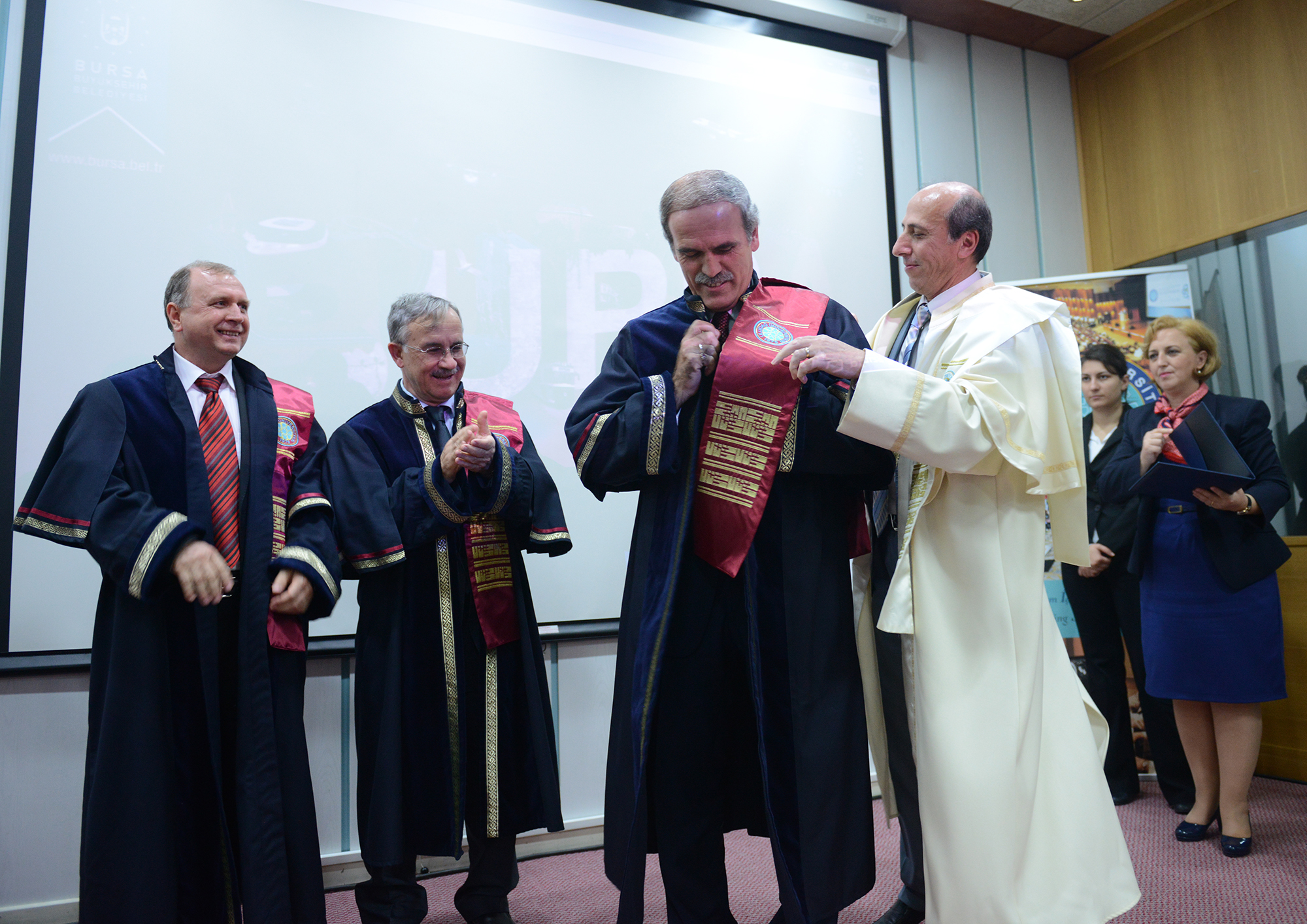 Bursa’yı, ulaşımdan, tarihi mirasın gün yüzüne çıkarılmasına kadar her alanda daha yaşanabilir bir kent haline getiren Büyükşehir Belediye Başkanı Recep Altepe, şehre kazandırdığı hizmetlerden ve Uludağ Üniversitesi’nin kentle bütünleşmesine katkılarından dolayı Uludağ Üniversitesi tarafından ‘Fahri Doktora’ unvanına layık görüldü.