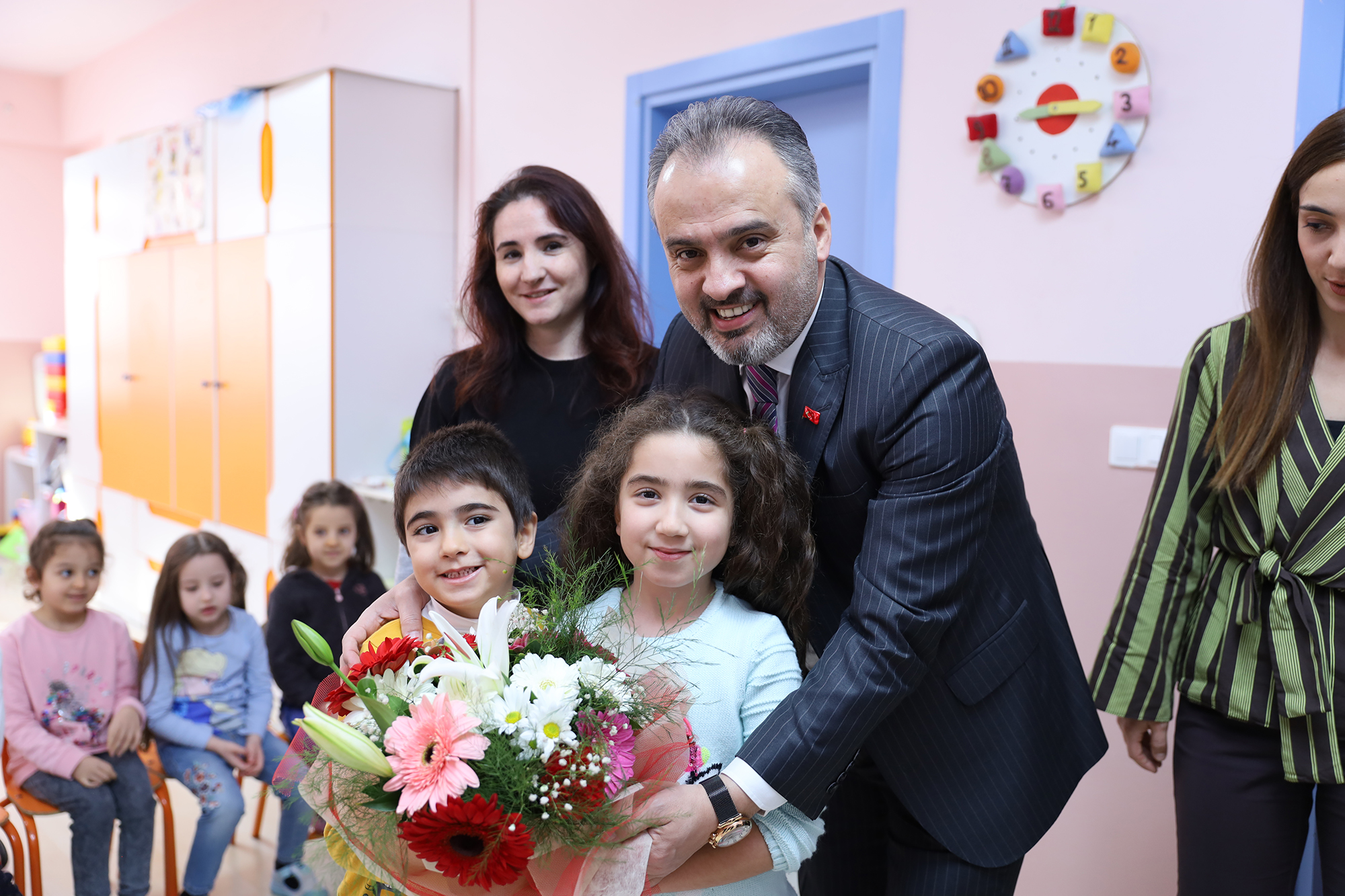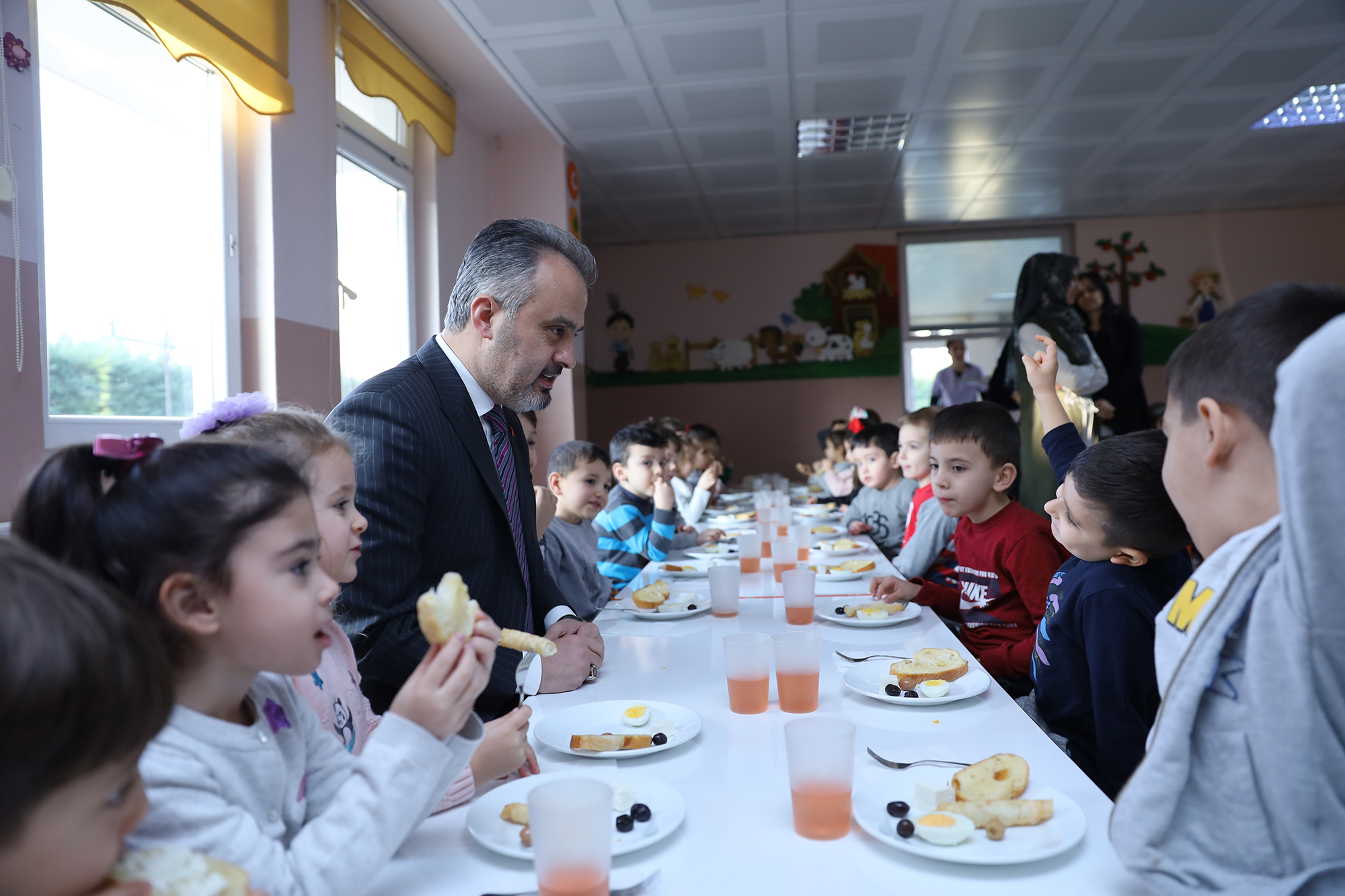 Nilüfer Gevher Hatun Anaokulu yönetiminin daveti üzerine geldiği okulda güne miniklerin arasında başlayan Büyükşehir Belediye Başkanı Alinur Aktaş, kapıda minik öğrenciler tarafından çiçeklerle karşılandı. Daha sonra çocukların kahvaltı sofrasına misafir olan Başkan Aktaş, hem onlarla sohbet etti hem de kendi elleriyle hazırladığı ballı ekmekleri minik öğrencilere ikram etti. Kahvaltının ardından sınıfları da ziyaret eden Başkan Aktaş, günün anısına minik öğrencilere satranç takımı hediye etti.