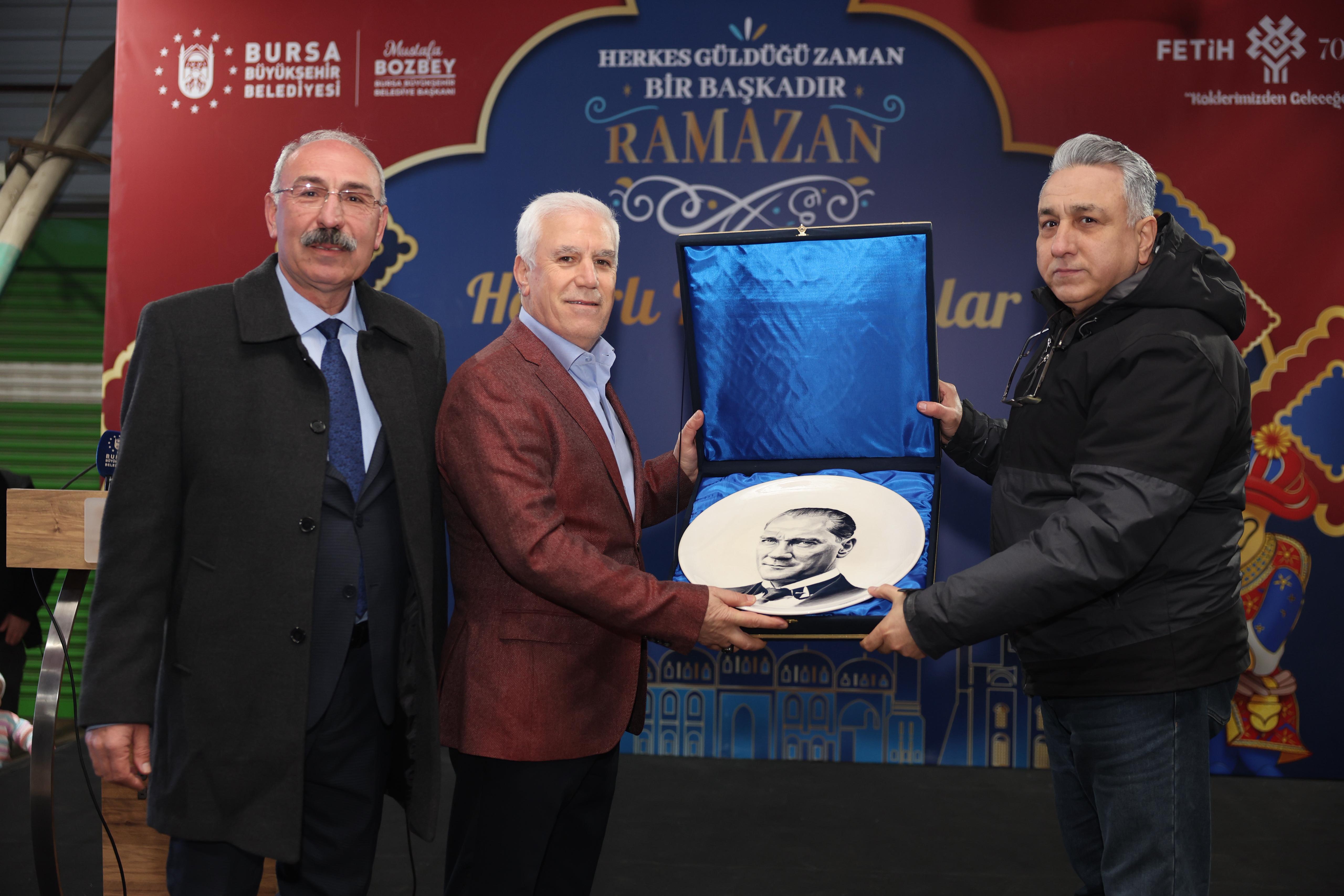 Bursa Büyükşehir Belediyesi, Ramazan ayının paylaşma ve dayanışma ruhunu düzenlediği iftar programıyla İznik ilçesinde de hissettirdi. İznik Kapalı Pazar Alanı’nda gerçekleştirilen gönül sofrasına, Büyükşehir Belediye Başkanı Mustafa Bozbey, siyasi parti temsilcileri, sivil toplum kuruluşlarının temsilcileri, oda başkanları, muhtarlar, meclis üyeleri, Büyükşehir Belediyesi bürokratları ve çok sayıda vatandaş katıldı.