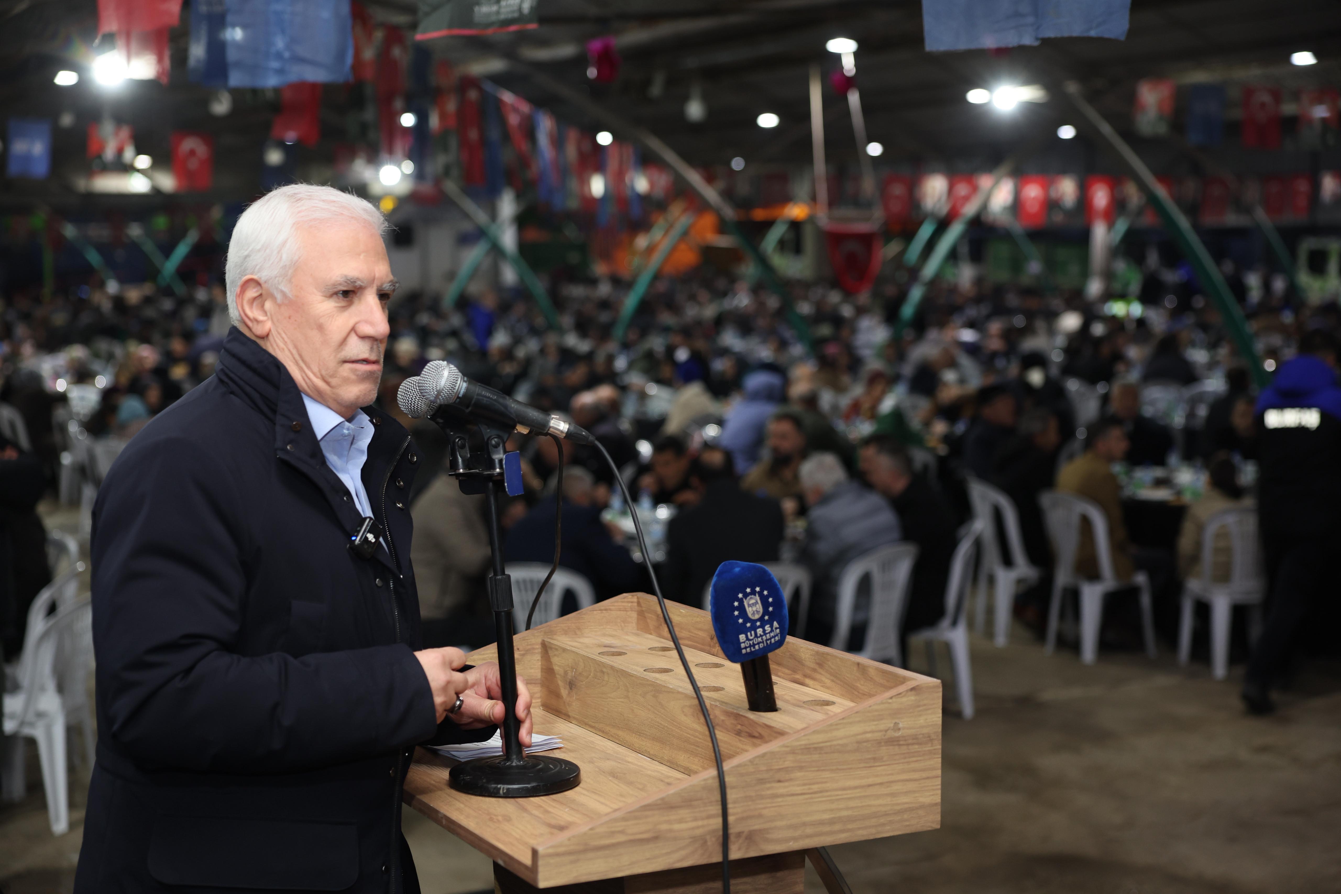 BURSA – Bursa Büyükşehir Belediyesi tarafından düzenlenen iftar programında İzniklilerle buluşan Başkan Mustafa Bozbey, halkın ve esnafın önerilerini dinleyerek çözüm yollarını konuştu.