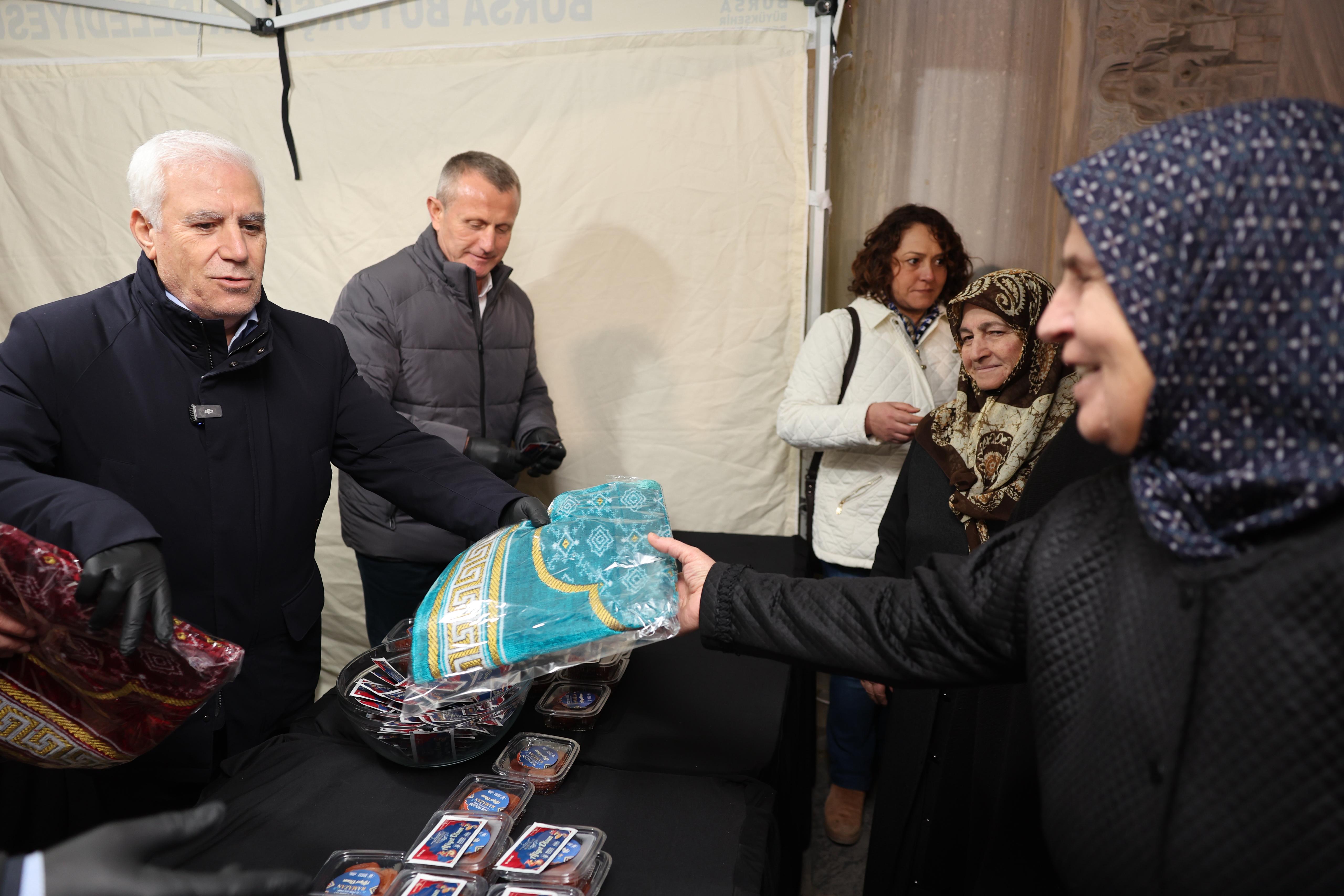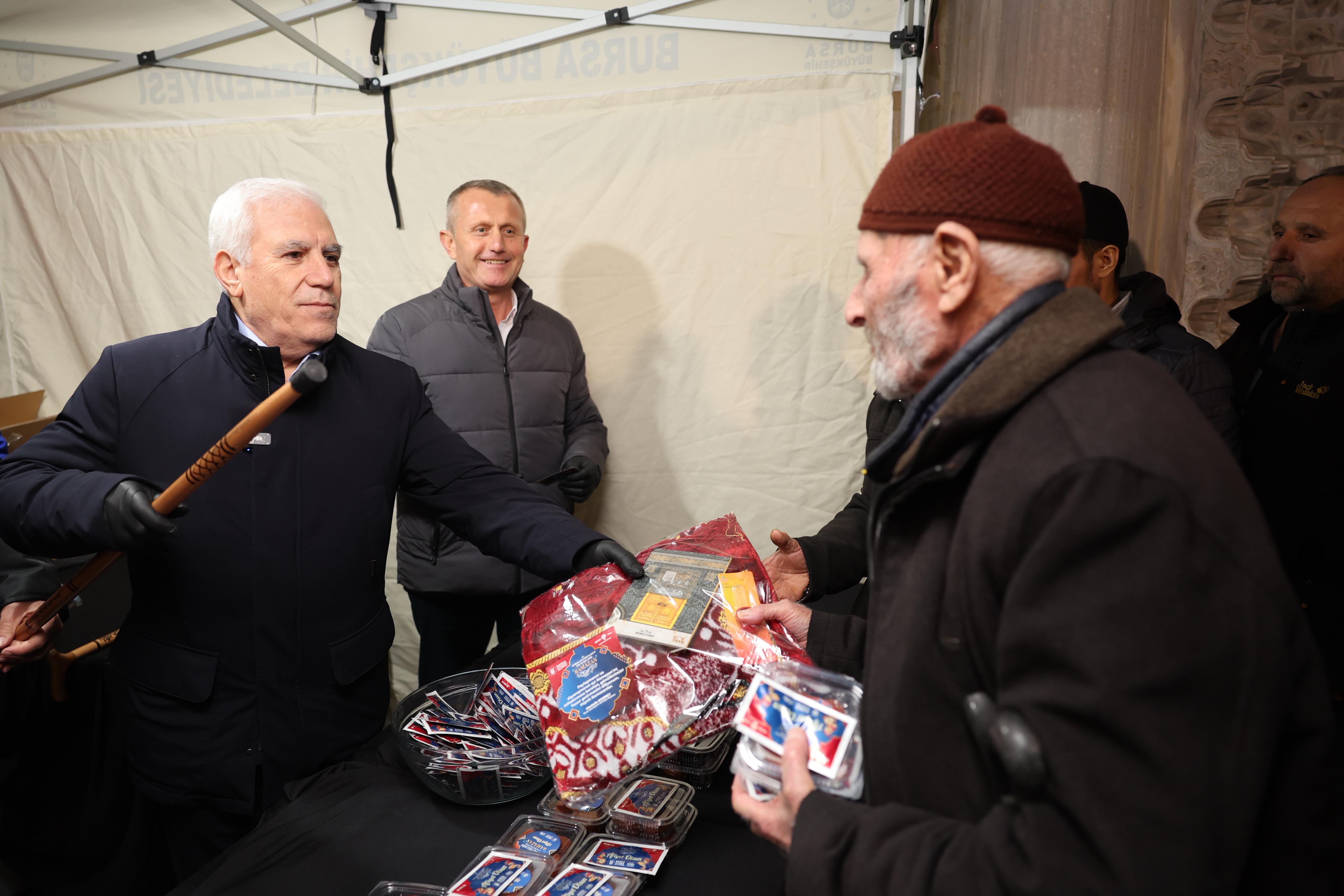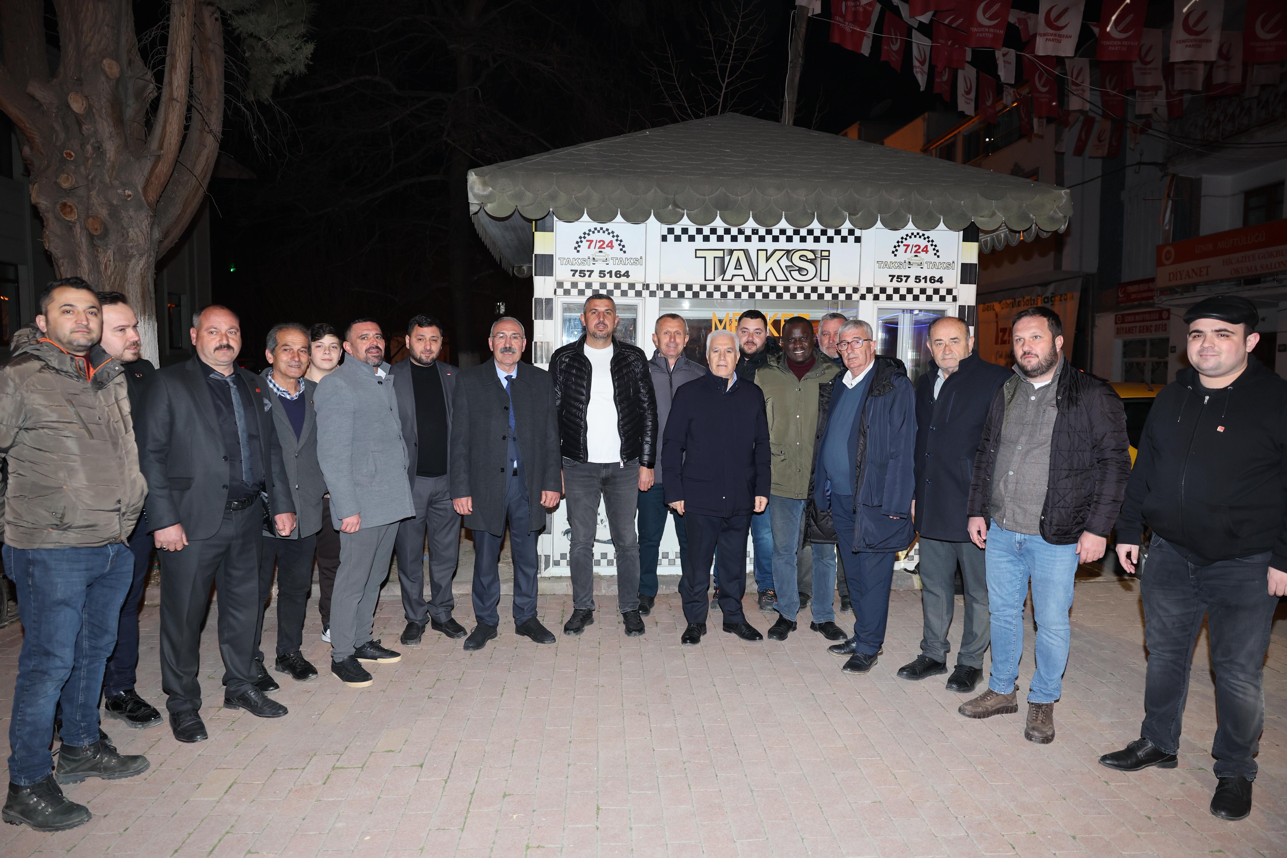 İftar programının ardından İznik’deki taksici esnafını ziyaret ederek sorunlarını dinleyip çözüm yollarını konuşan Başkan Mustafa Bozbey, teravih namazının ardından İznik Yeşil Camii’nde vatandaşlara tatlı ikramında bulundu.