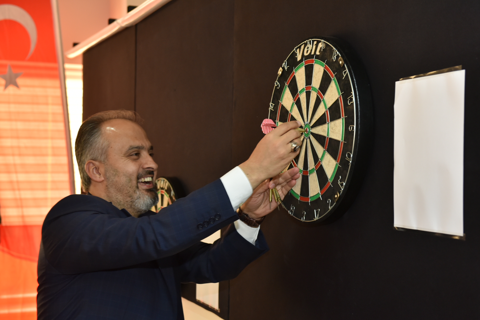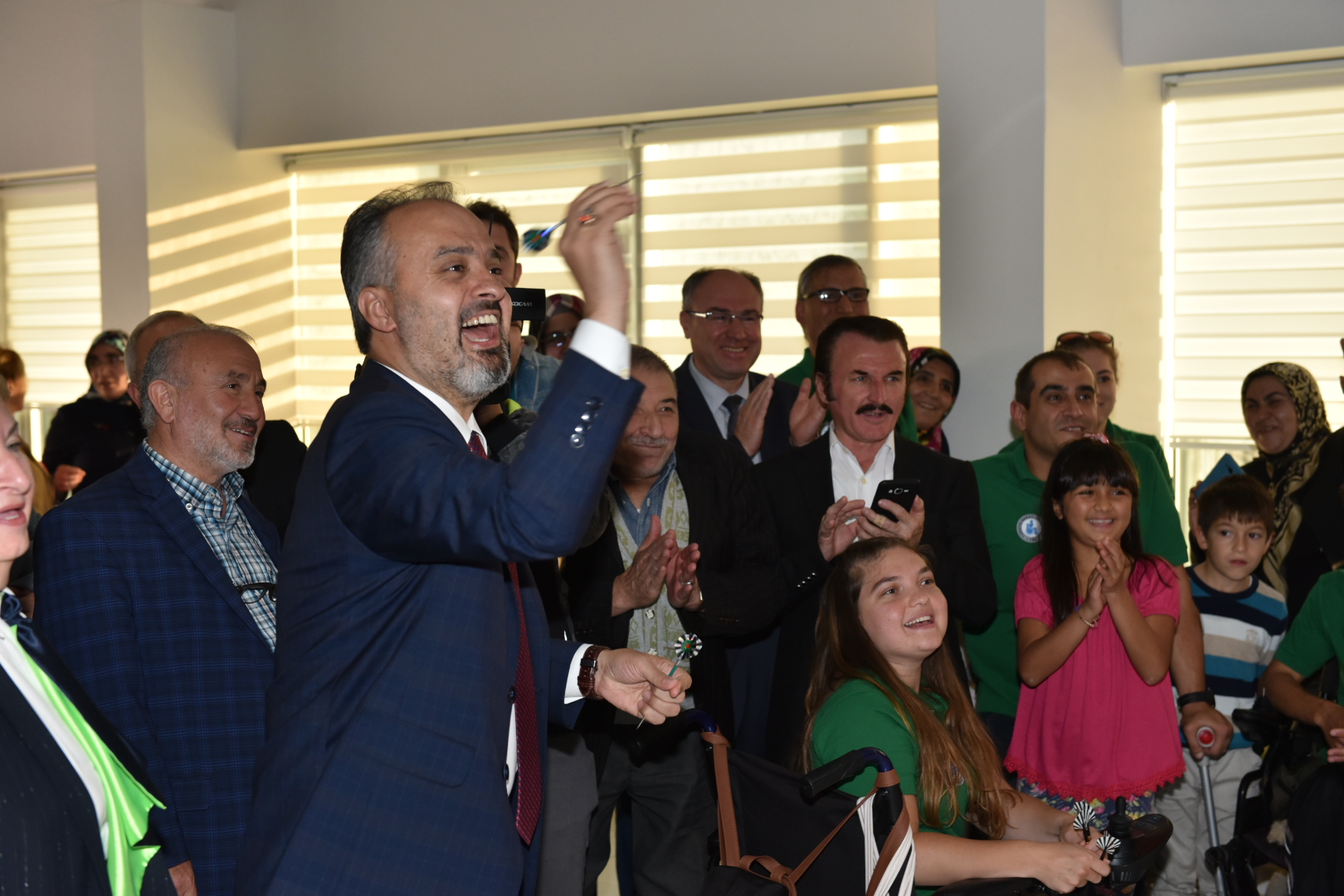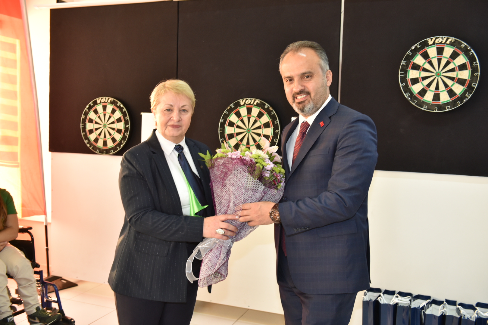 BURSA - Büyükşehir Belediyesi Engelsiz Yaşam Merkezi içinde oluşturan ‘Engelsiz Dart Alanı’nın açılışında şartları eşitlemek için sandalyeye oturup atış yapan Büyükşehir Belediye Başkanı Alinur Aktaş, hedefi tutturmayı başardı.