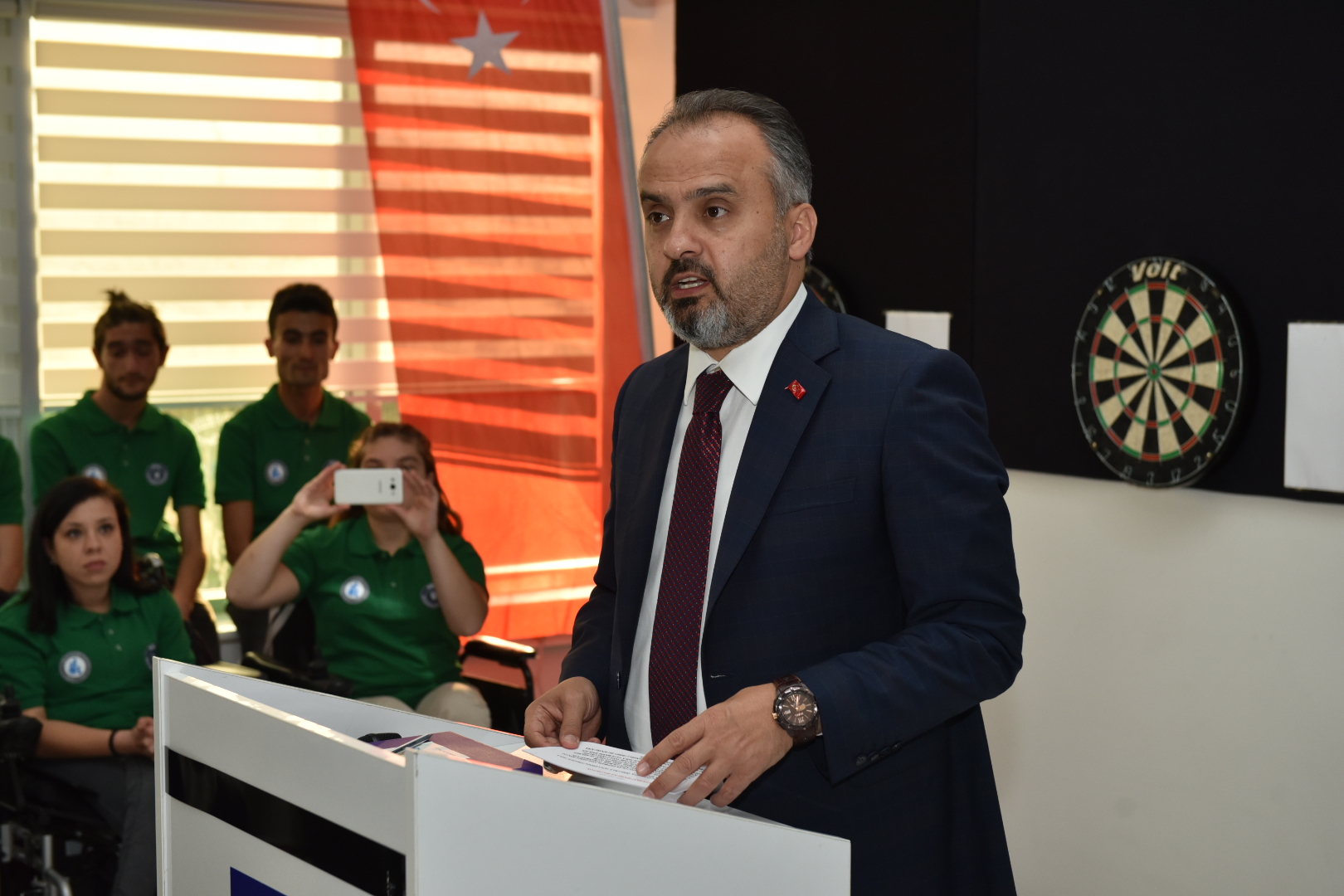 Törende konuşan Büyükşehir Belediye Başkanı Alinur Aktaş, açılışı gerçekleştirilen alanın Türkiye’de bir ilk olduğunu söyledi. Dart sporunun son yıllarda ciddi ilgi gördüğüne de değinen Başkan Aktaş; “Biz bu güzel mekan içerisinde daha farklı neler yapabiliriz noktasında çalışmalar yaptık. Dart sporu son yıllarda ciddi şekilde yayılmaya başladı. Engelsiz Yaşam Merkezi’nde kardeşlerimizin engellerini ortadan kaldırarak yeniliklerle buluşturmak istiyoruz. Kültürle, sanatla, sporla buluşturmak ve nihayetinde amacımız onların hayatlarını kolaylaştırmak. Engelsiz Dart Alanımızı Türkiye Sakatlar Derneği Bursa Şubesi ve Türkiye’nin ilk engelli Dart Antrenörü Nihat Demir ile faaliyete geçirmenin mutluluğunu yaşıyoruz. İnşallah bu alan engelli vatandaşlarımızın hayatına dokunacak ve onlara yeni bir değer katacak. Aynı zamanda Türkiye’de ilk olan bu alan başka şehirlerde yaygınlaşır ve engelli sporcularımız karşılıklı müsabakalarını gerçekleştirir” diye konuştu.